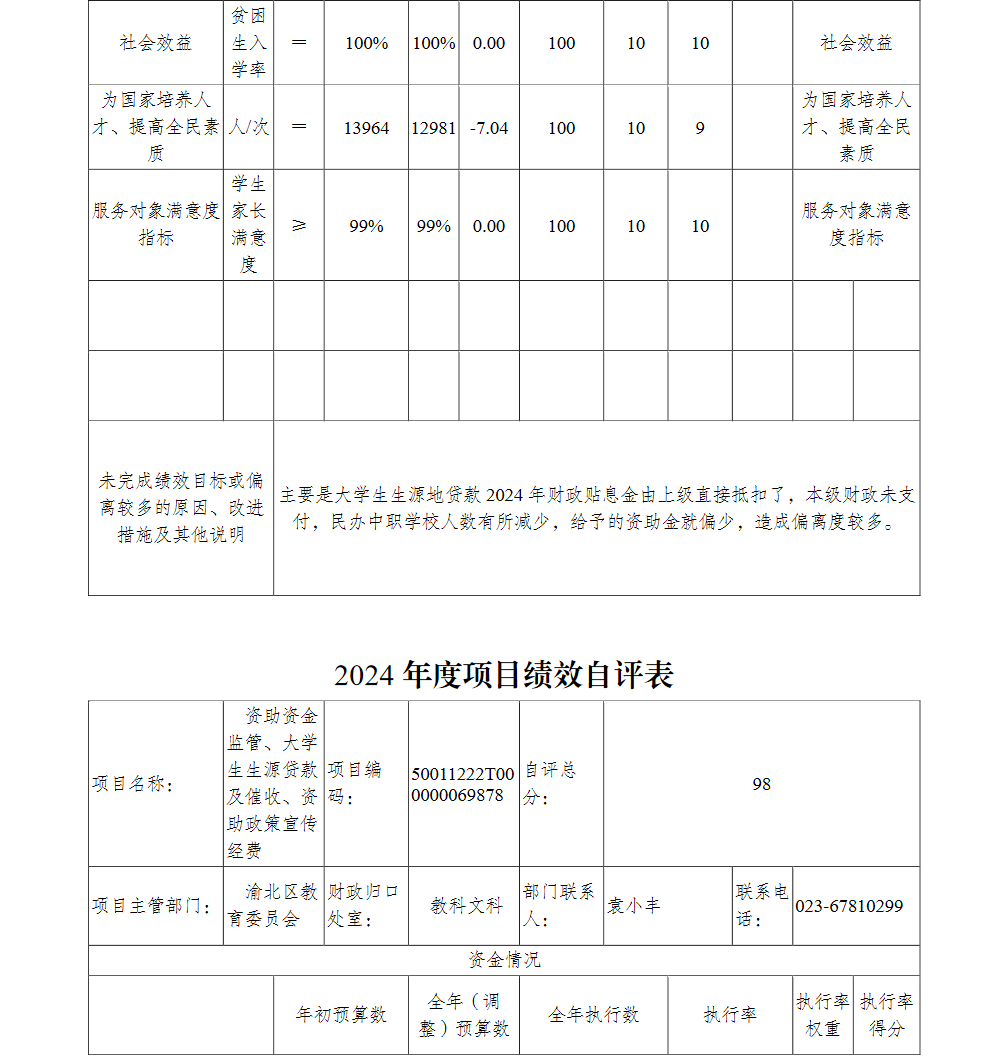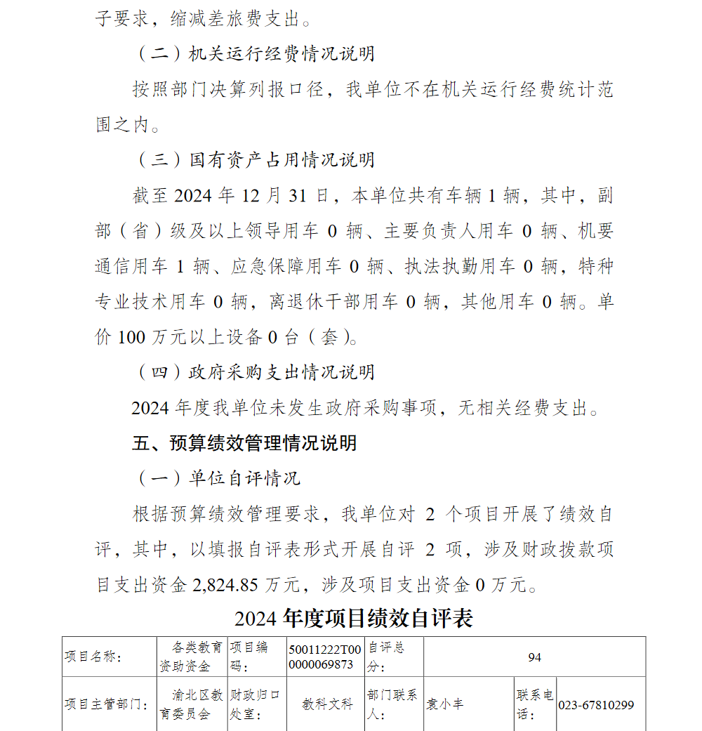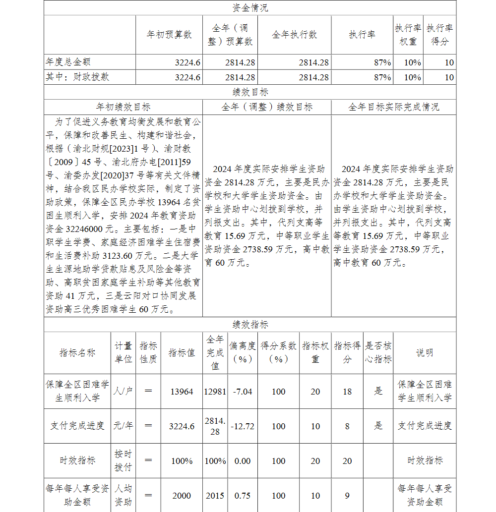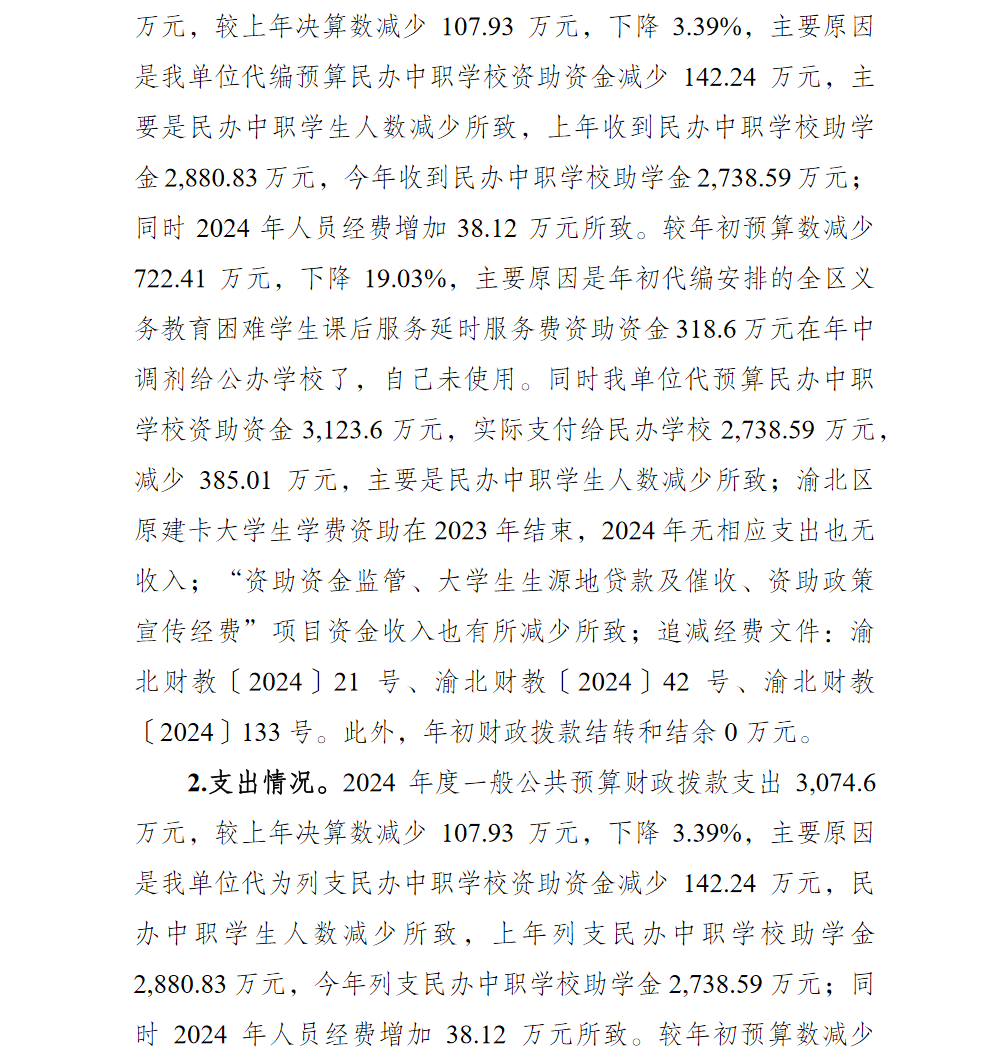 重庆市渝北区学生资助管理中心2024年单位决算情况说明