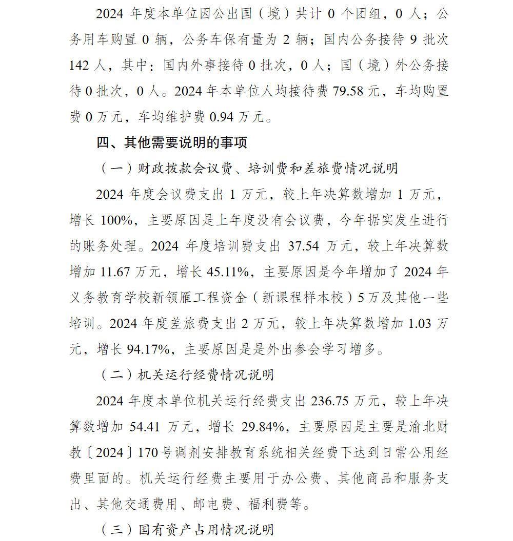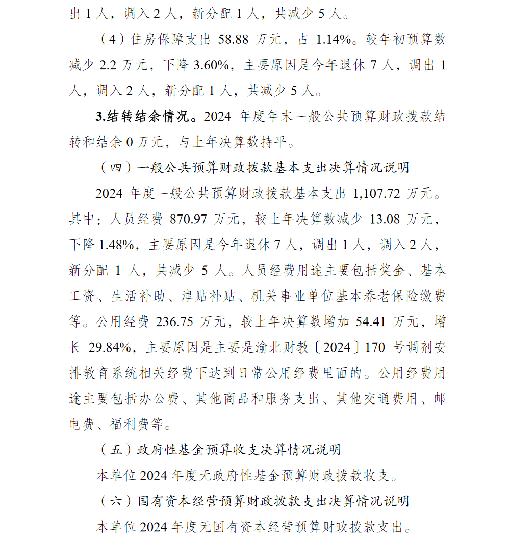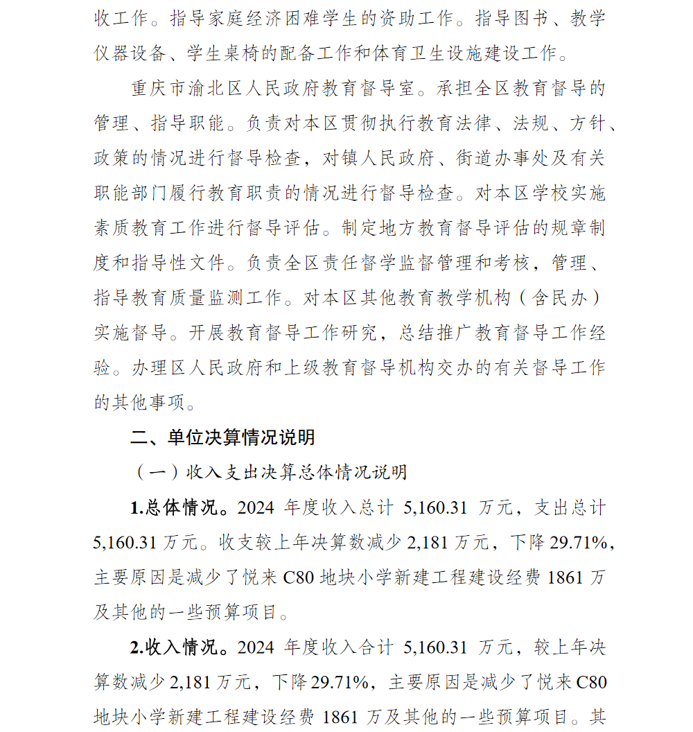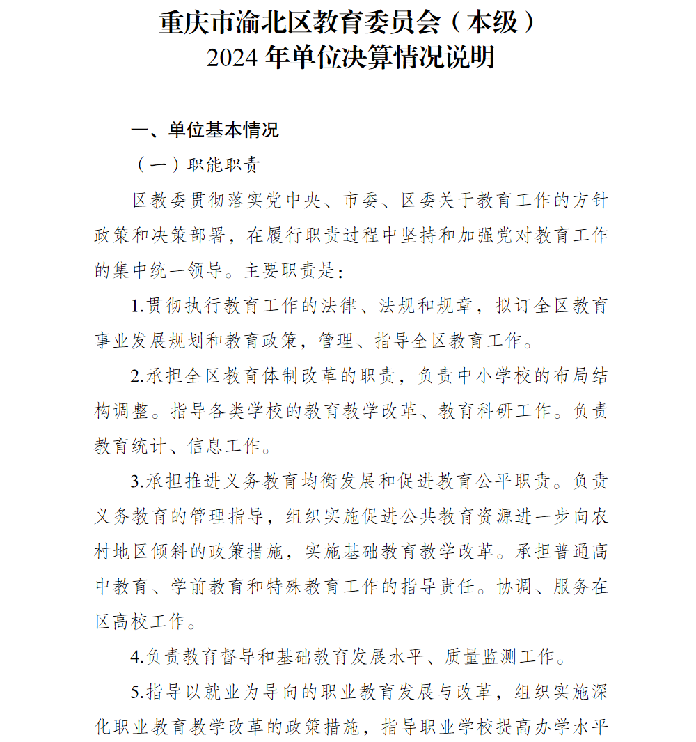 重庆市渝北区教育委员会(本级)2024年单位决算情况说明