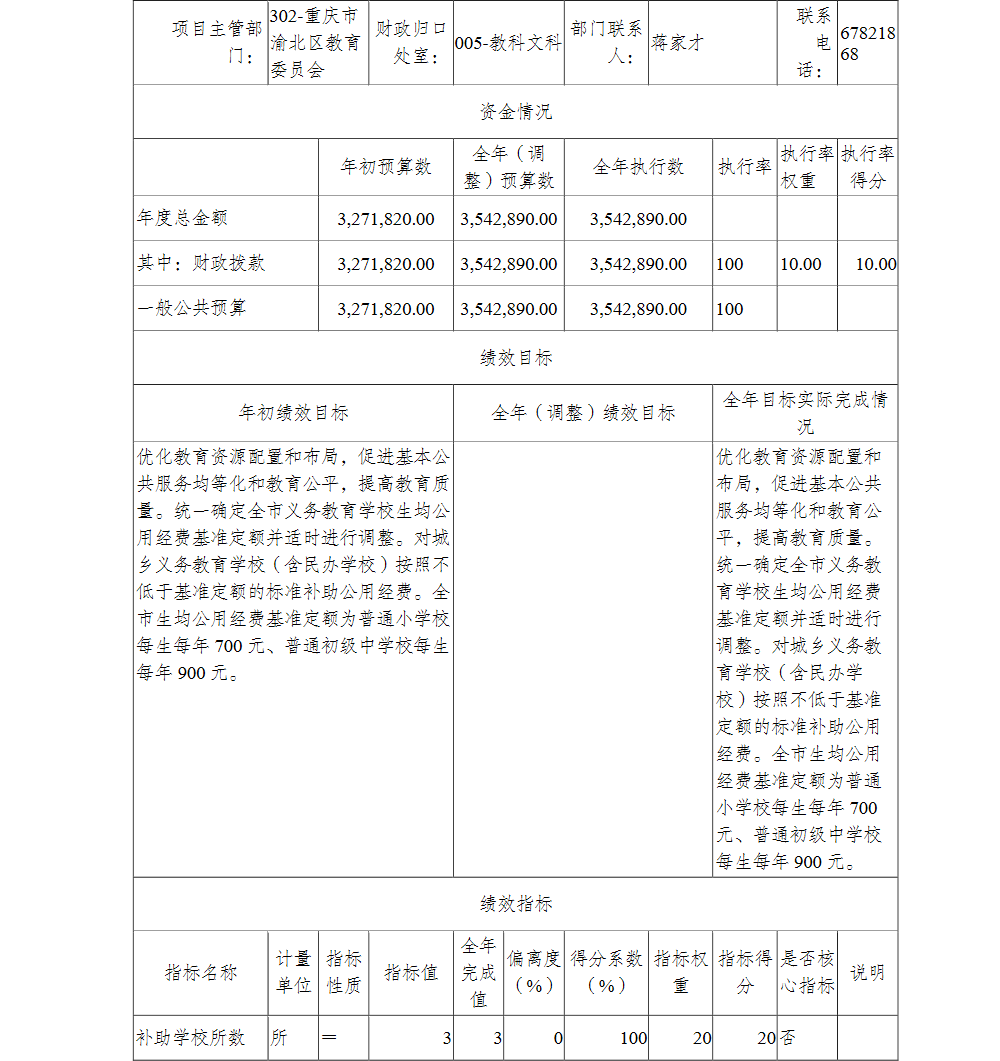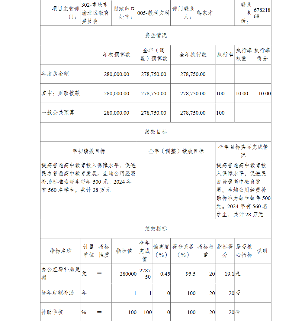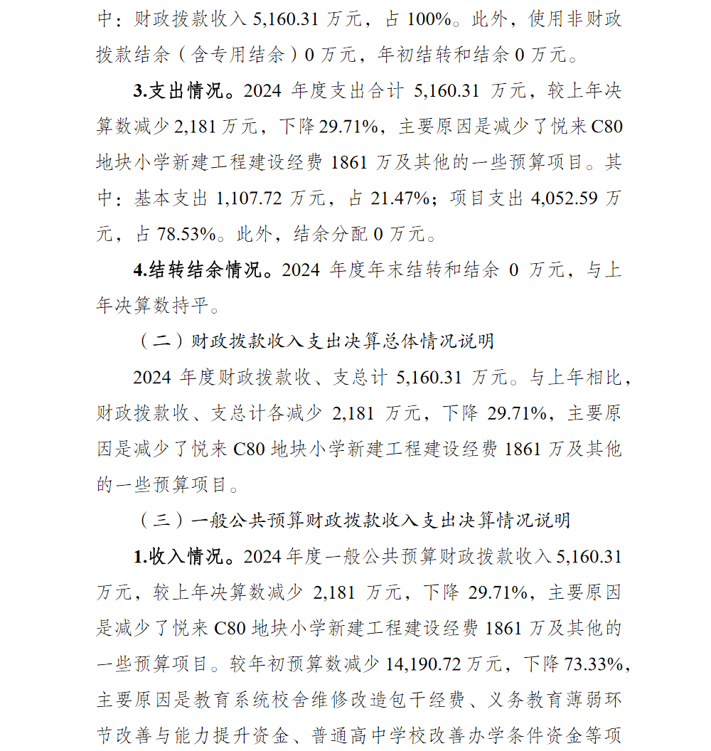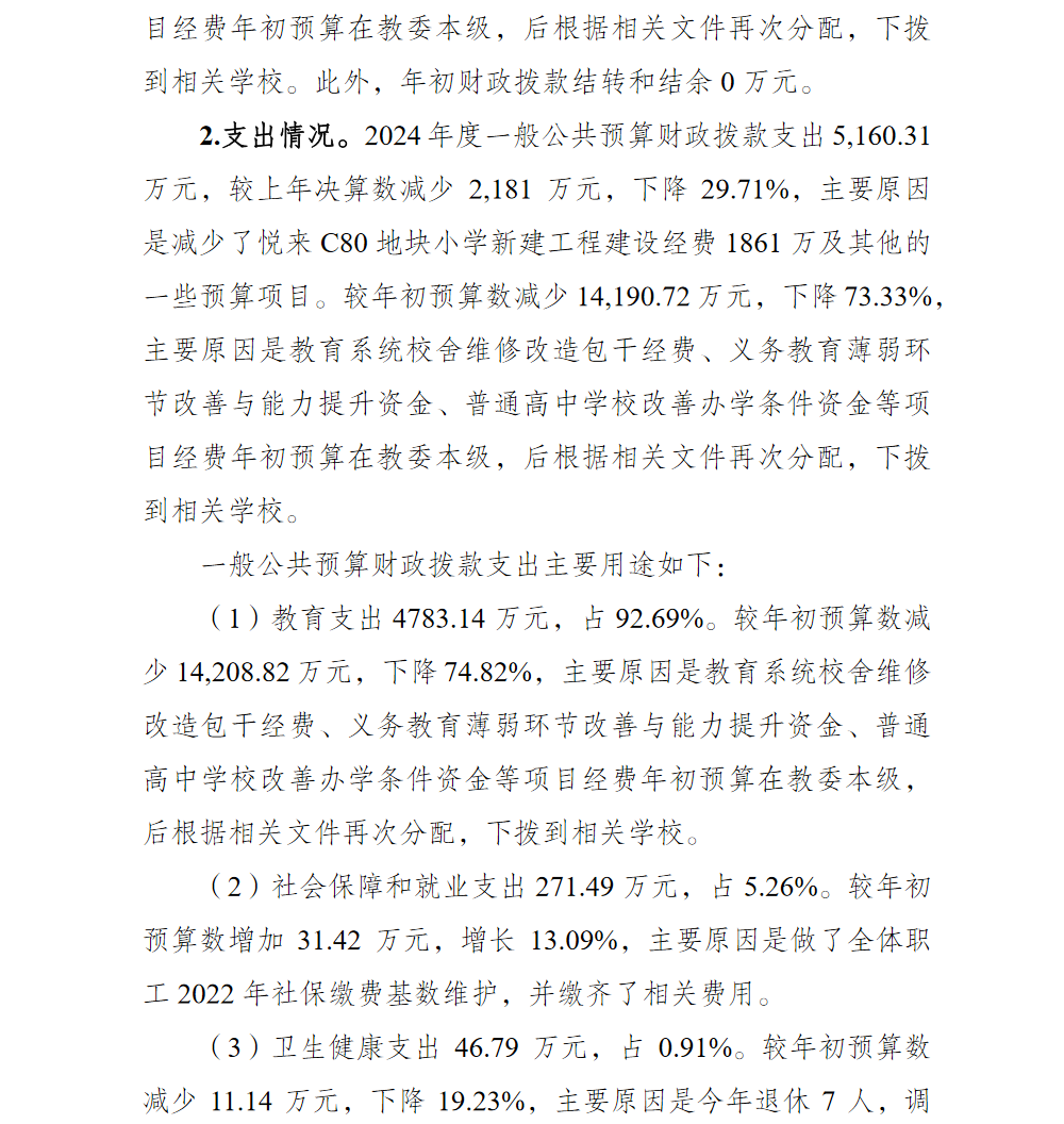 重庆市渝北区教育委员会(本级)2024年单位决算情况说明