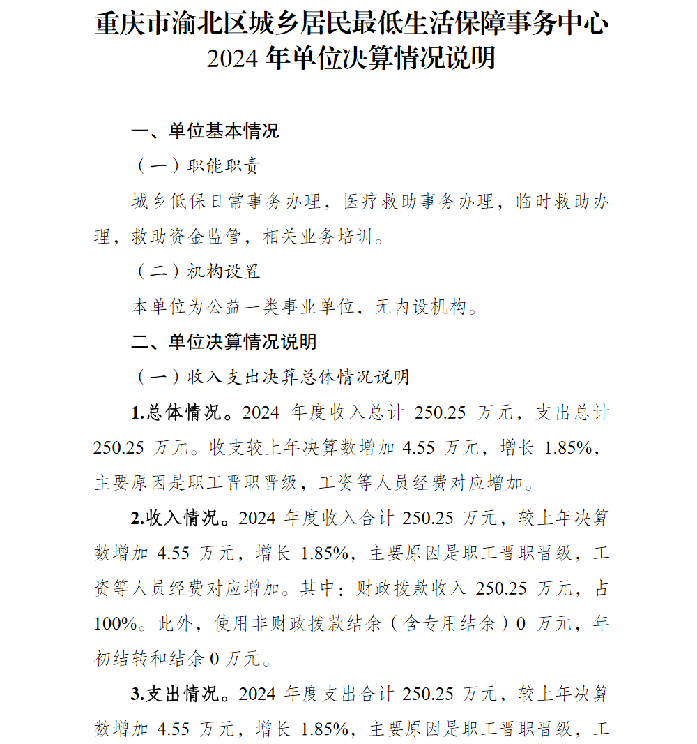 重庆市渝北区城乡居民最低生活保障事务中心2024年单位决算情况说明