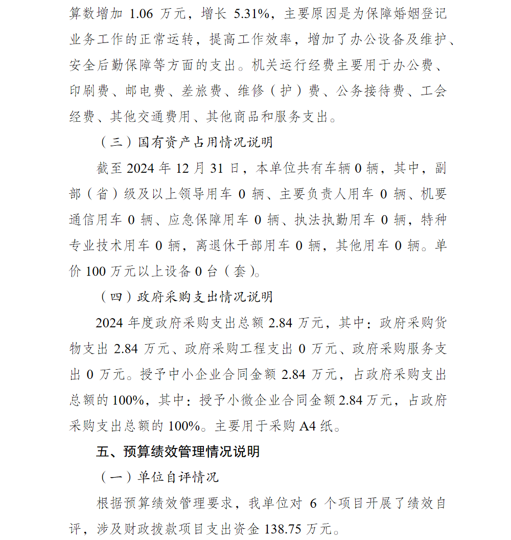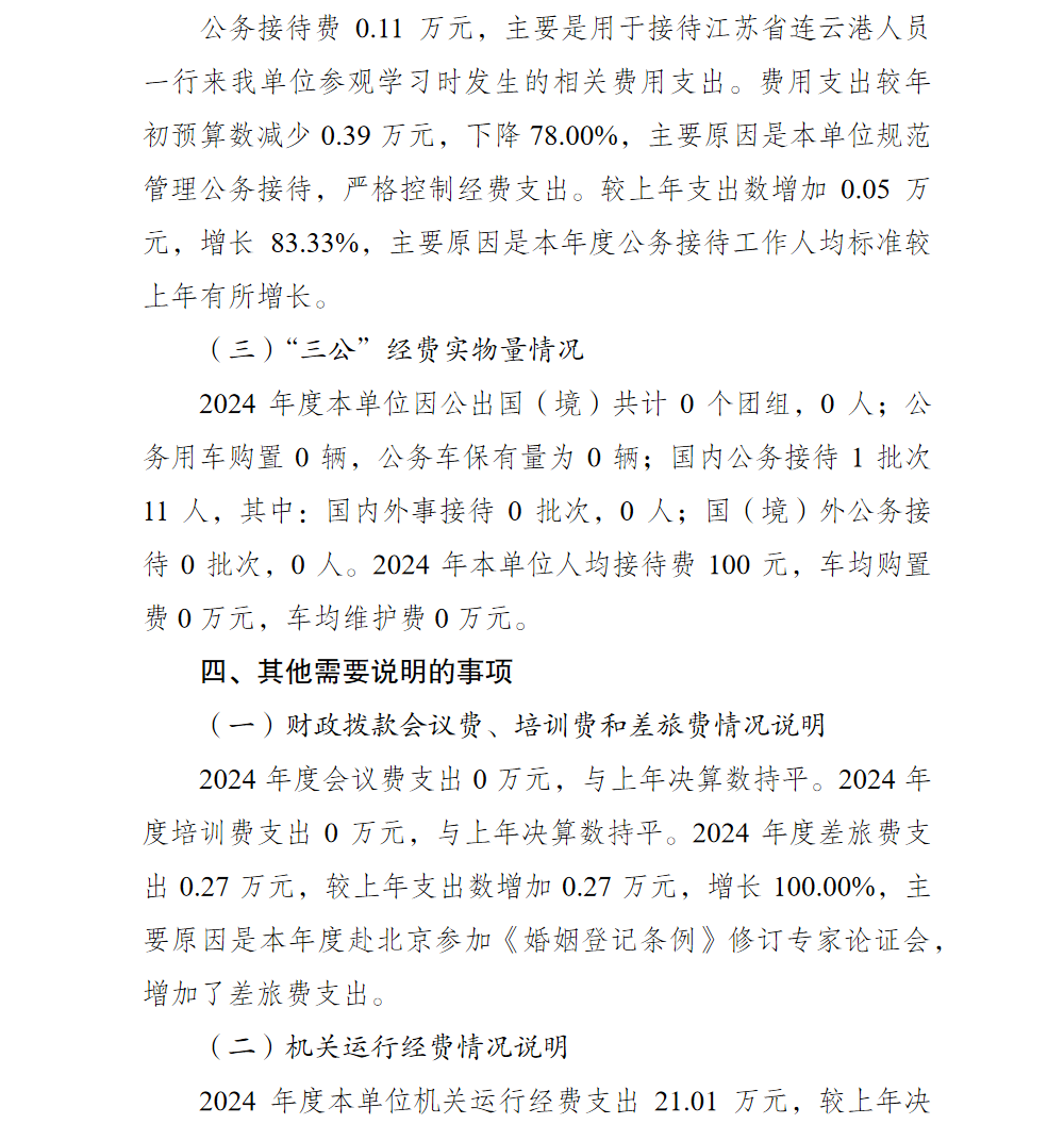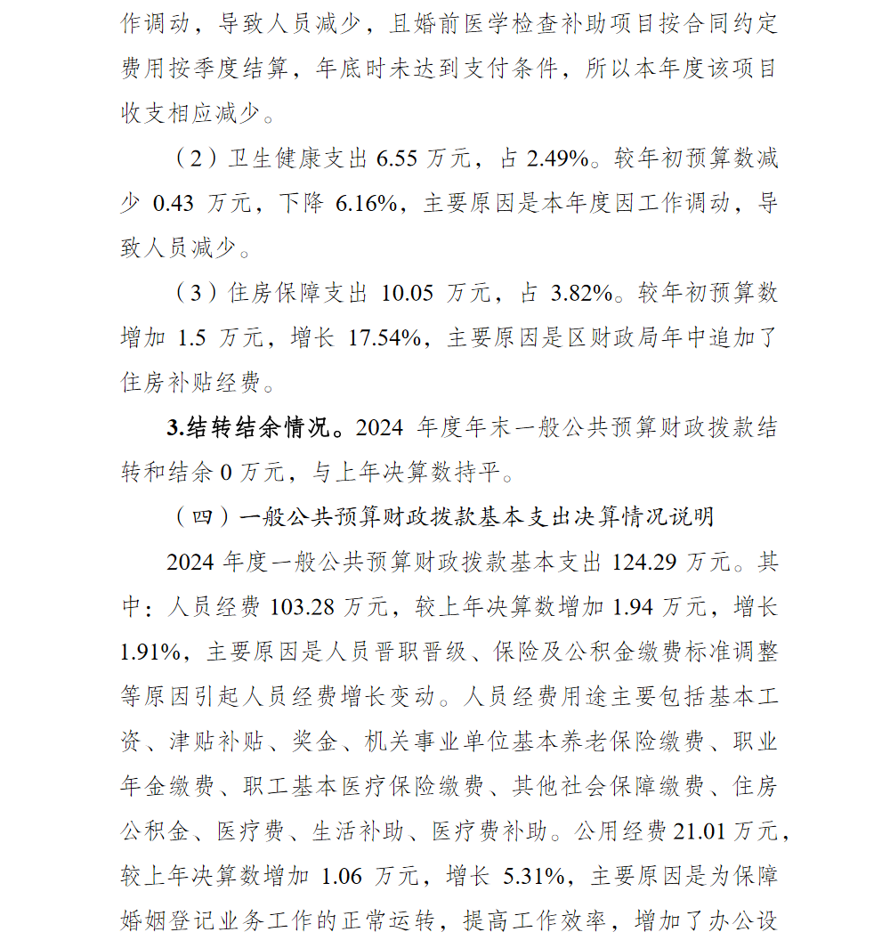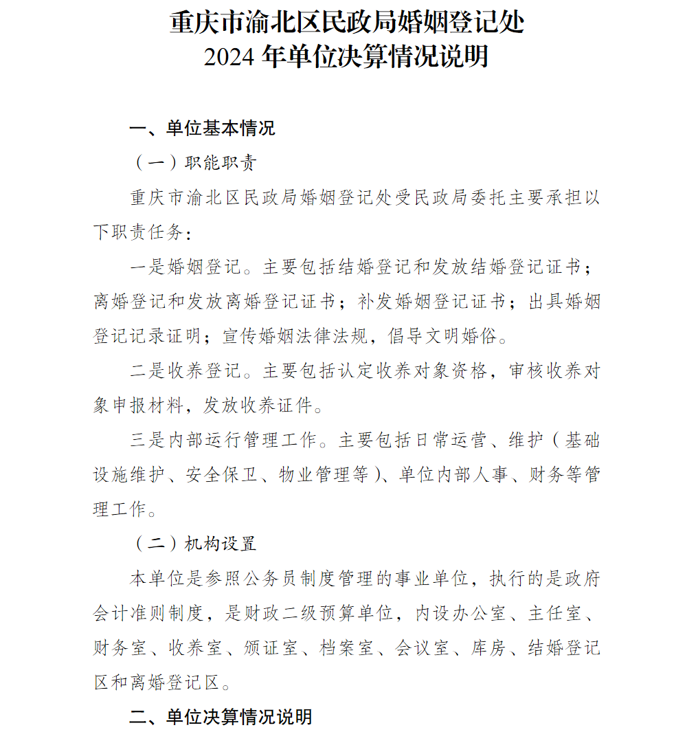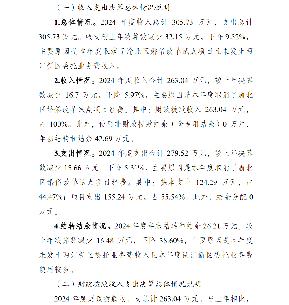 重庆市渝北区民政局婚姻登记处2024年单位决算情况说明
