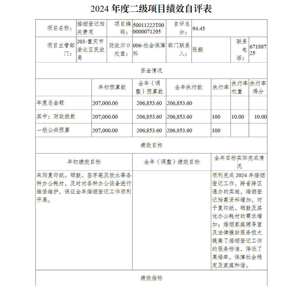 重庆市渝北区民政局婚姻登记处2024年单位决算情况说明及附表.pdf