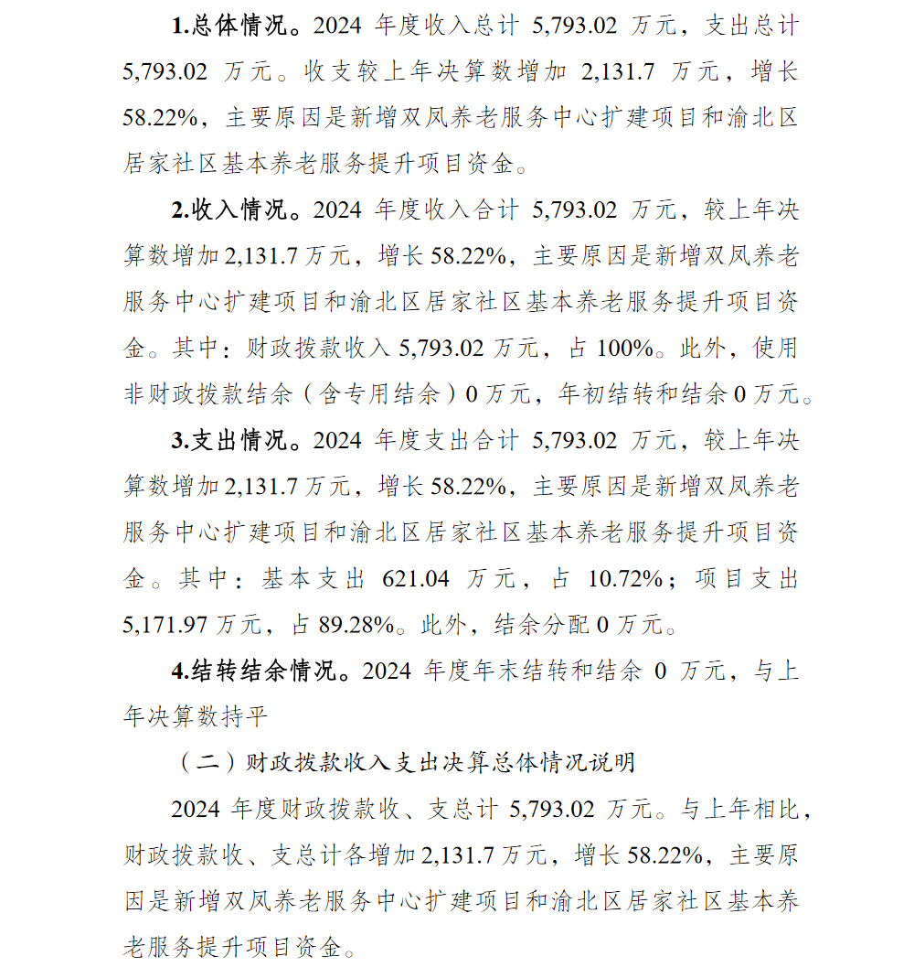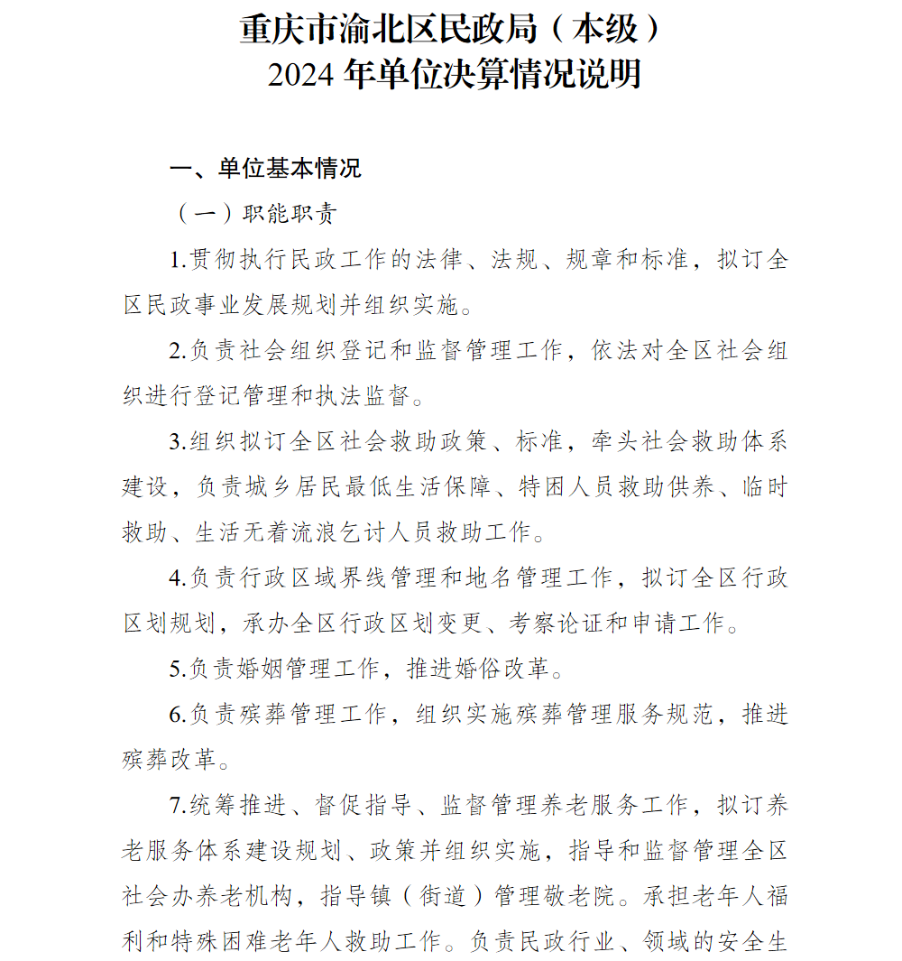 重庆市渝北区民政局(本级)2024年单位决算情况说明