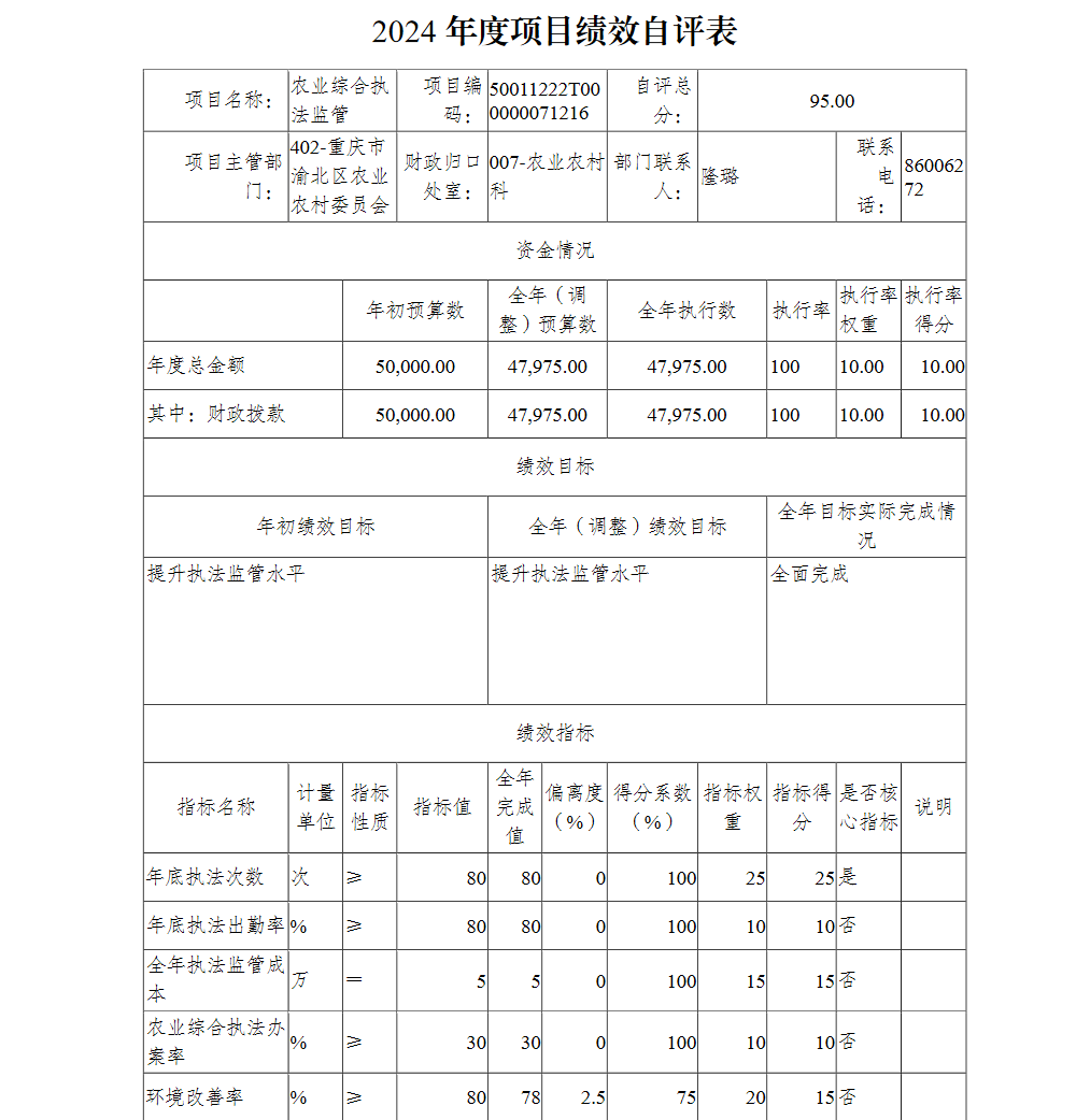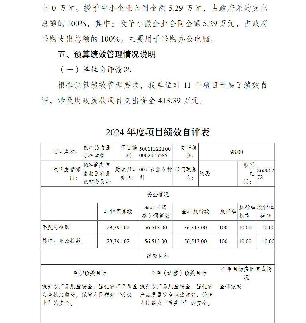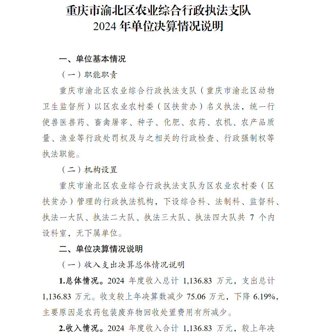 重庆市渝北区农业综合行政执法支队2024年单位决算情况说明