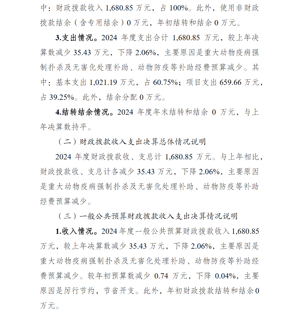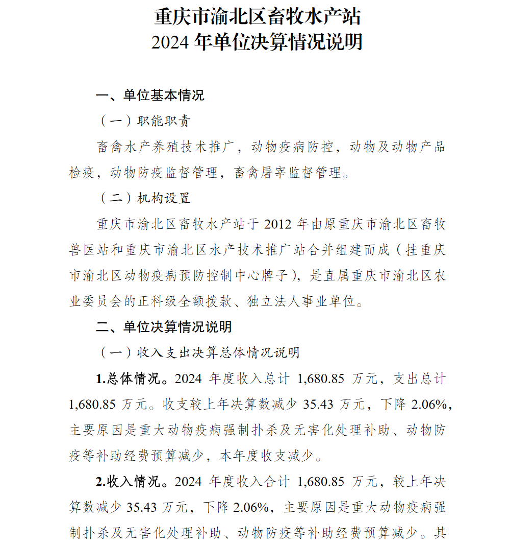 重庆市渝北区畜牧水产站2024年单位决算情况说明