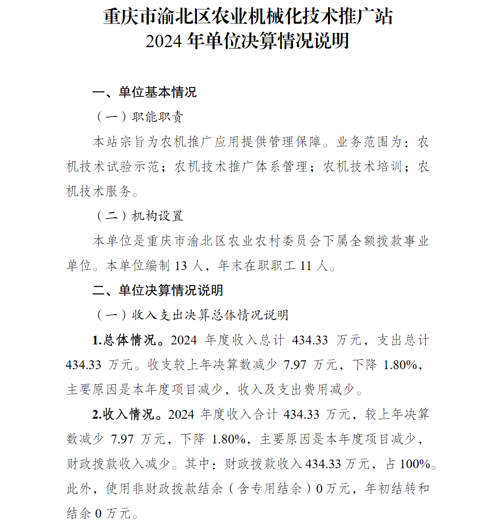 重庆市渝北区农业机械化技术推广站2024年单位决算情况说明