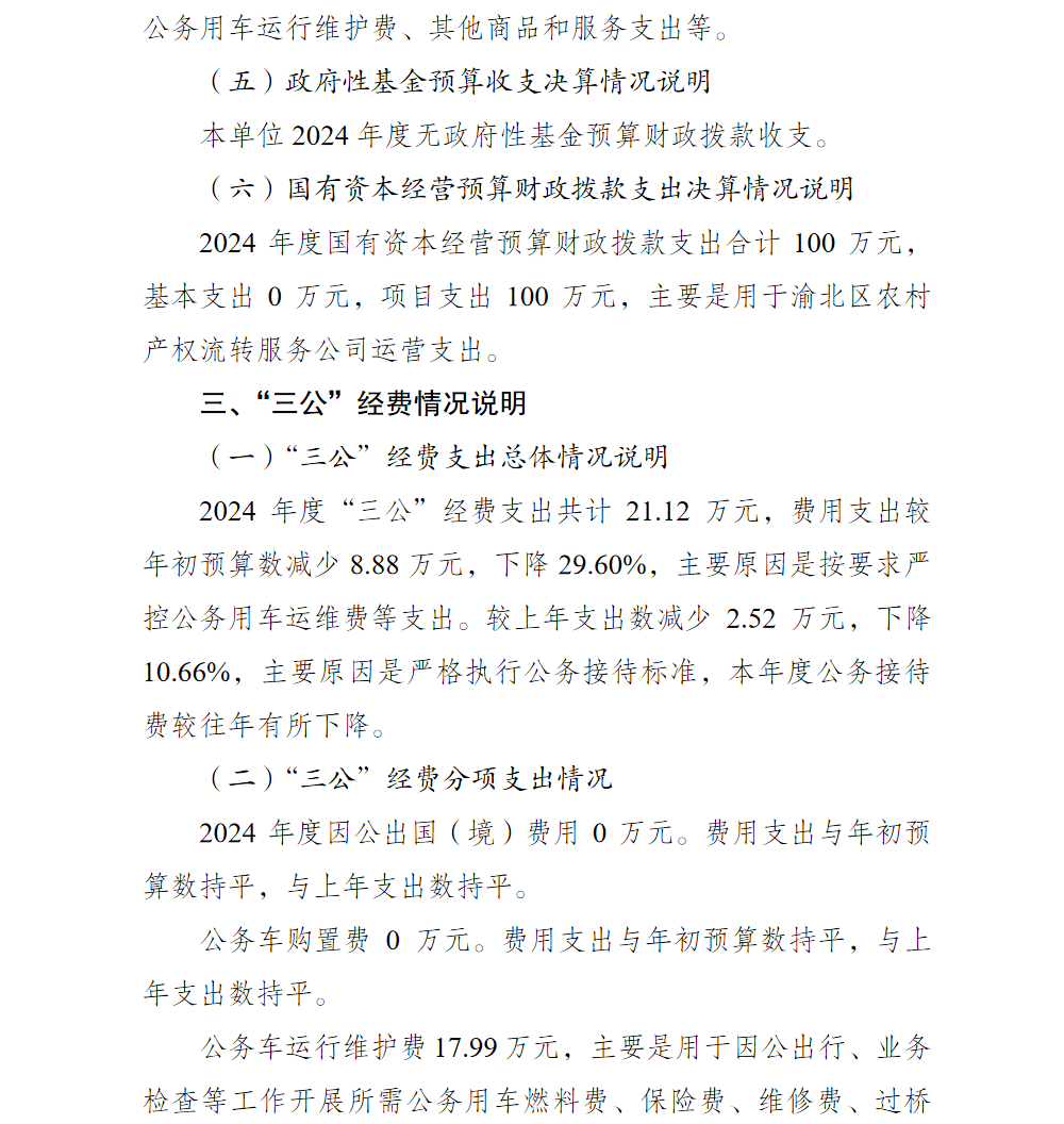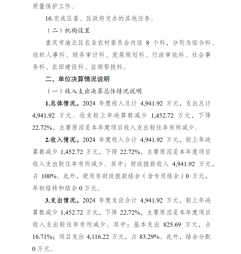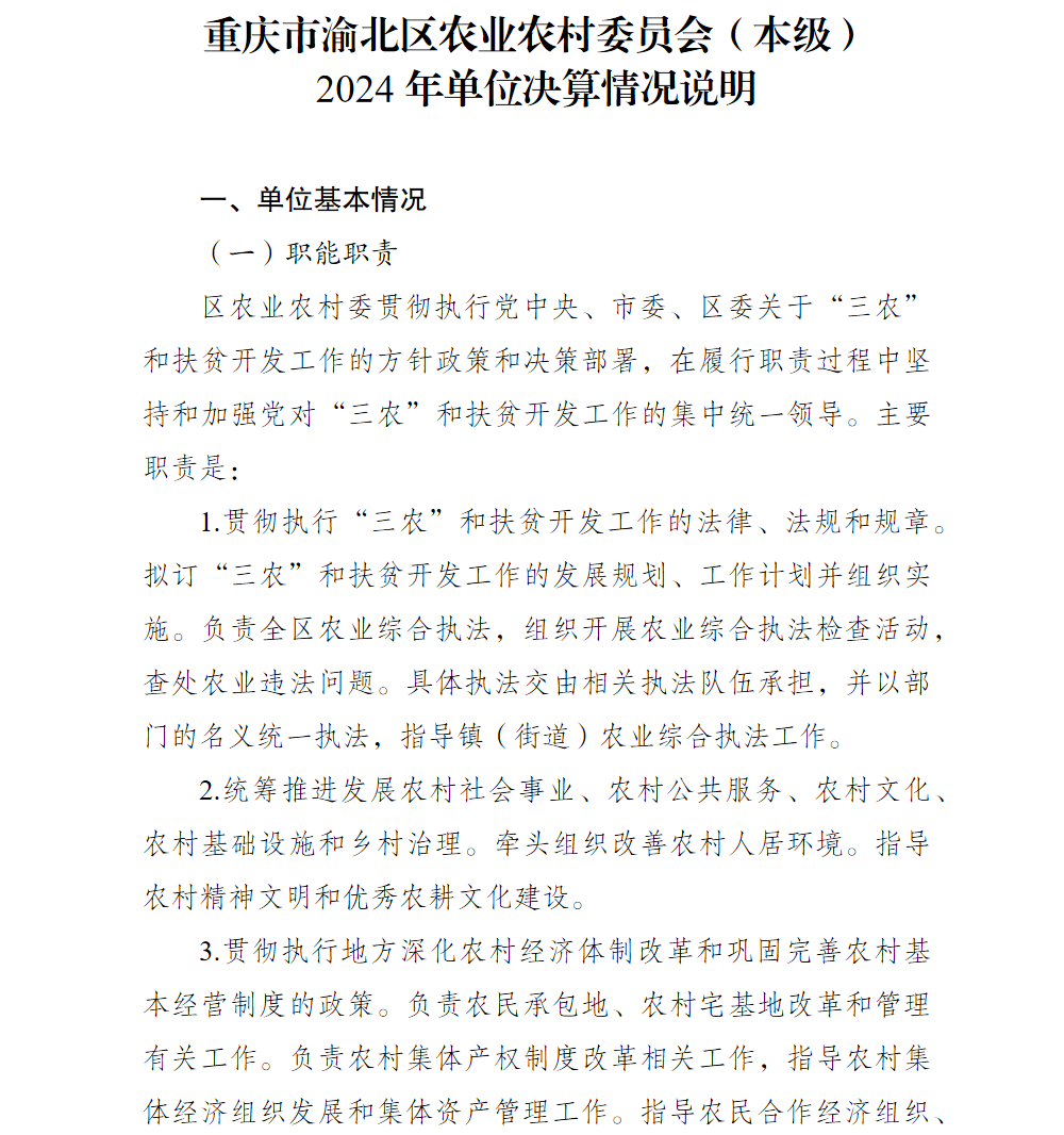 重庆市渝北区农业农村委员会(本级)2024年单位决算情况说明