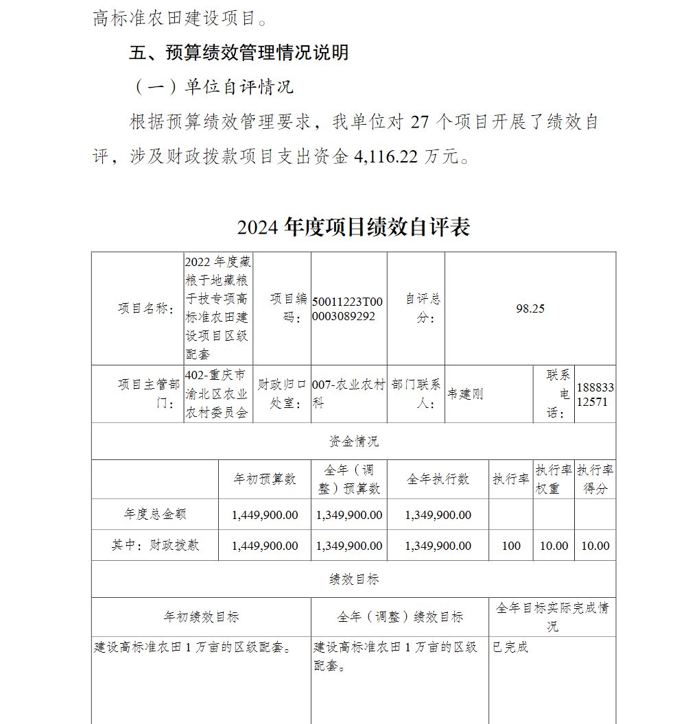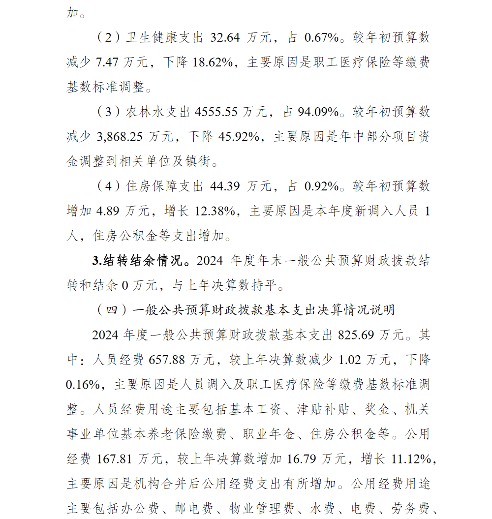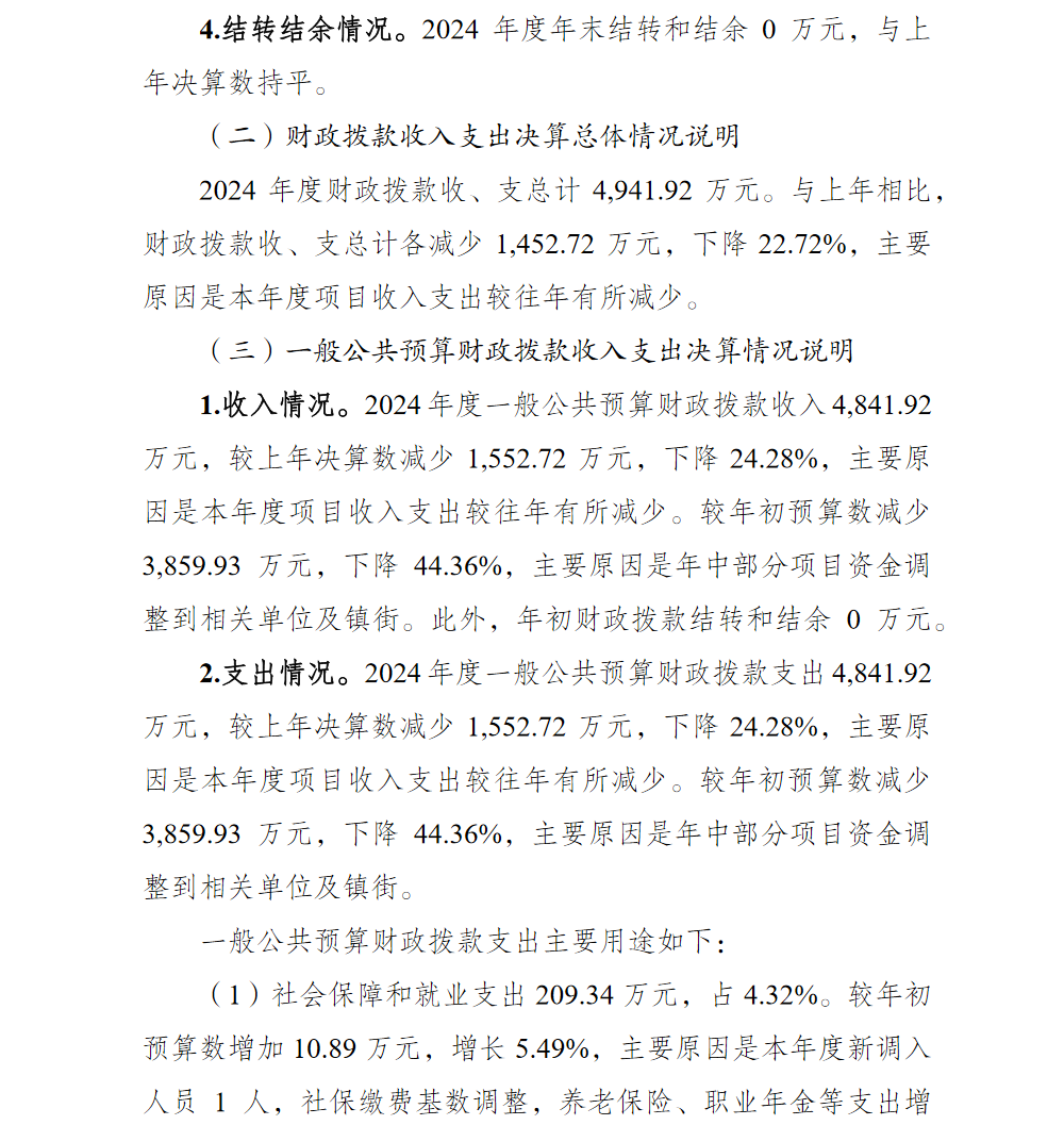 重庆市渝北区农业农村委员会(本级)2024年单位决算情况说明