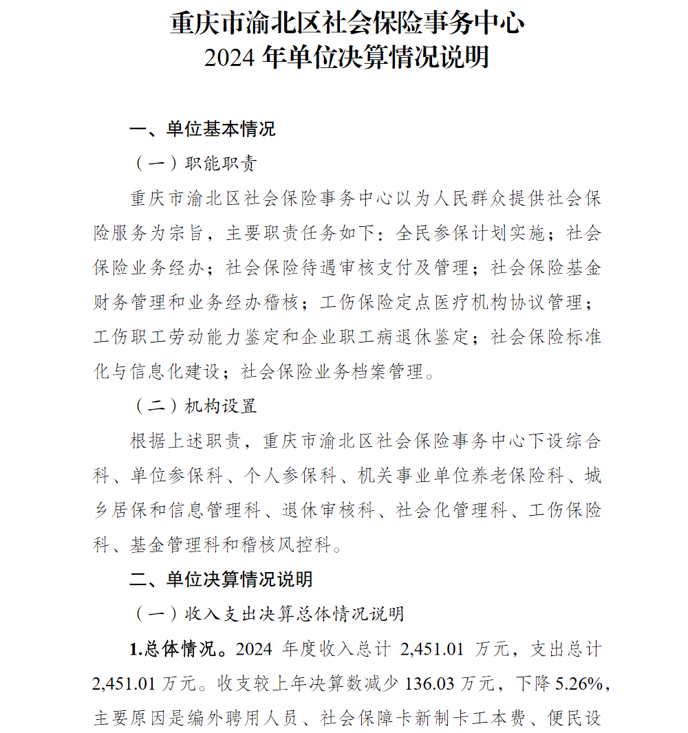 重庆市渝北区社会保险事务中心2024年单位决算情况说明