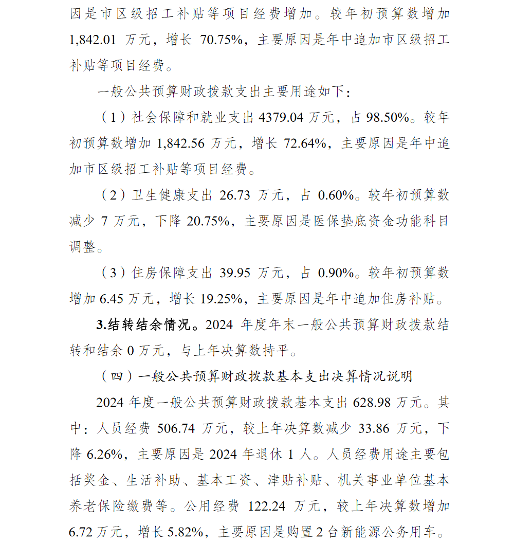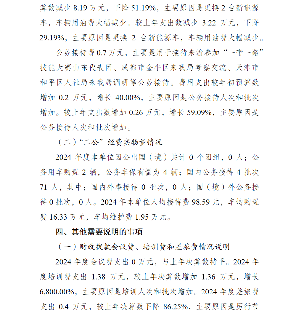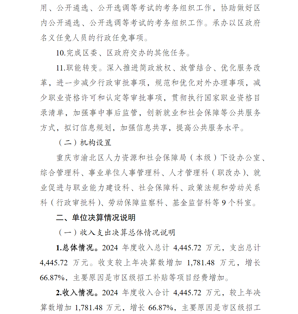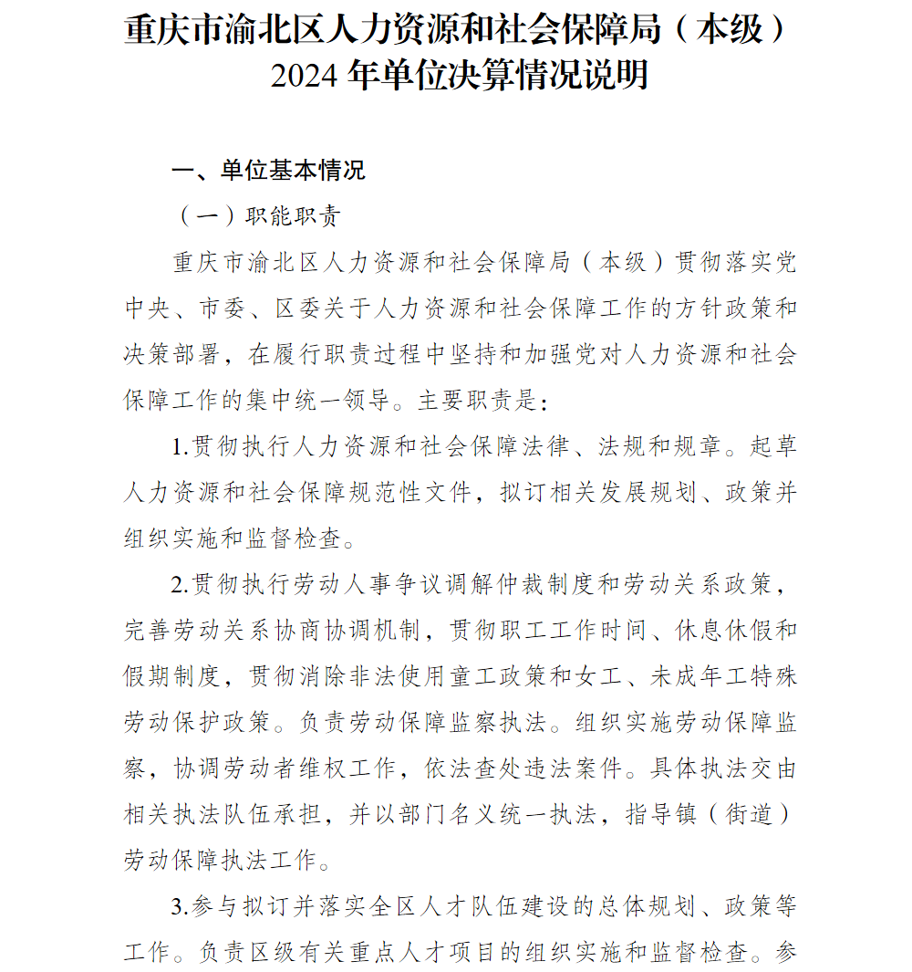 重庆市渝北区人力资源和社会保障局(本级)2024年单位决算情况说明