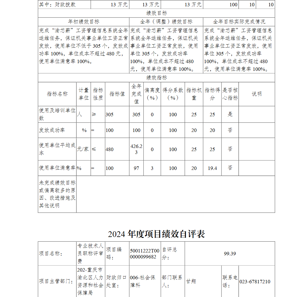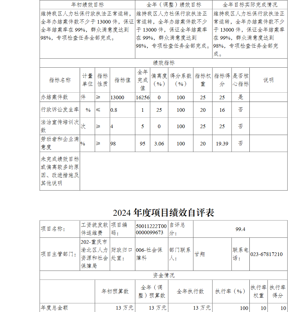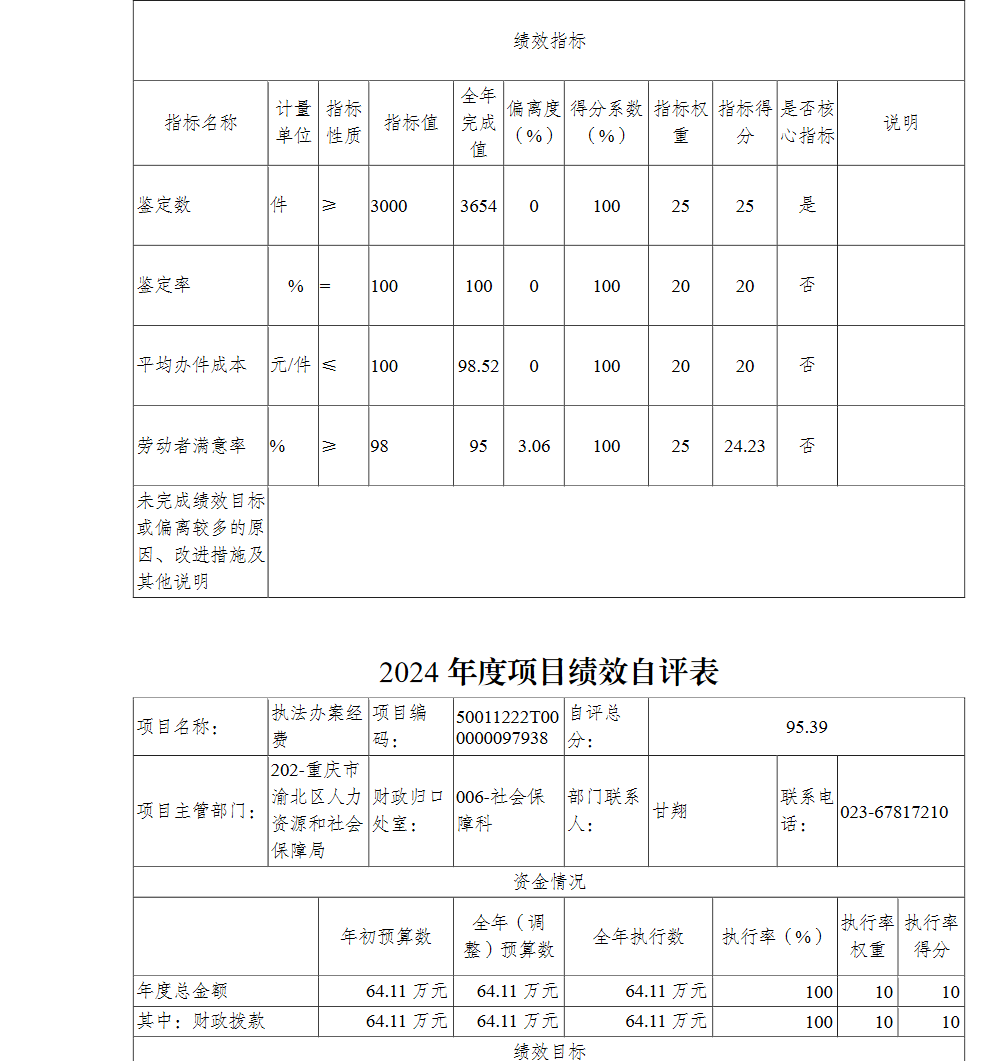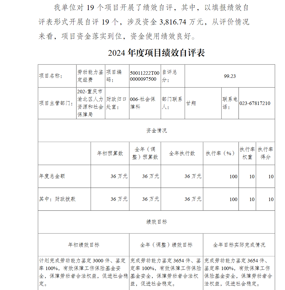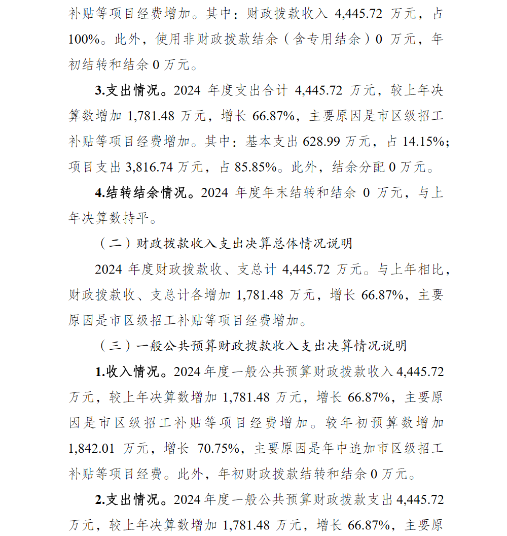 重庆市渝北区人力资源和社会保障局(本级)2024年单位决算情况说明