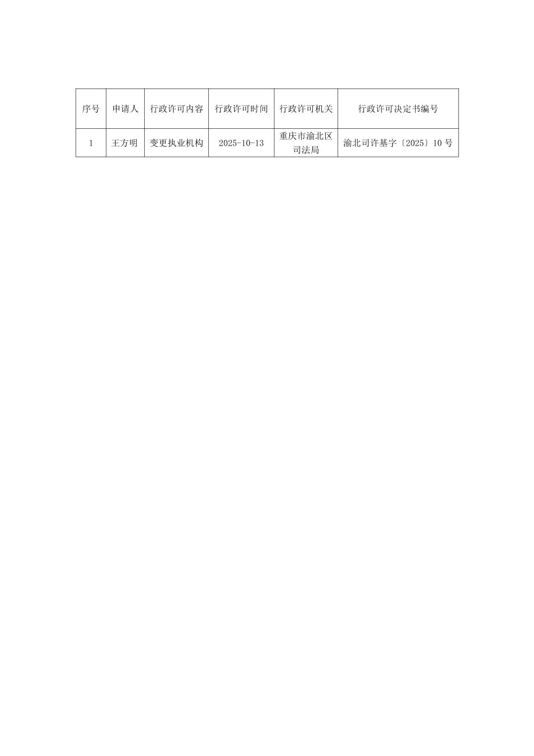 基层法律服务工作者执业、变更、注销行政许可办理结果