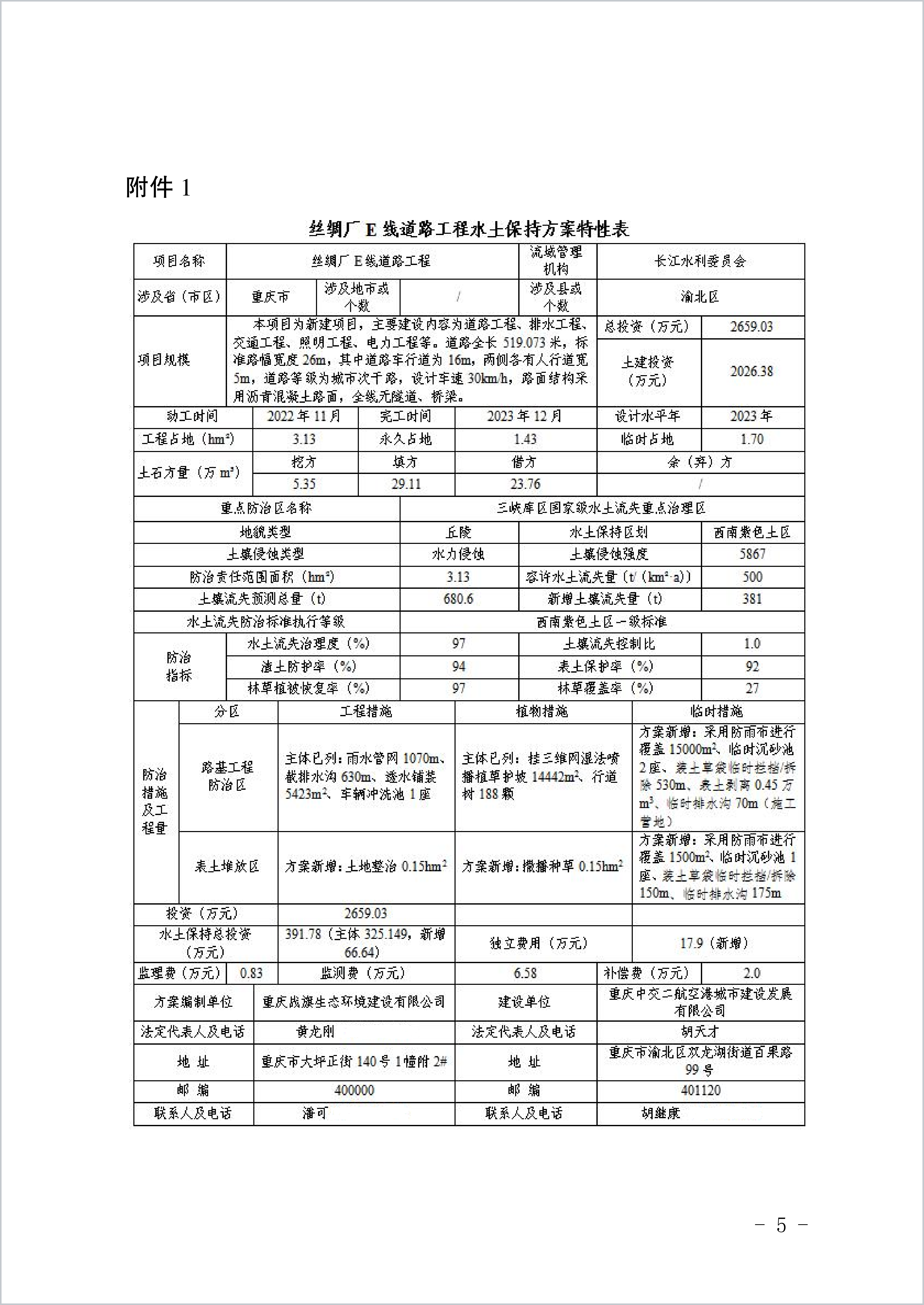 (四)同意项目水土流失防治标准执行等级为西南紫色土区建设类项目一级标准。