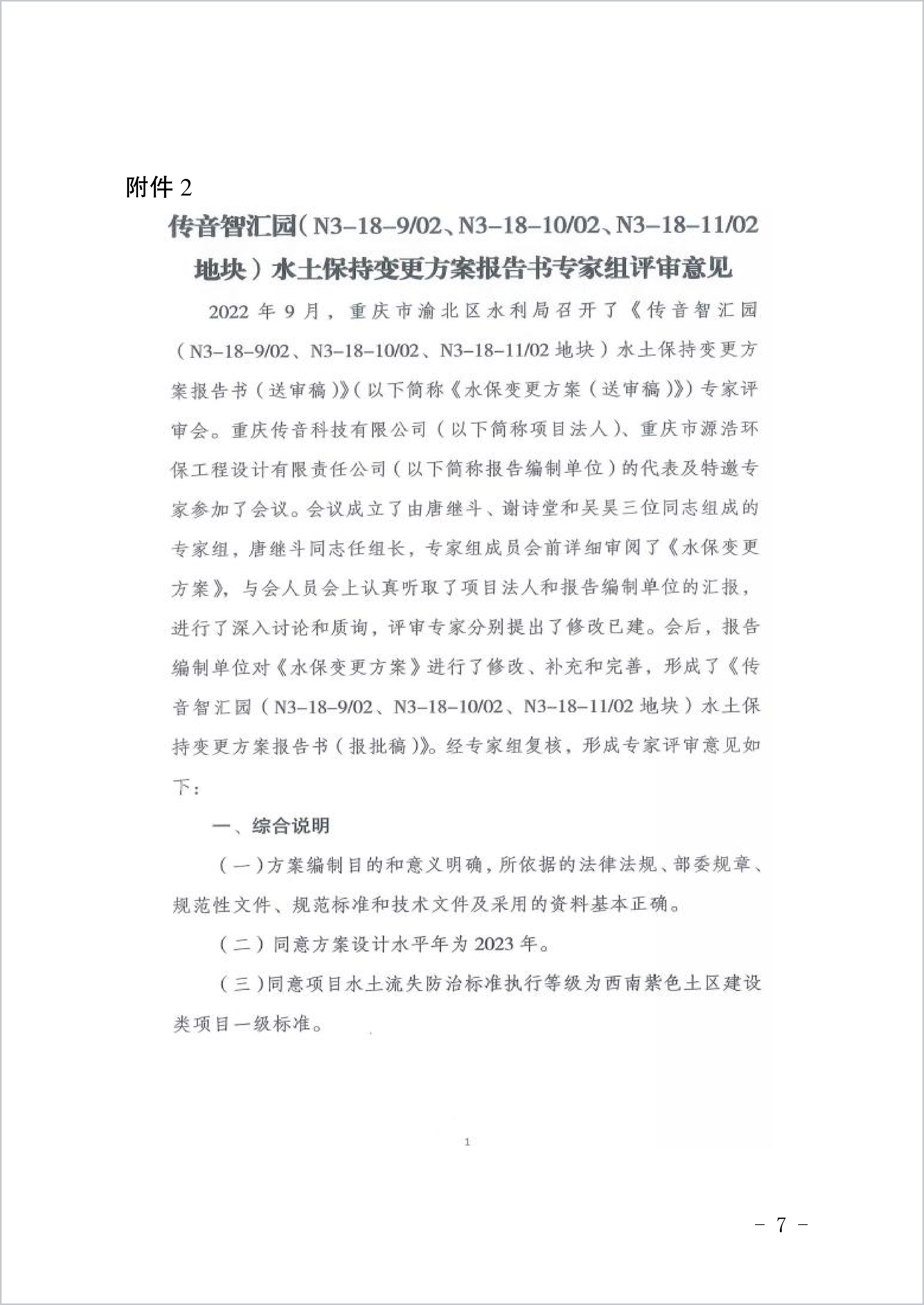 2.传音智汇园(N3-18-902、N3-18-1002、N3-18-1102地块)水土保持变更方案报告书专家评审意见