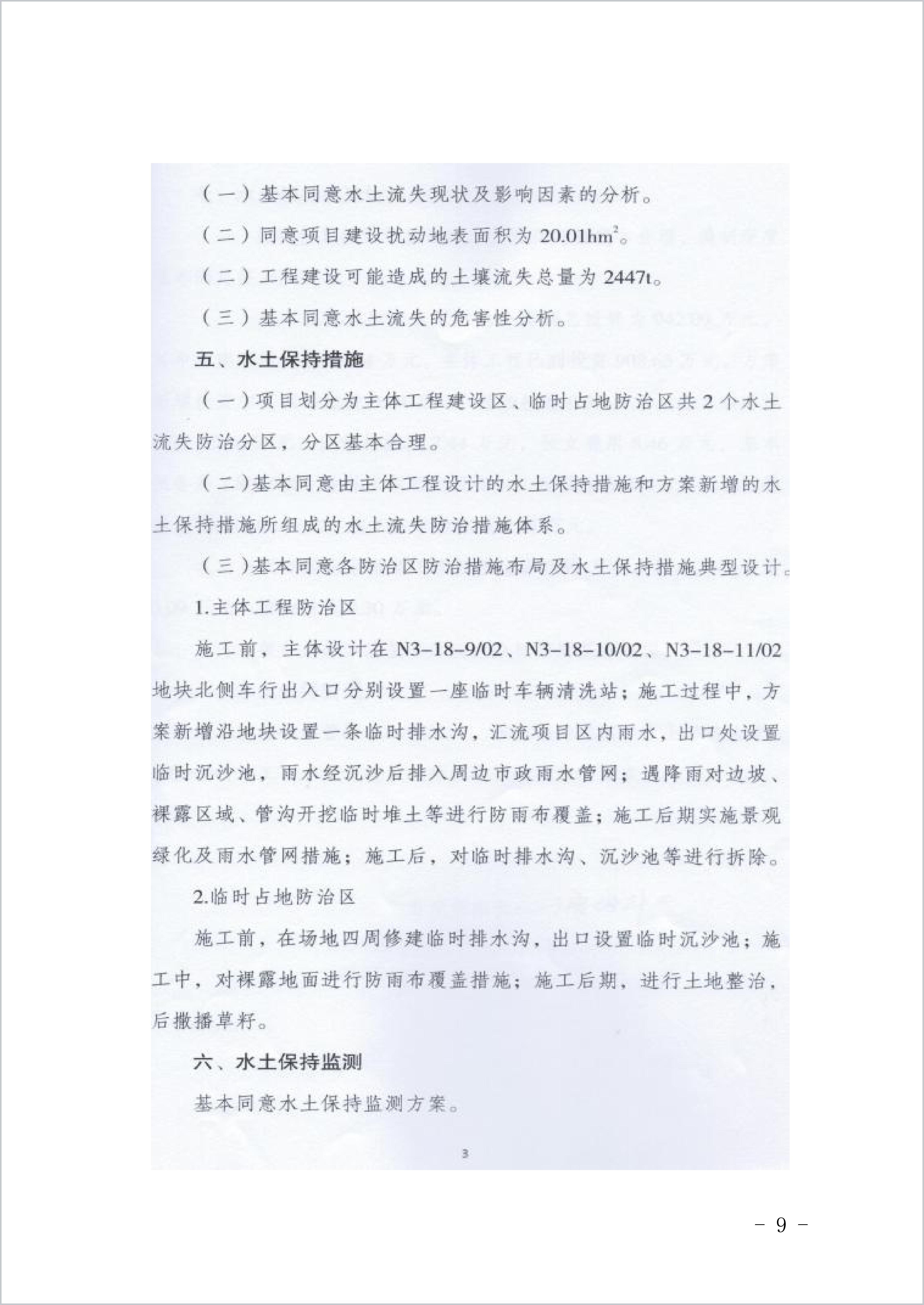 (三)同意水土流失防治责任范围界定,水土流失防治责任范围面积为20.01hm2。