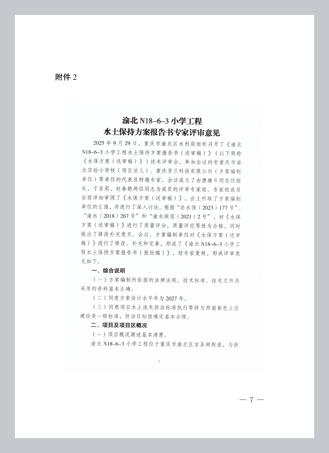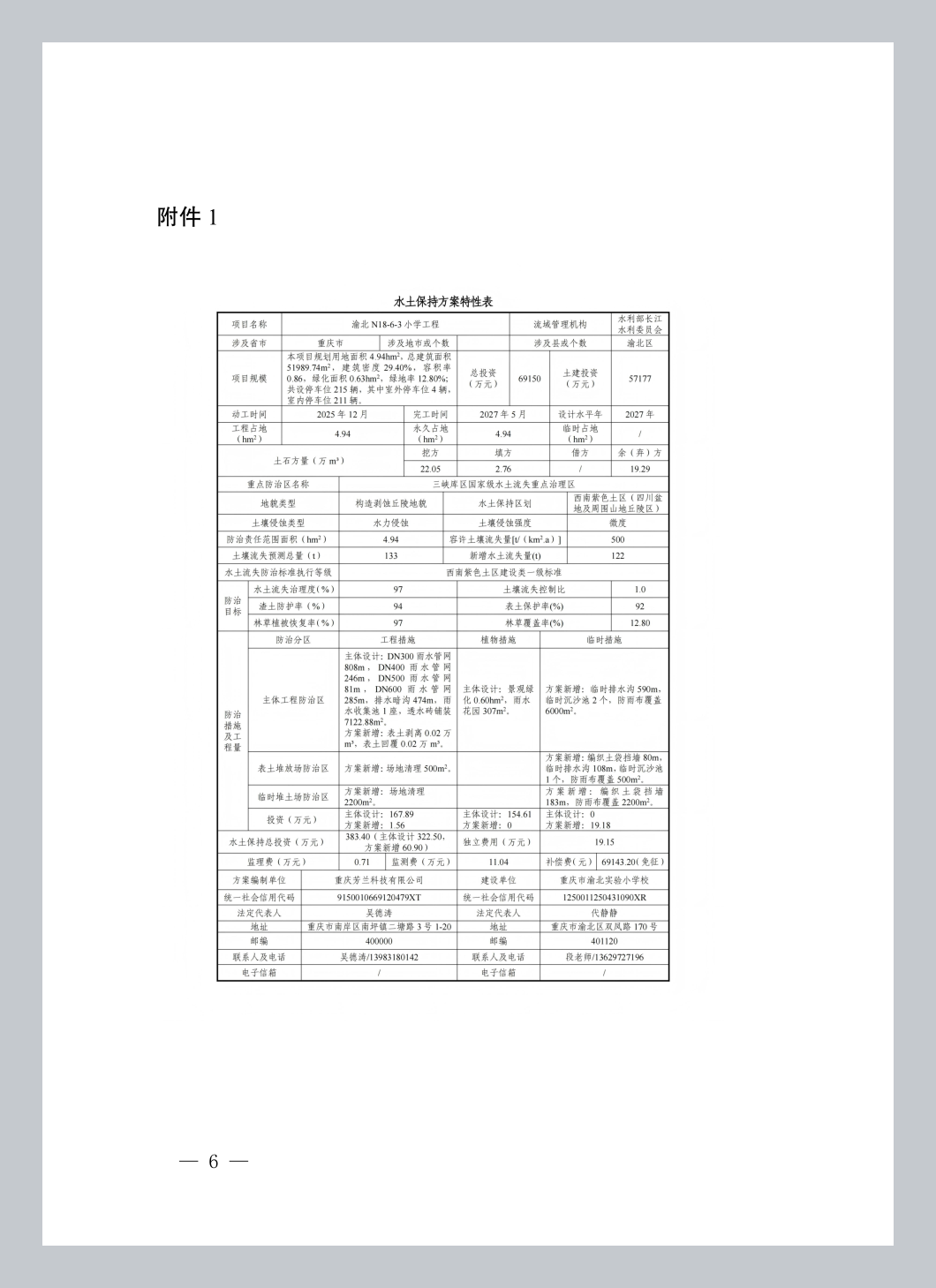 你单位提交的渝北N18-6-3小学工程水土保持方案审批申请(项目代码:2502-500112-04-01-180695)和《渝北N18-6-3小学工程水土保持方案报告书》收悉。经审查,该申请符合法定条件,根据《中华人民共和国行政许可法》第三十八条、《水行政许可实施办法》第三十二条第一项规定,决定准予行政许可。