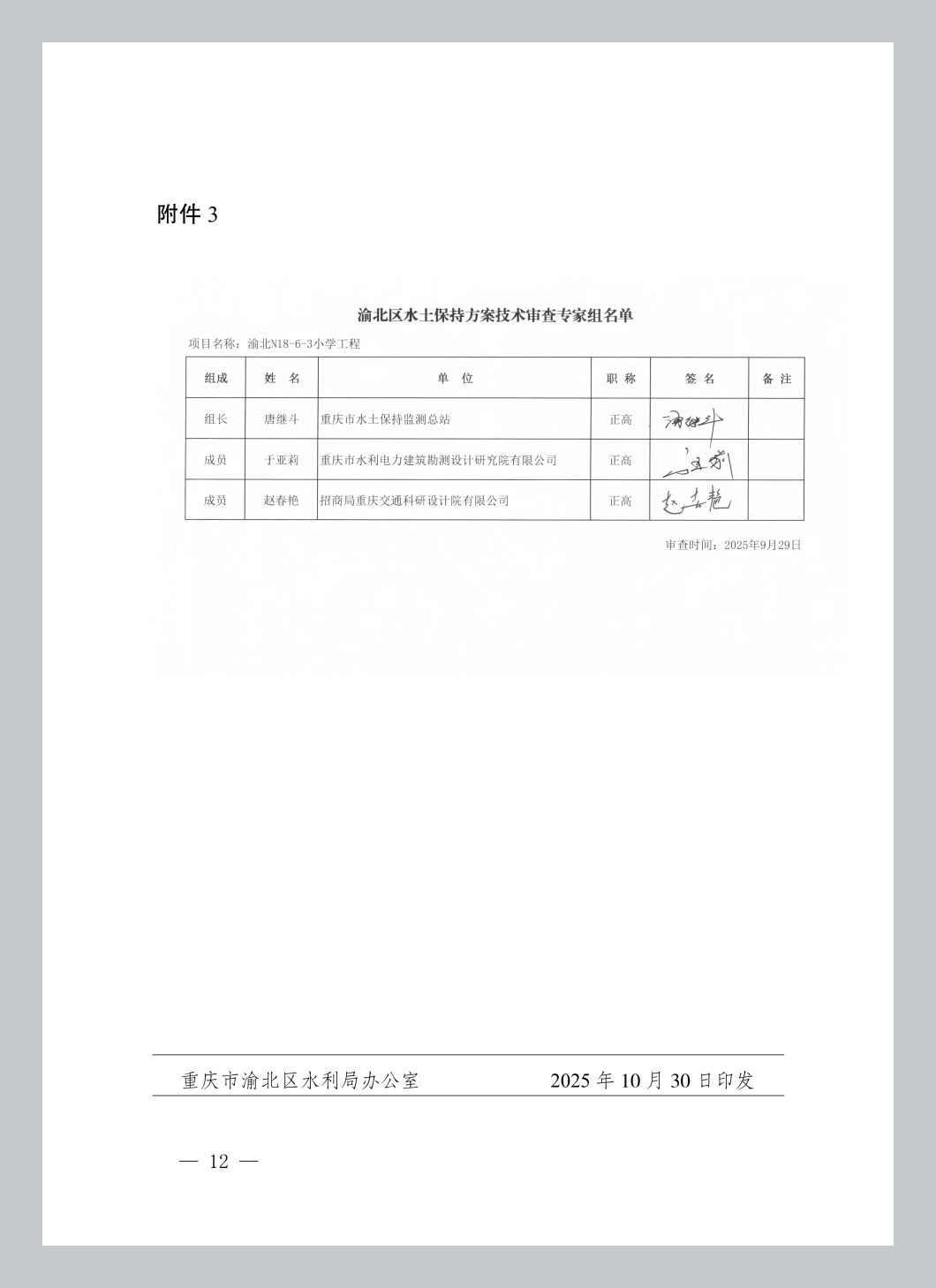 重庆市渝北区水利局关于渝北N18-6-3小学工程水土保持方案准予行政许可的决定