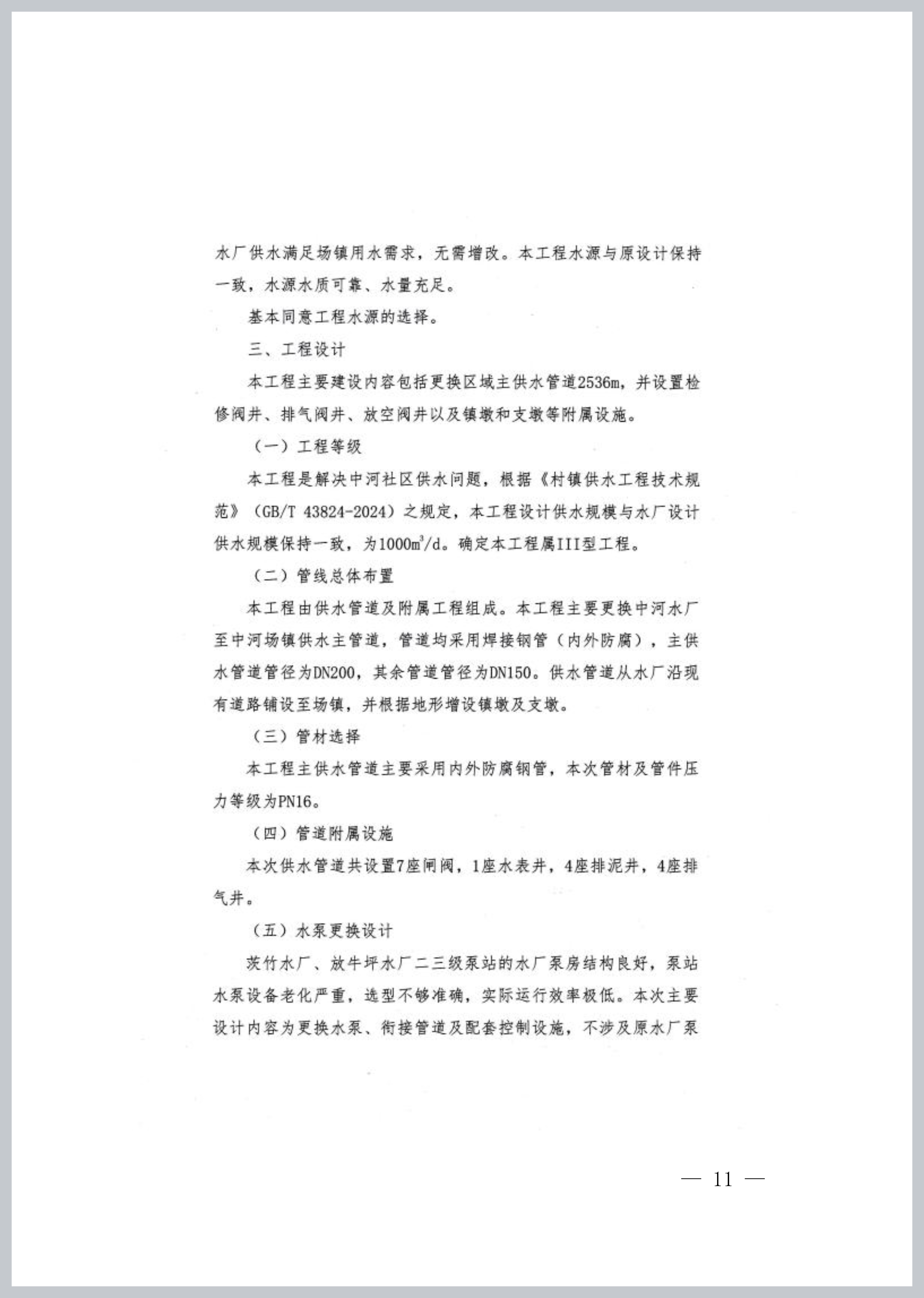 本工程是解决中河社区供水问题,根据《村镇供水工程技术规范》(GB/T 43824-2024)之规定,本工程设计供水规模与水厂设计供水规模保持一致,为1000m3/d。确定本工程属III型工程。