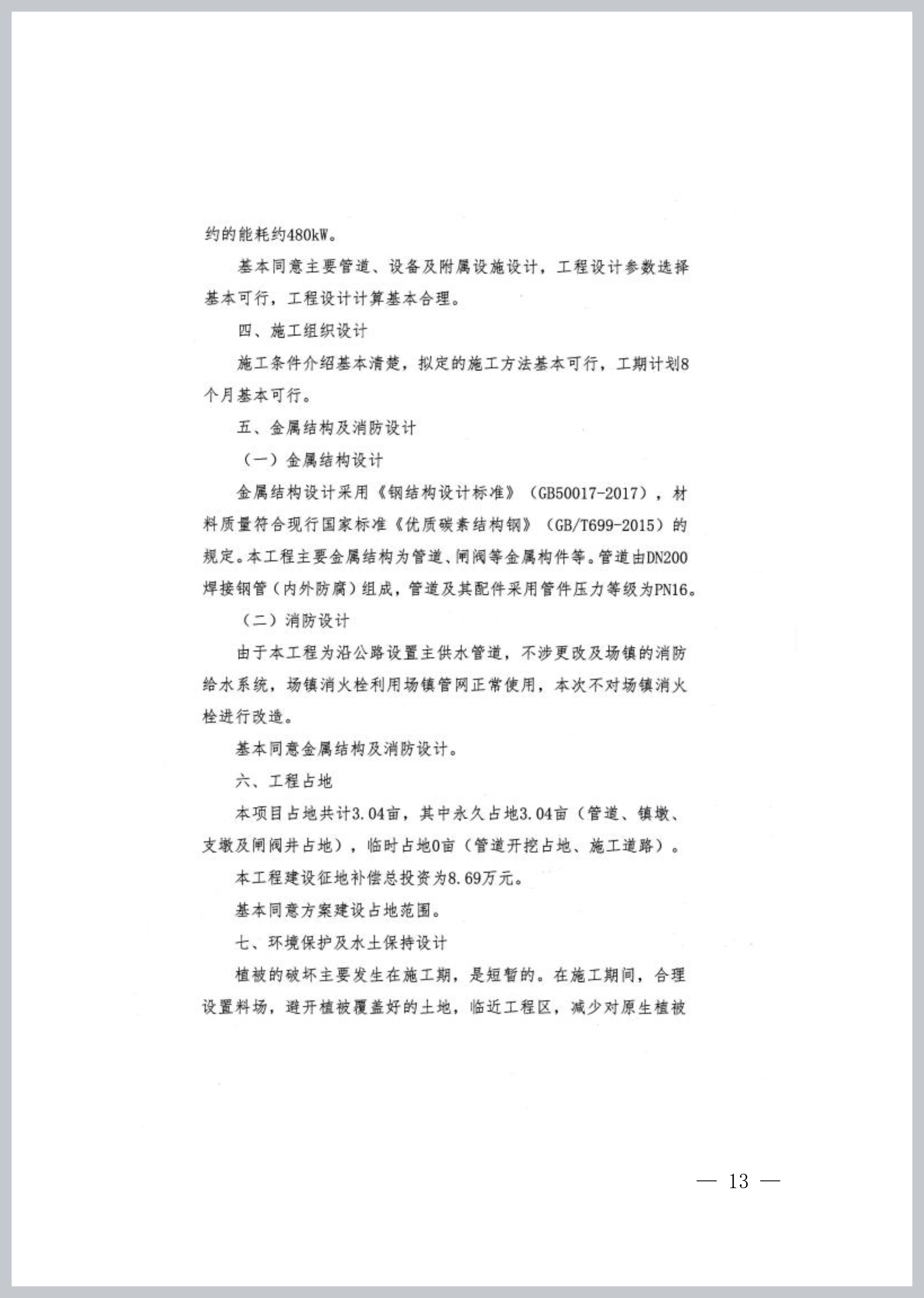 金属结构设计采用《钢结构设计标准》(GB50017-2017),材料质量符合现行国家标准《优质碳素结构钢》(GB/T699-2015)的规定。本工程主要金属结构为管道、闸阀等金属构件。管道由DN200焊接钢管(内外防腐)组成,管道及其配件采用管件压力等级为PN16。