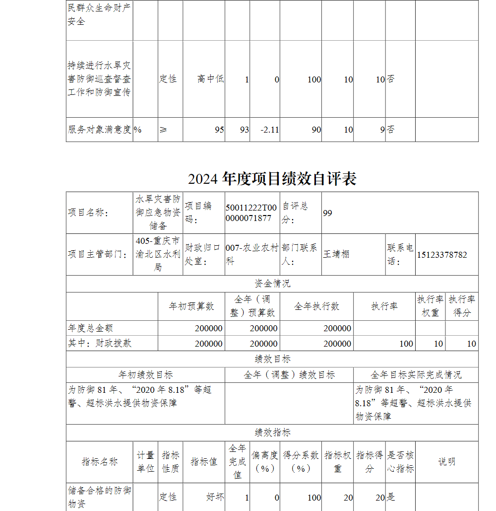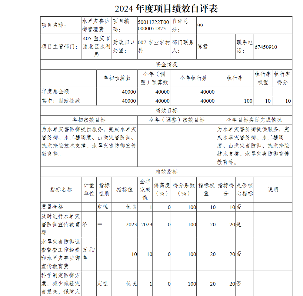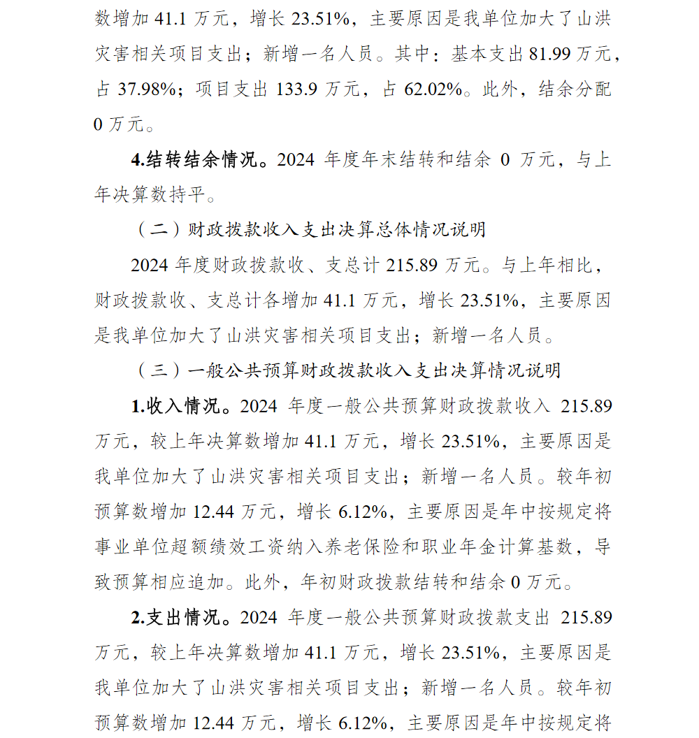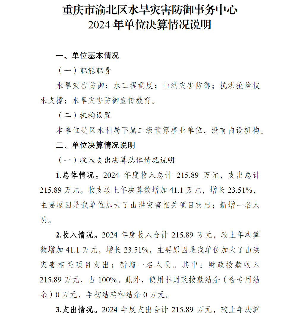 重庆市渝北区水旱灾害防御事务中心2024年单位决算情况说明
