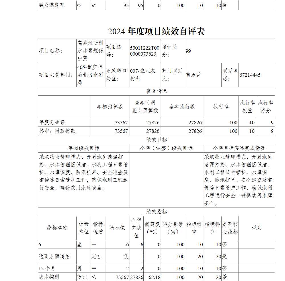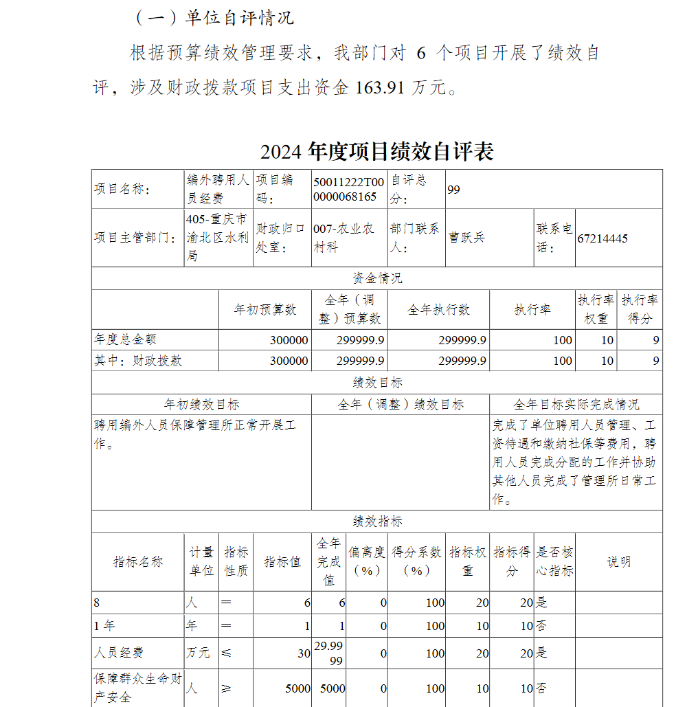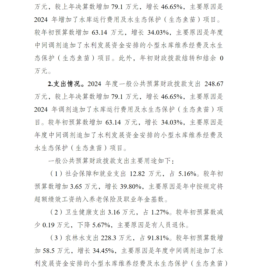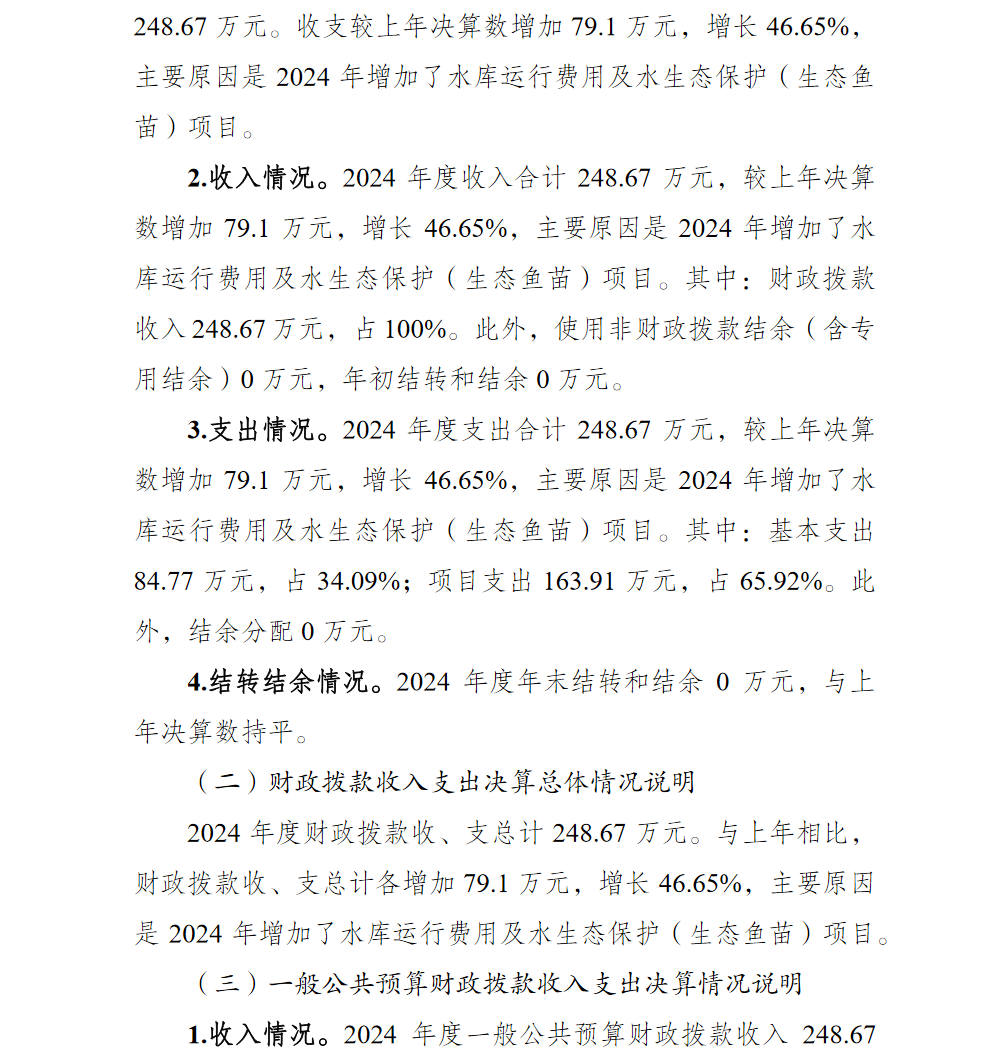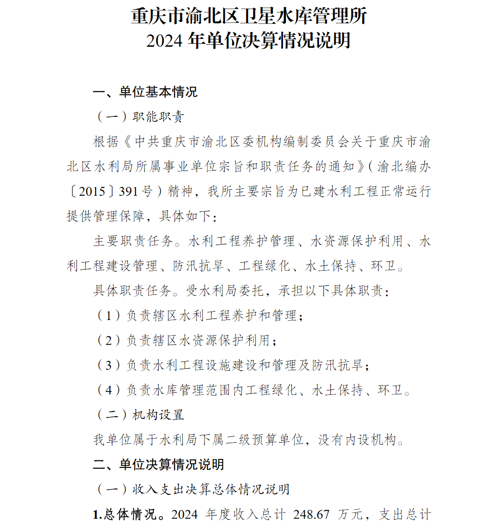重庆市渝北区卫星水库管理所2024年单位决算情况说明
