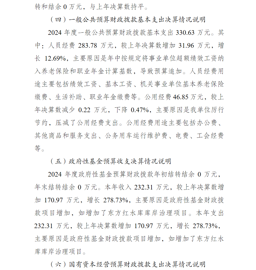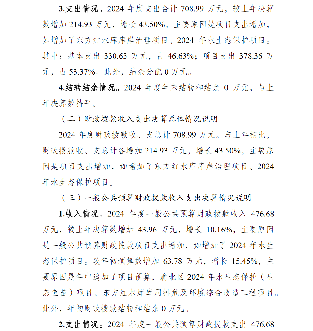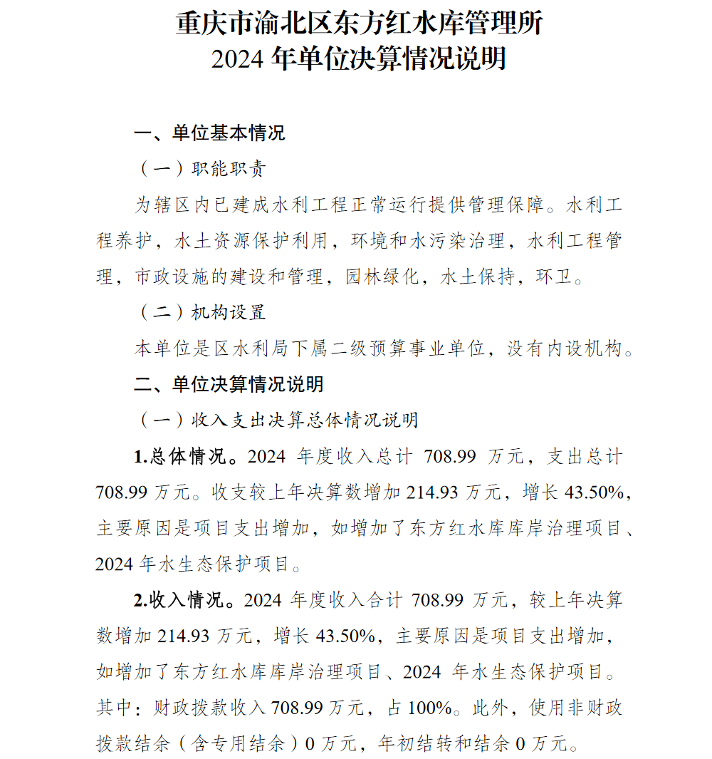 重庆市渝北区东方红水库管理所2024年单位决算情况说明