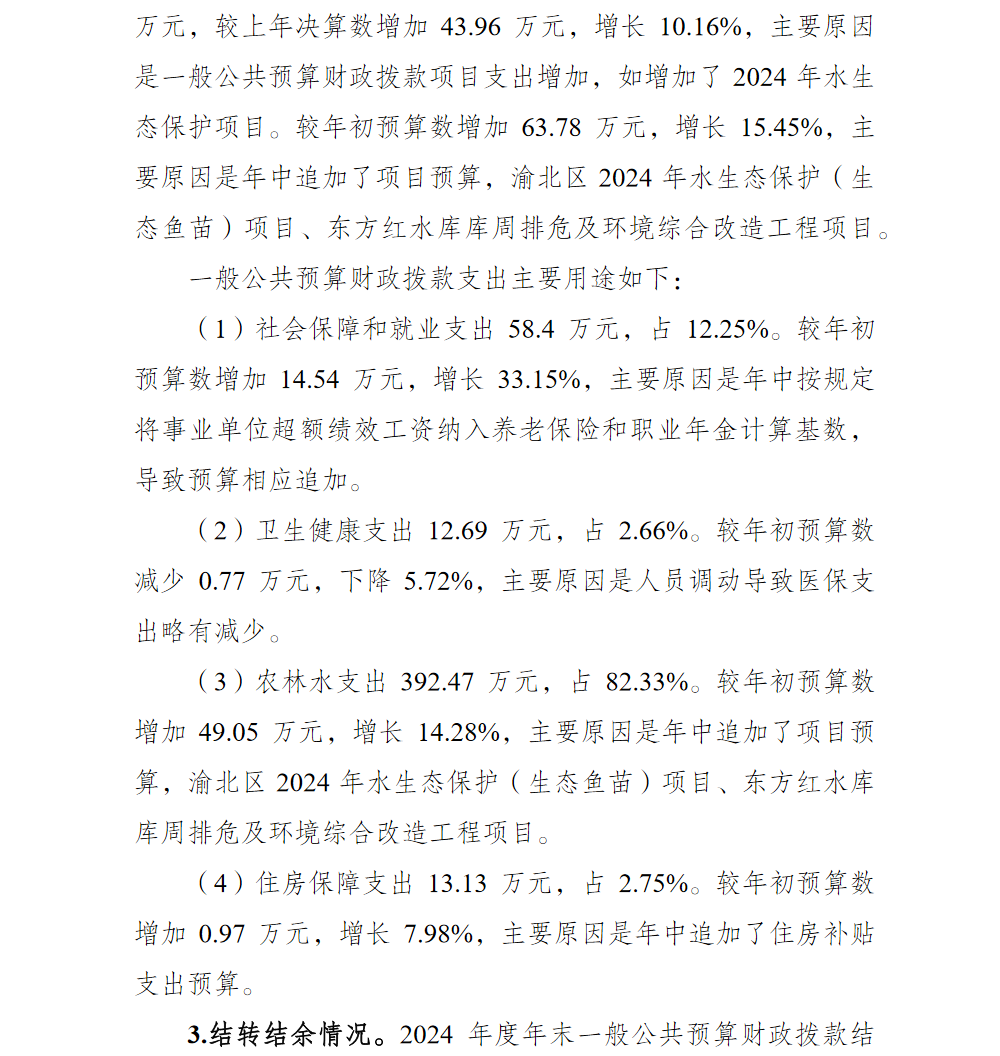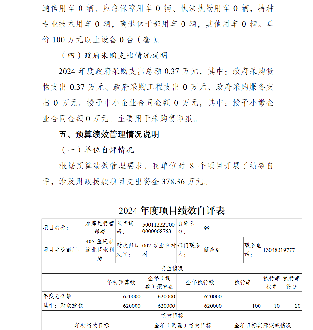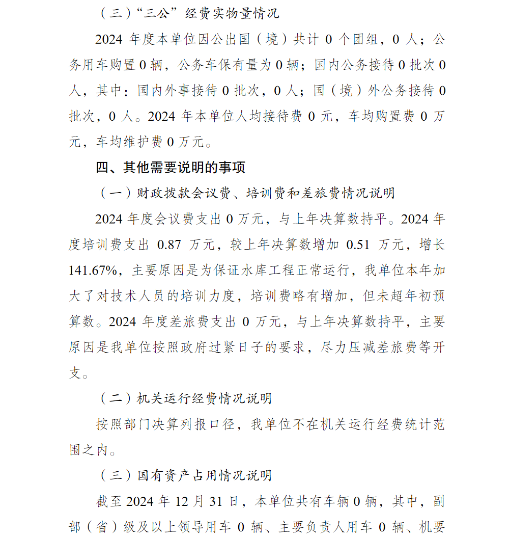 重庆市渝北区东方红水库管理所2024年单位决算情况说明