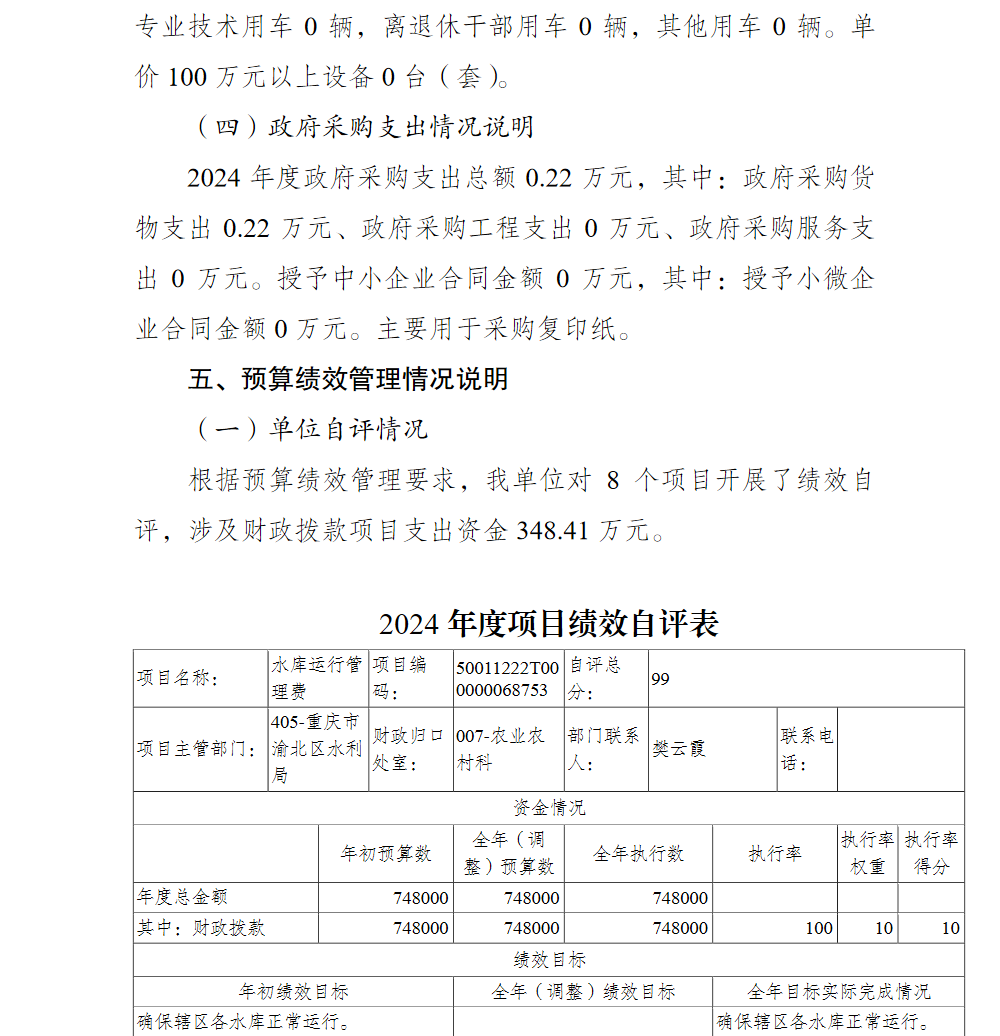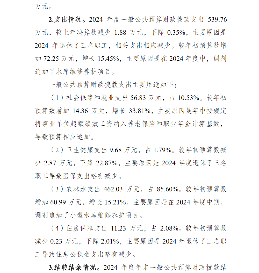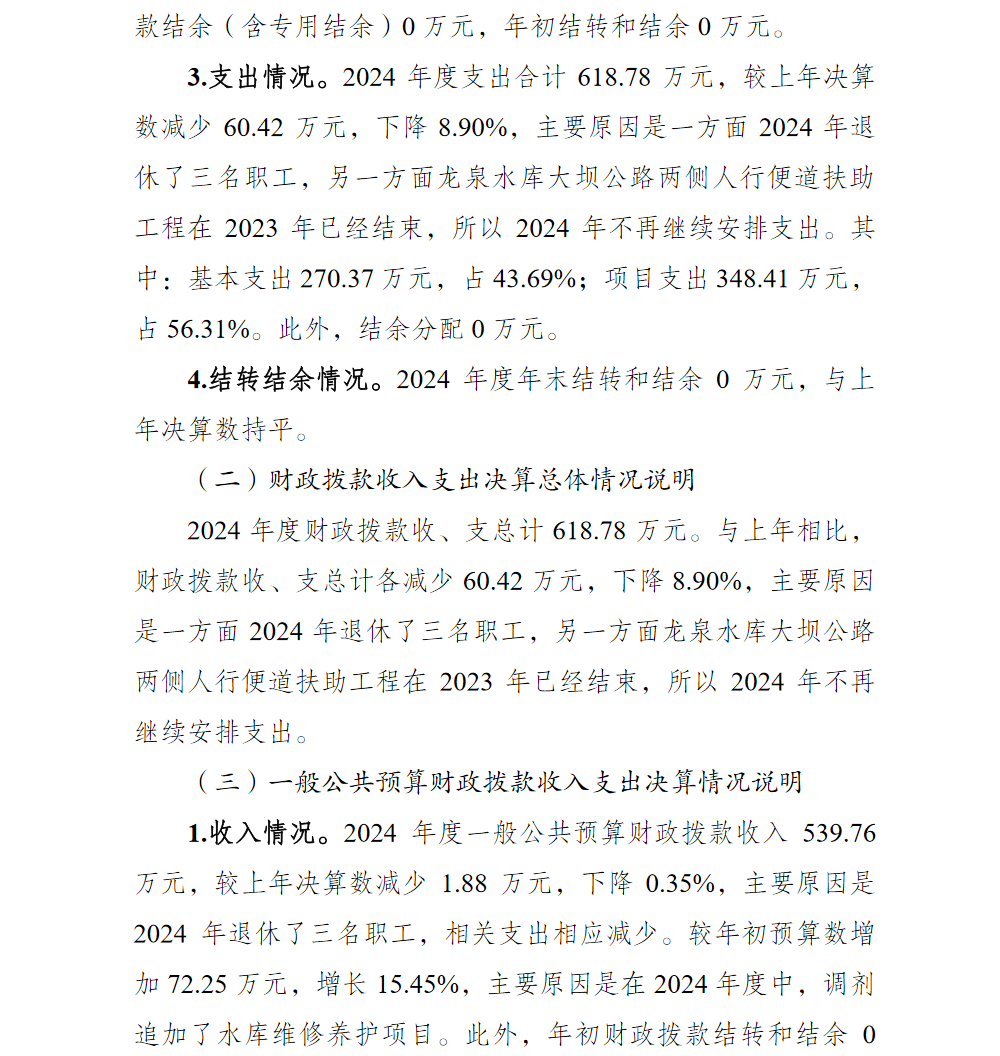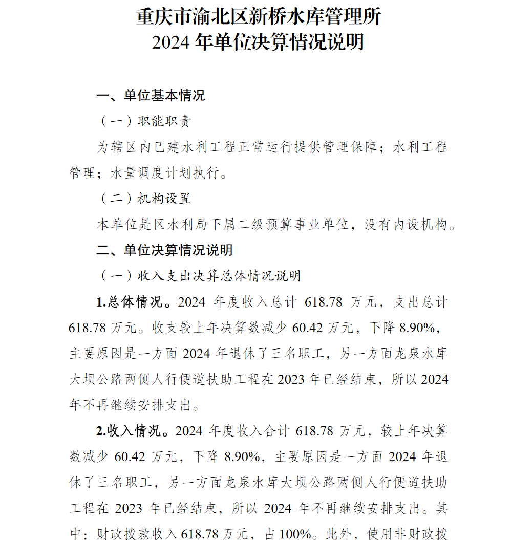 重庆市渝北区新桥水库管理所2024年单位决算情况说明