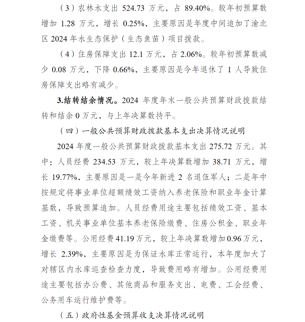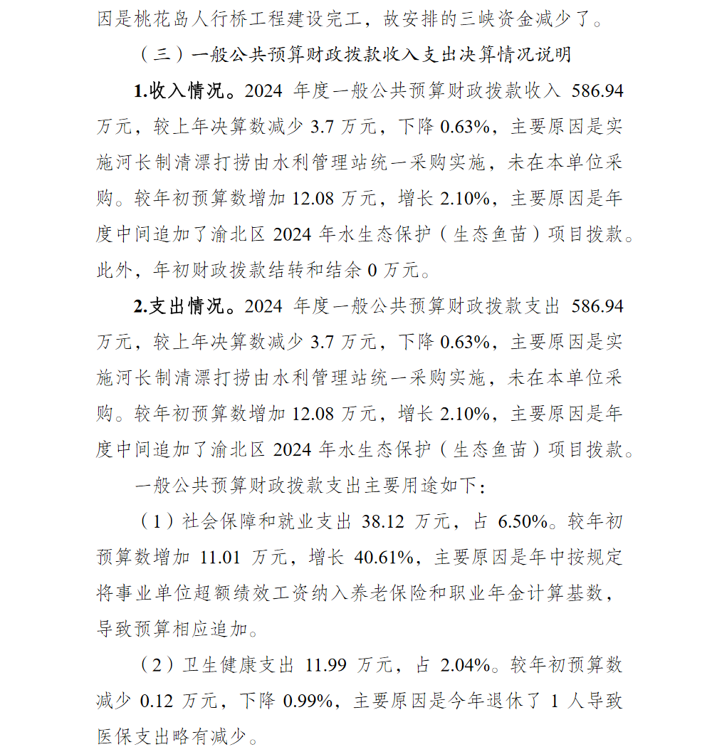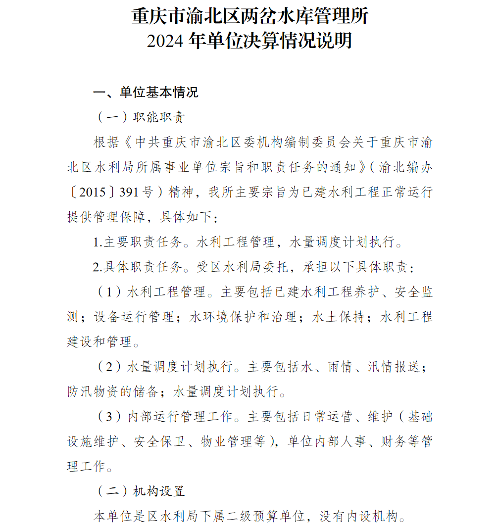 重庆市渝北区两岔水库管理所2024年单位决算情况说明