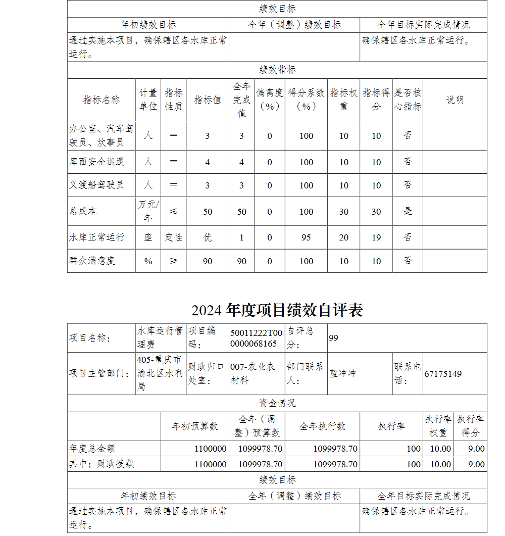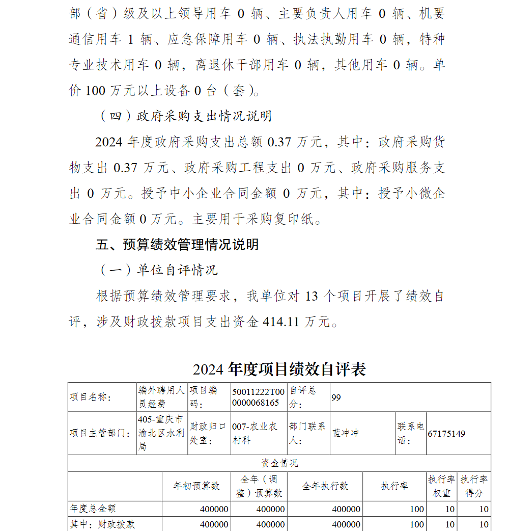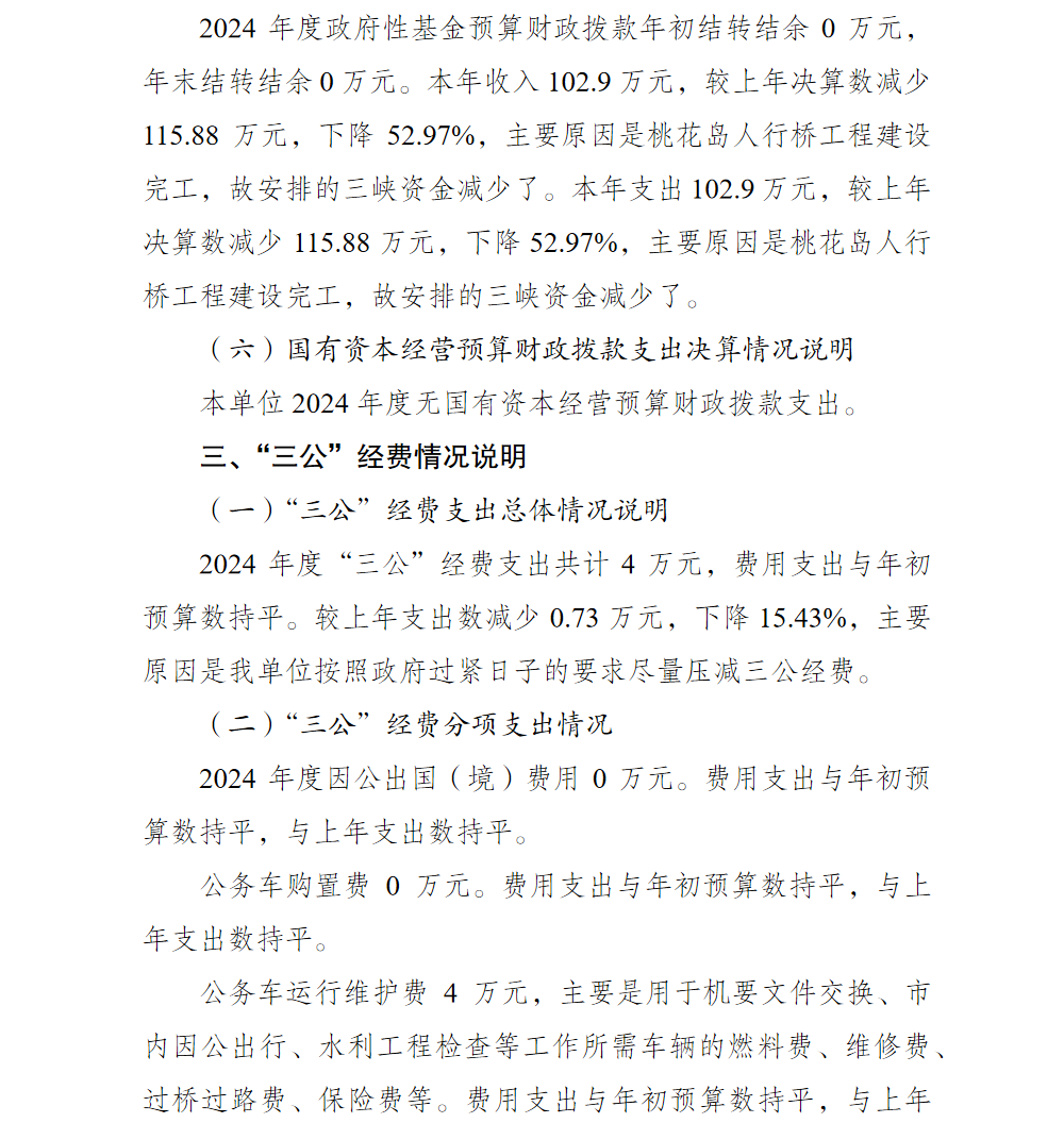重庆市渝北区两岔水库管理所2024年单位决算情况说明