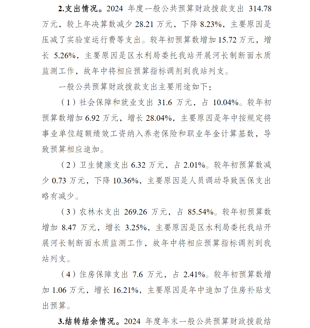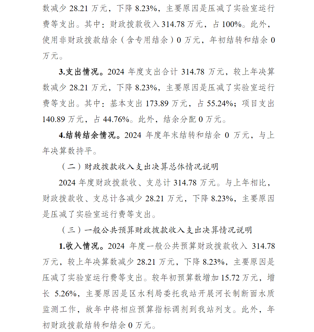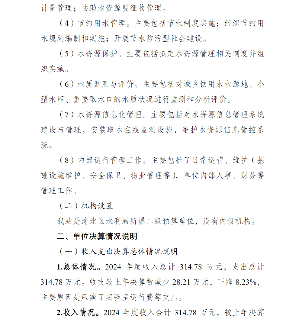 重庆市渝北区水资源管理站2024年单位决算情况说明