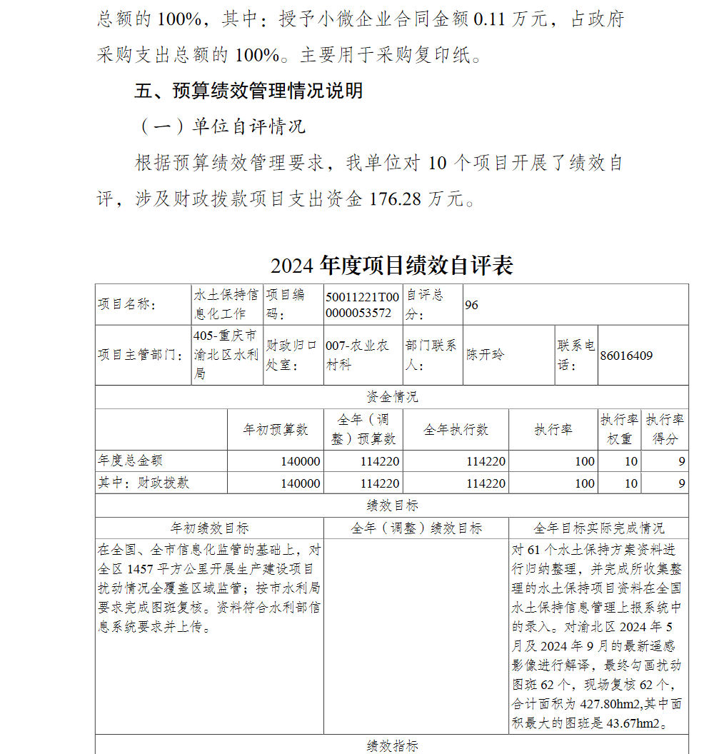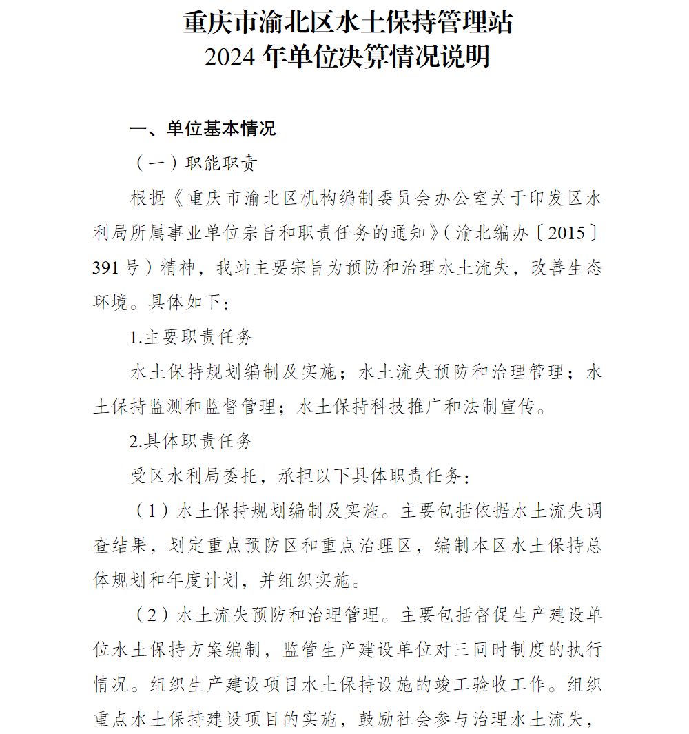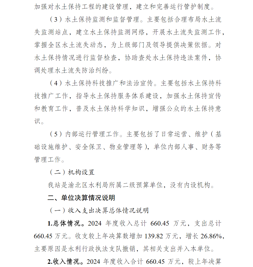 重庆市渝北区水土保持管理站2024年单位决算情况说明
