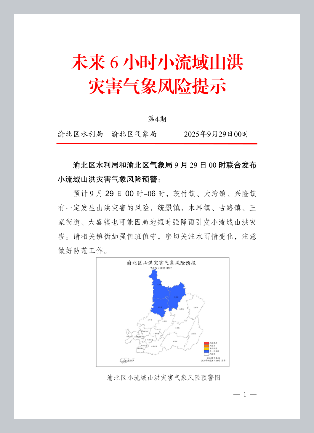 未来 6 小时小流域山洪灾害气象风险提示(2025年第4期)