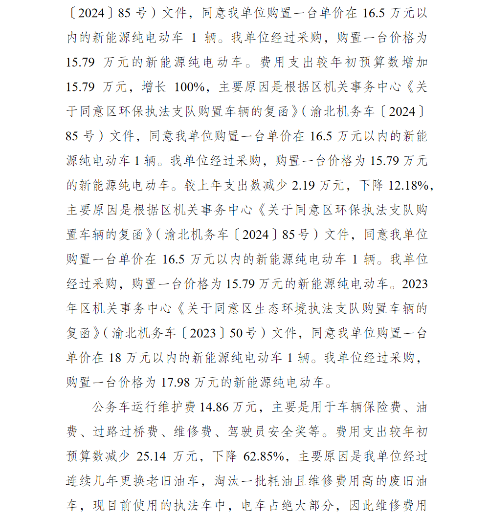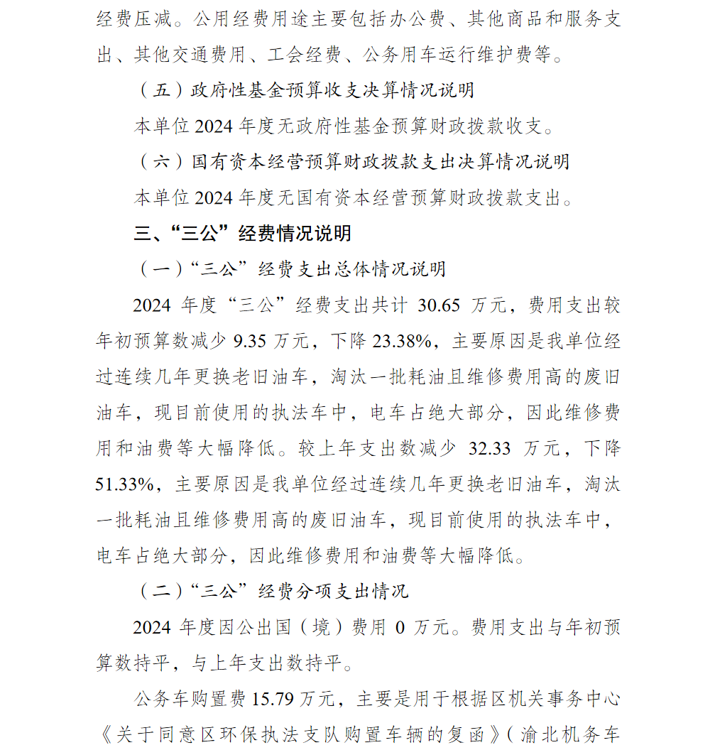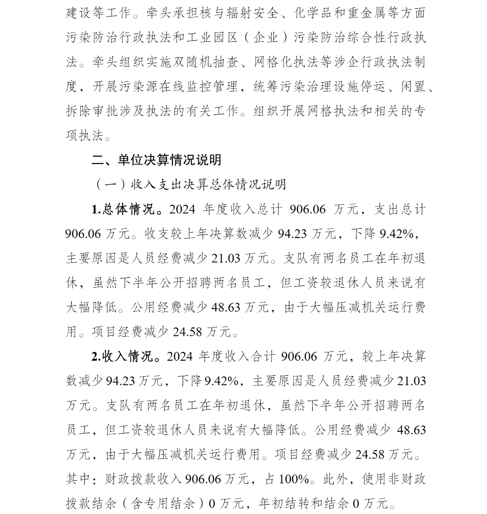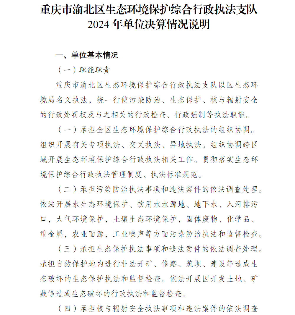 重庆市渝北区生态环境保护综合行政执法支队2024年单位决算情况说明