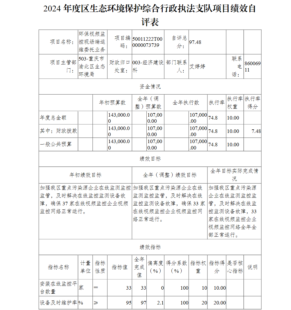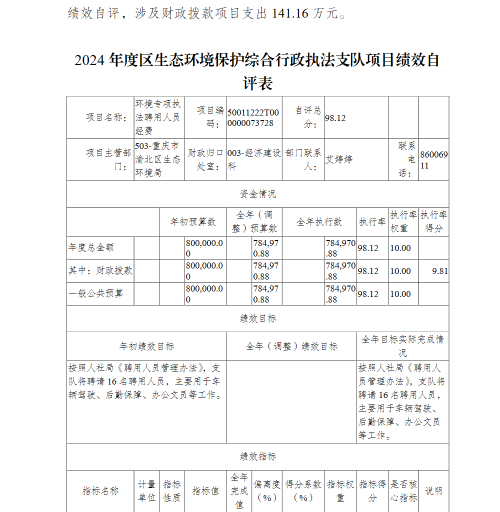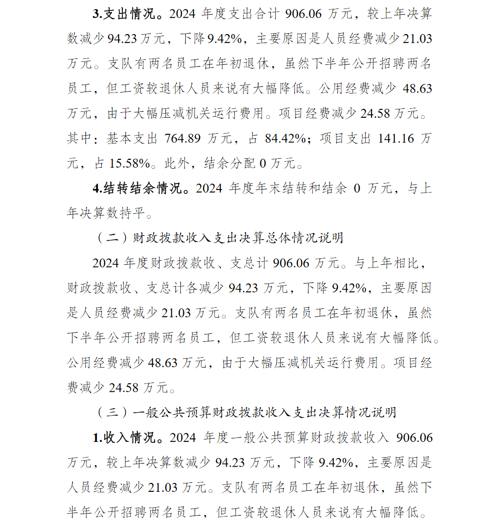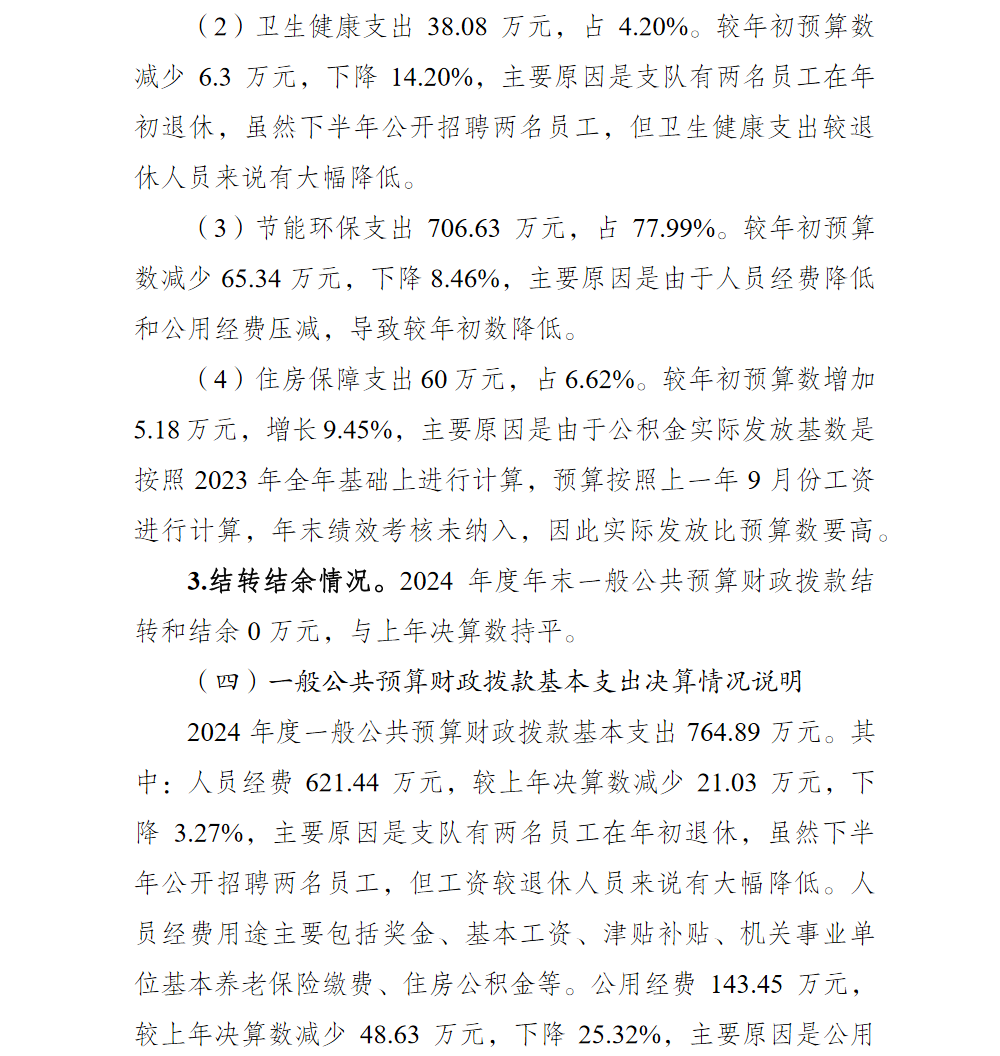 重庆市渝北区生态环境保护综合行政执法支队2024年单位决算情况说明