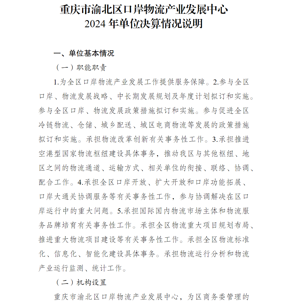 重庆市渝北区口岸物流产业发展中心2024年单位决算情况说明