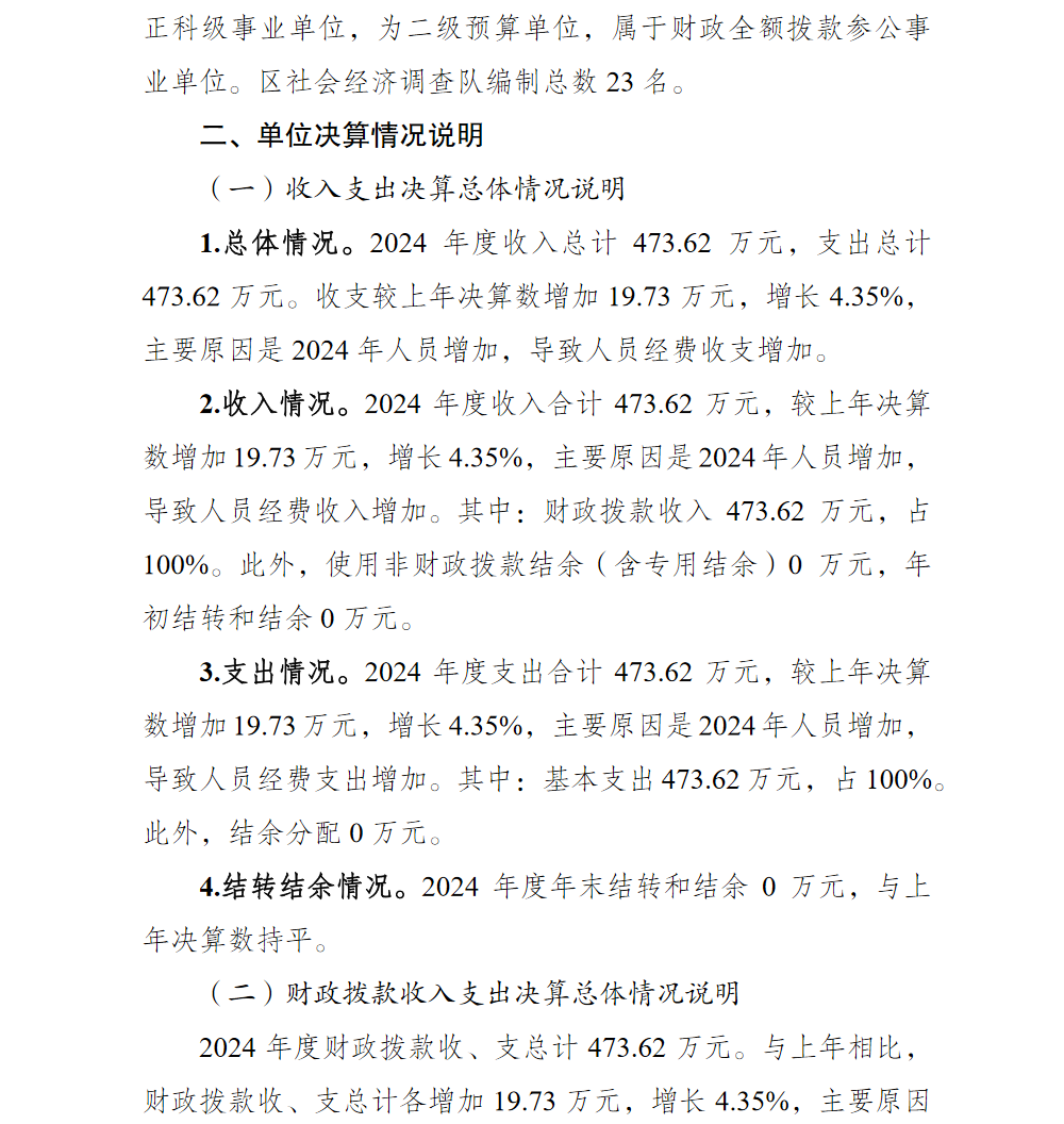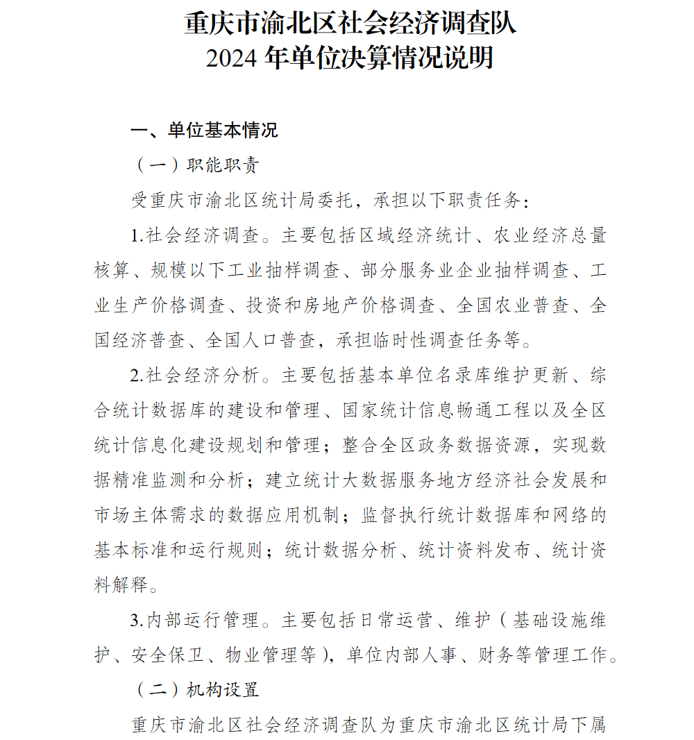 重庆市渝北区社会经济调查队2024年单位决算情况说明