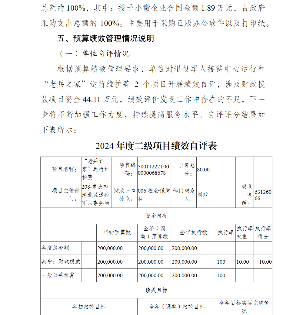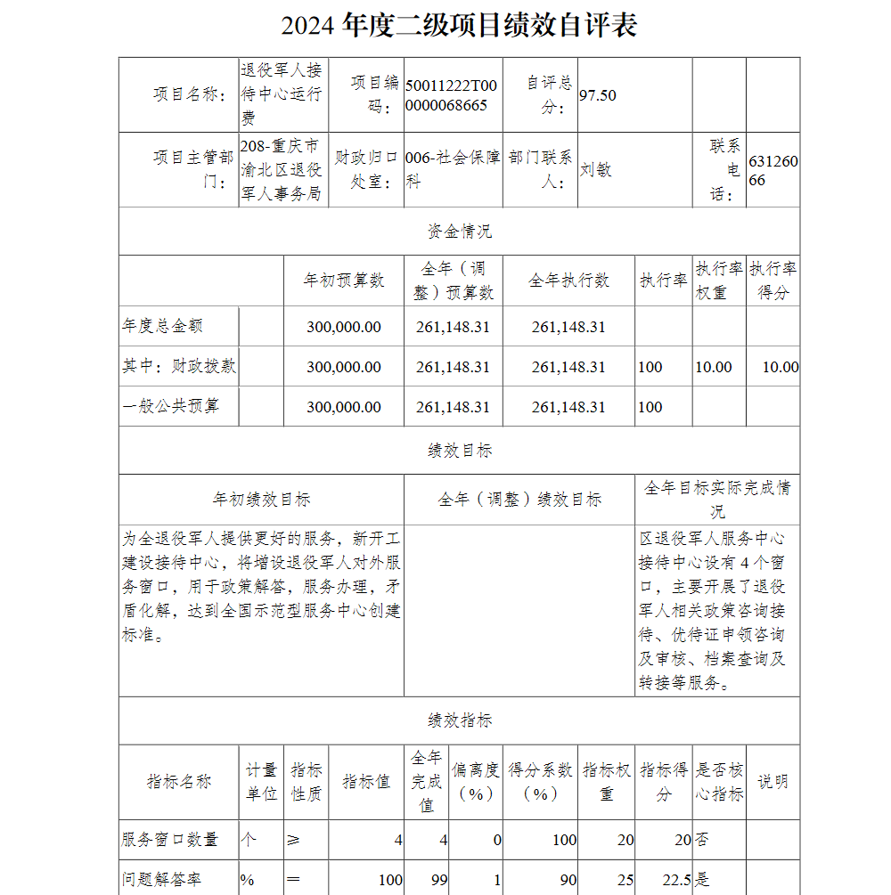 重庆市渝北区退役军人服务中心2024年单位决算情况说明