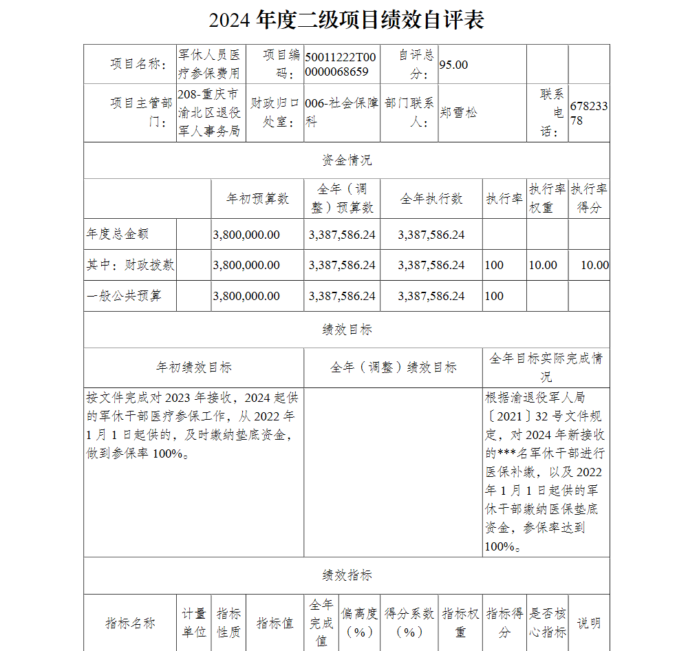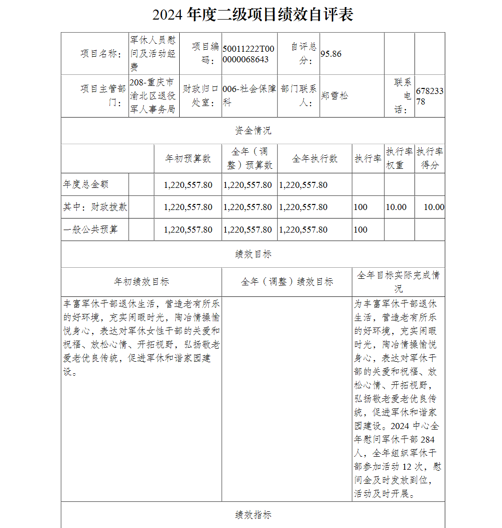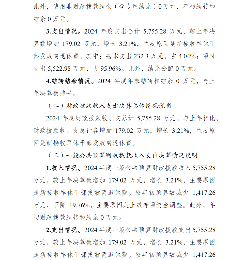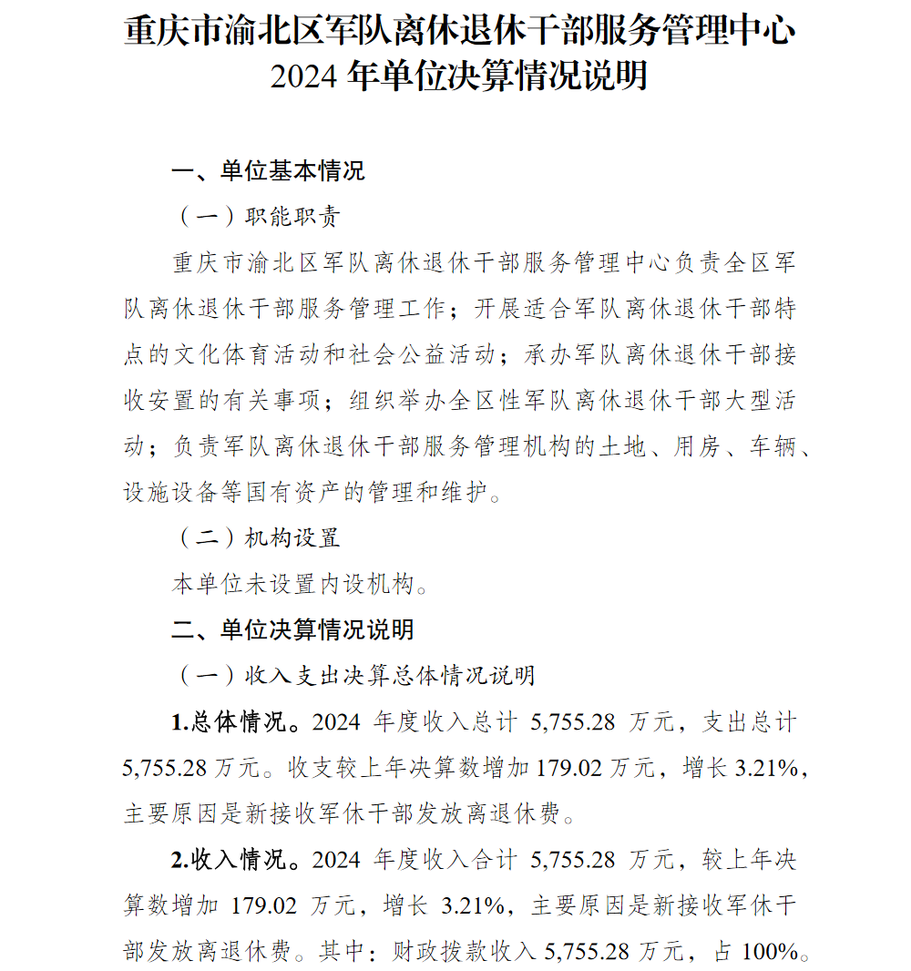 重庆市渝北区军队离休退休干部服务管理中心2024年单位决算情况说明