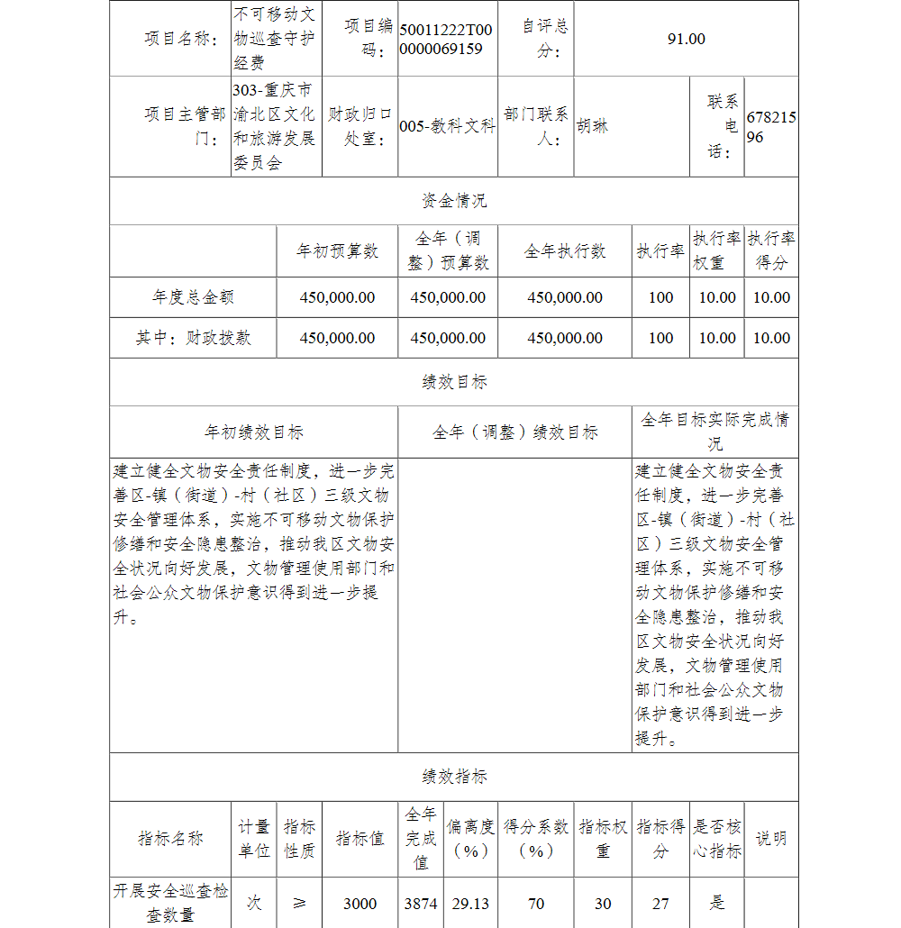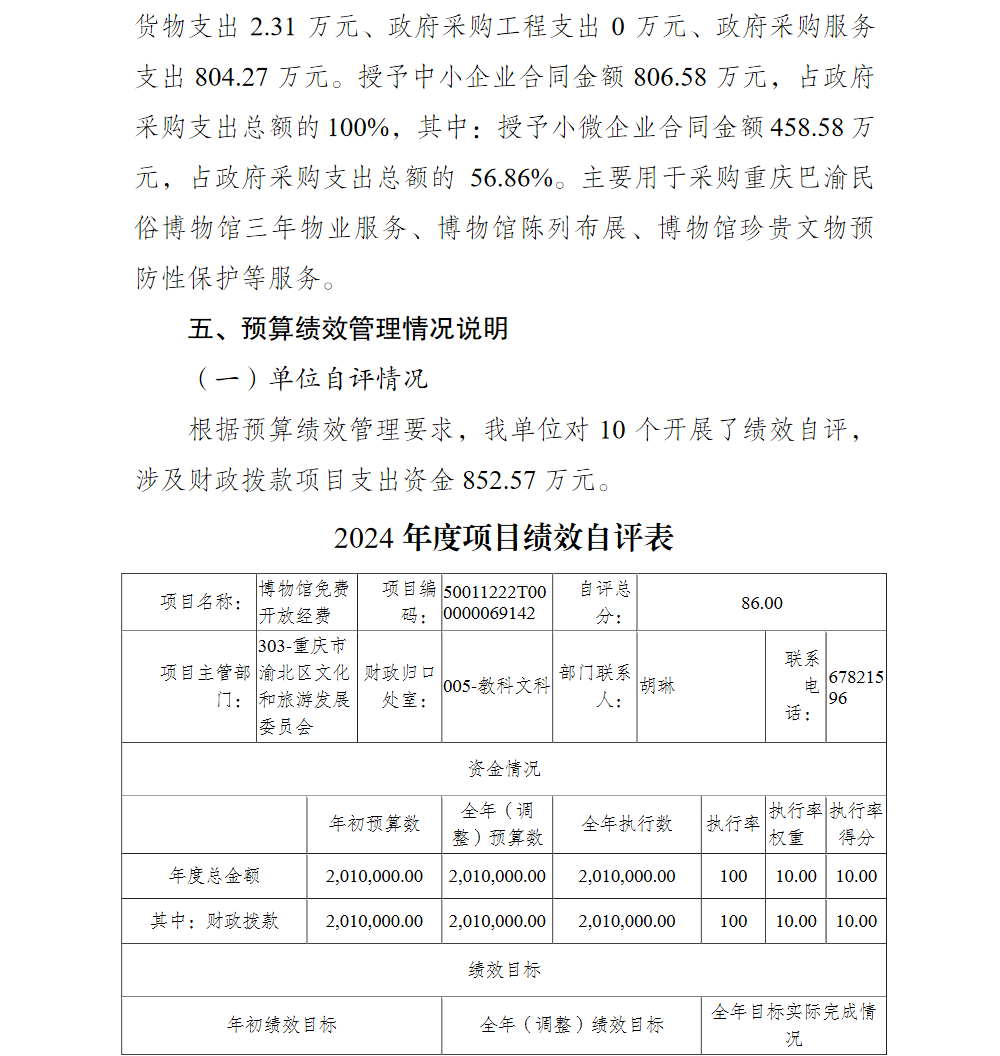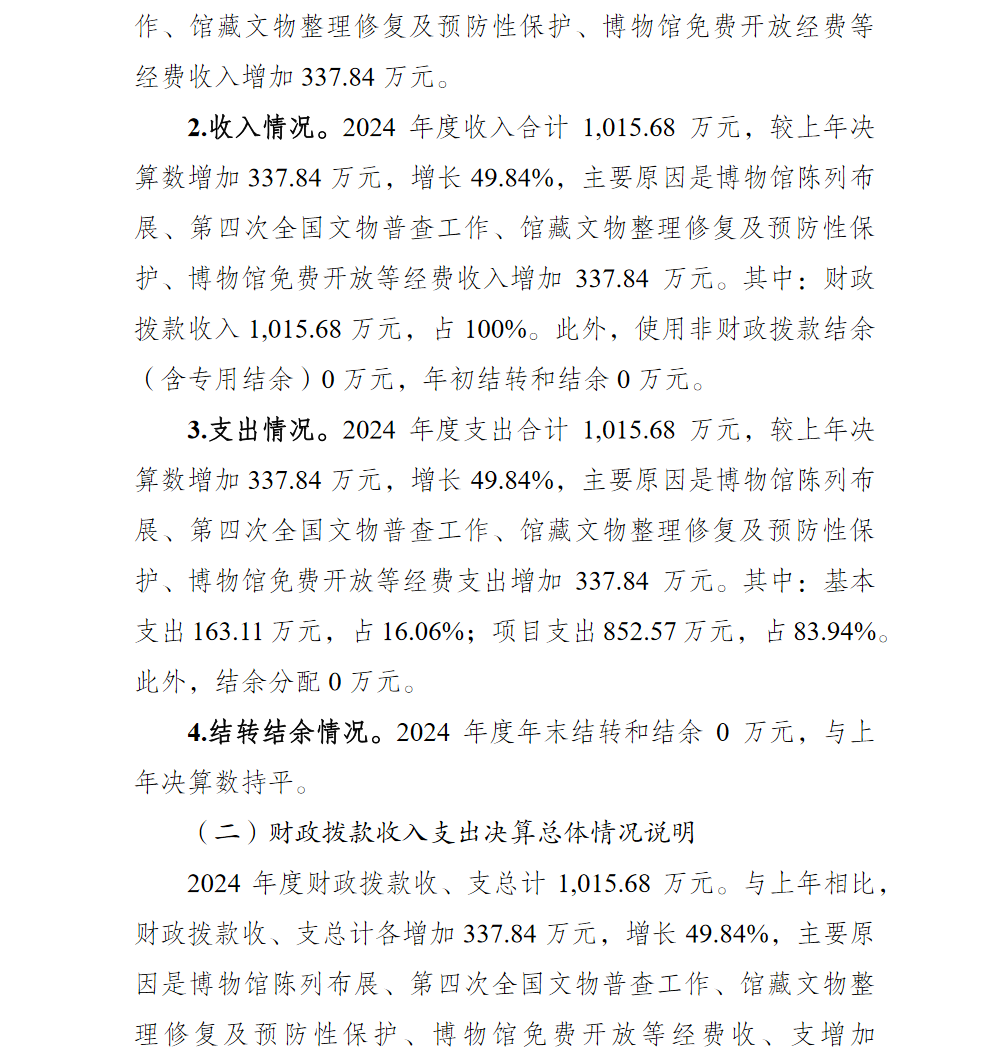 重庆市渝北区文化遗产保护中心2024年单位决算情况说明
