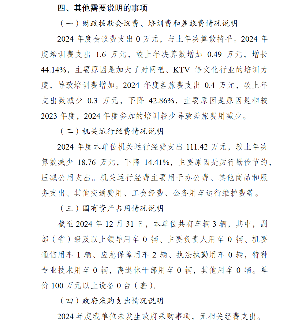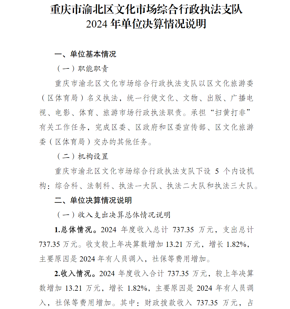 重庆市渝北区文化市场综合行政执法支队2024年单位决算情况说明