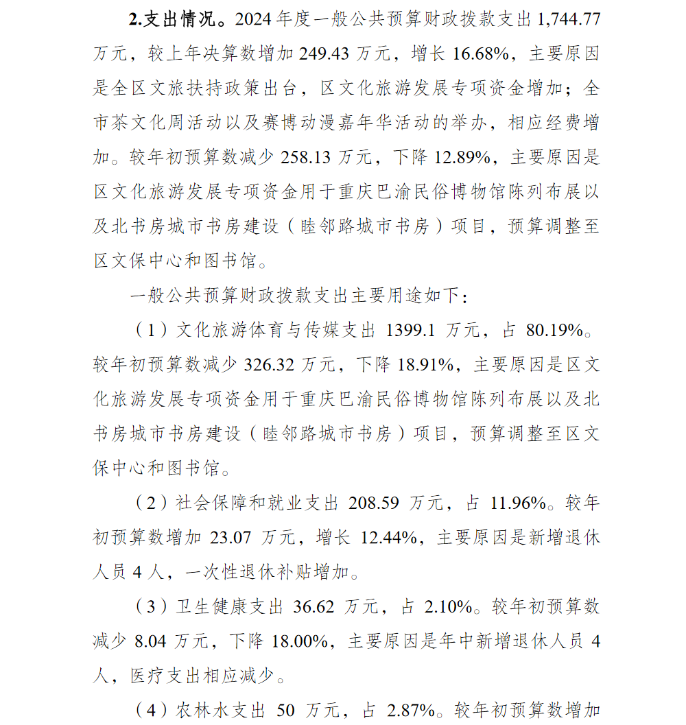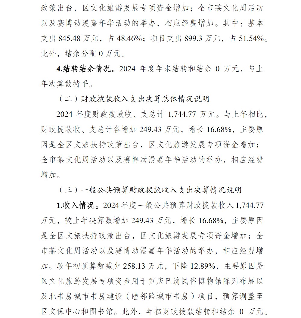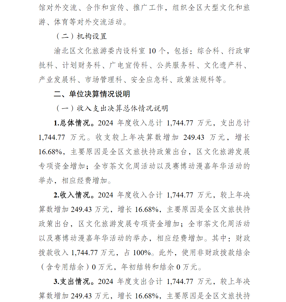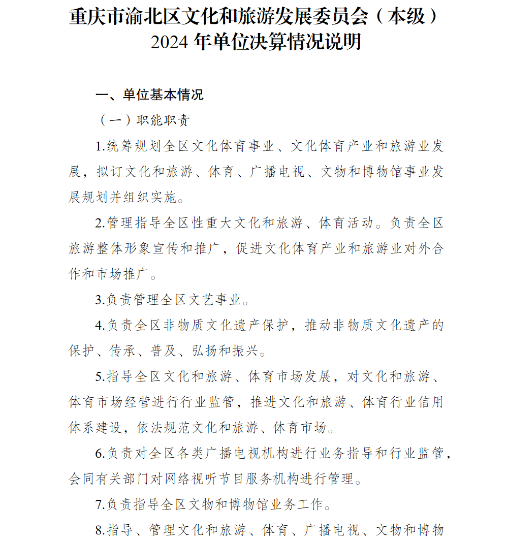 重庆市渝北区文化和旅游发展委员会(本级)2024年单位决算情况说明