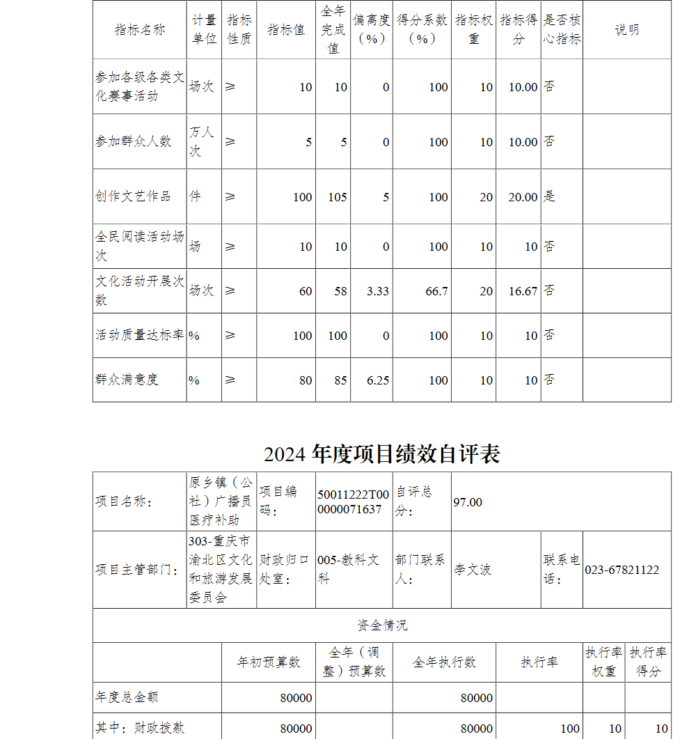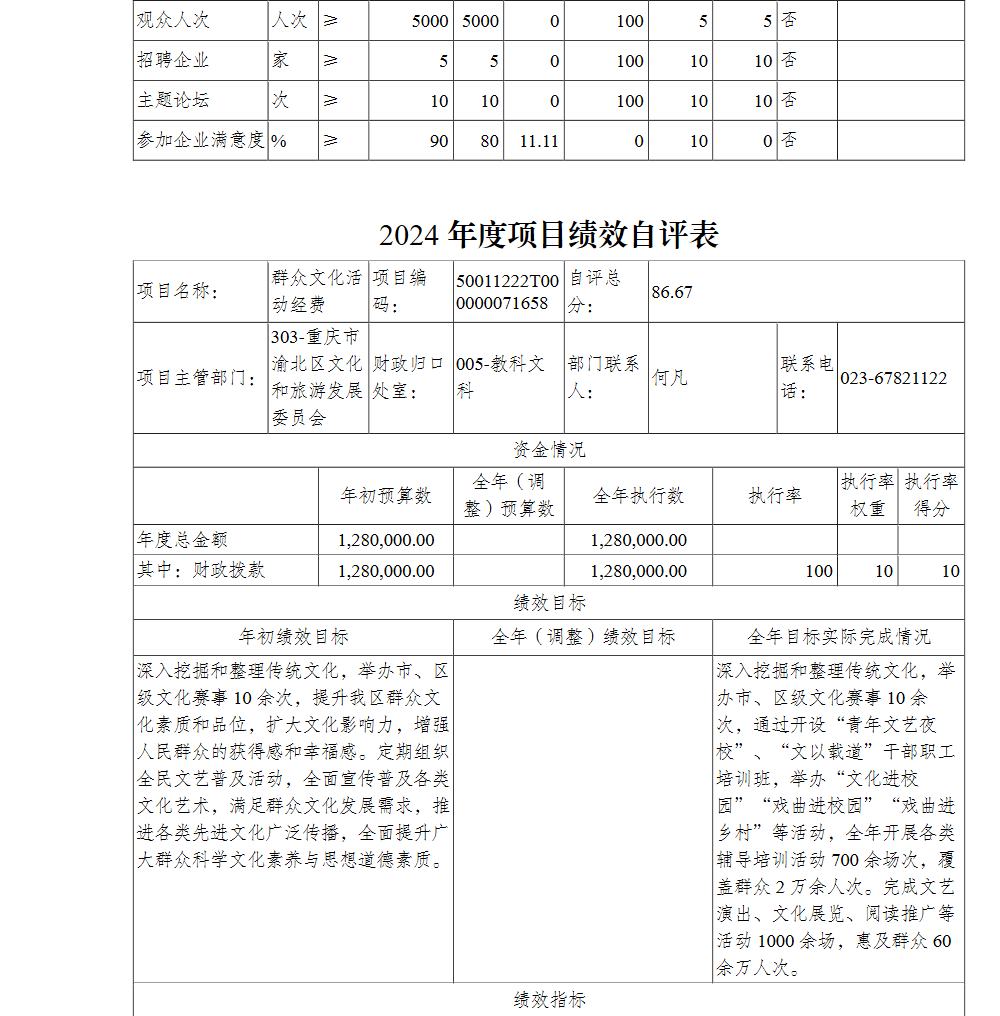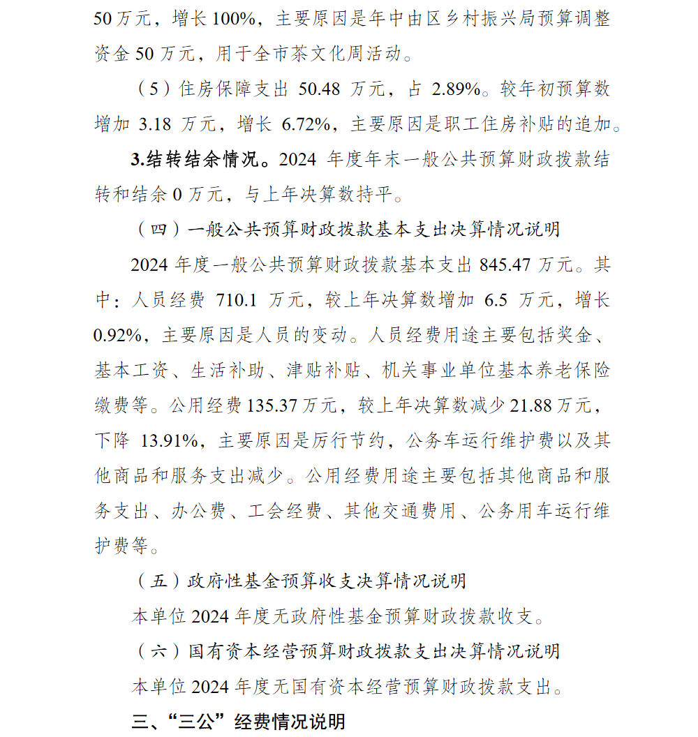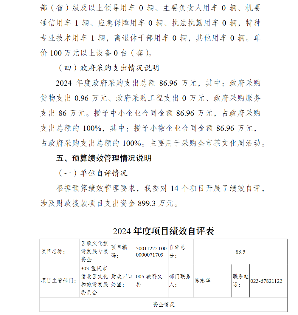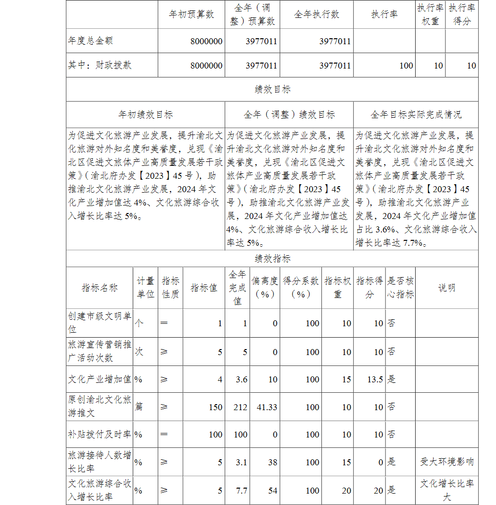 重庆市渝北区文化和旅游发展委员会(本级)2024年单位决算情况说明