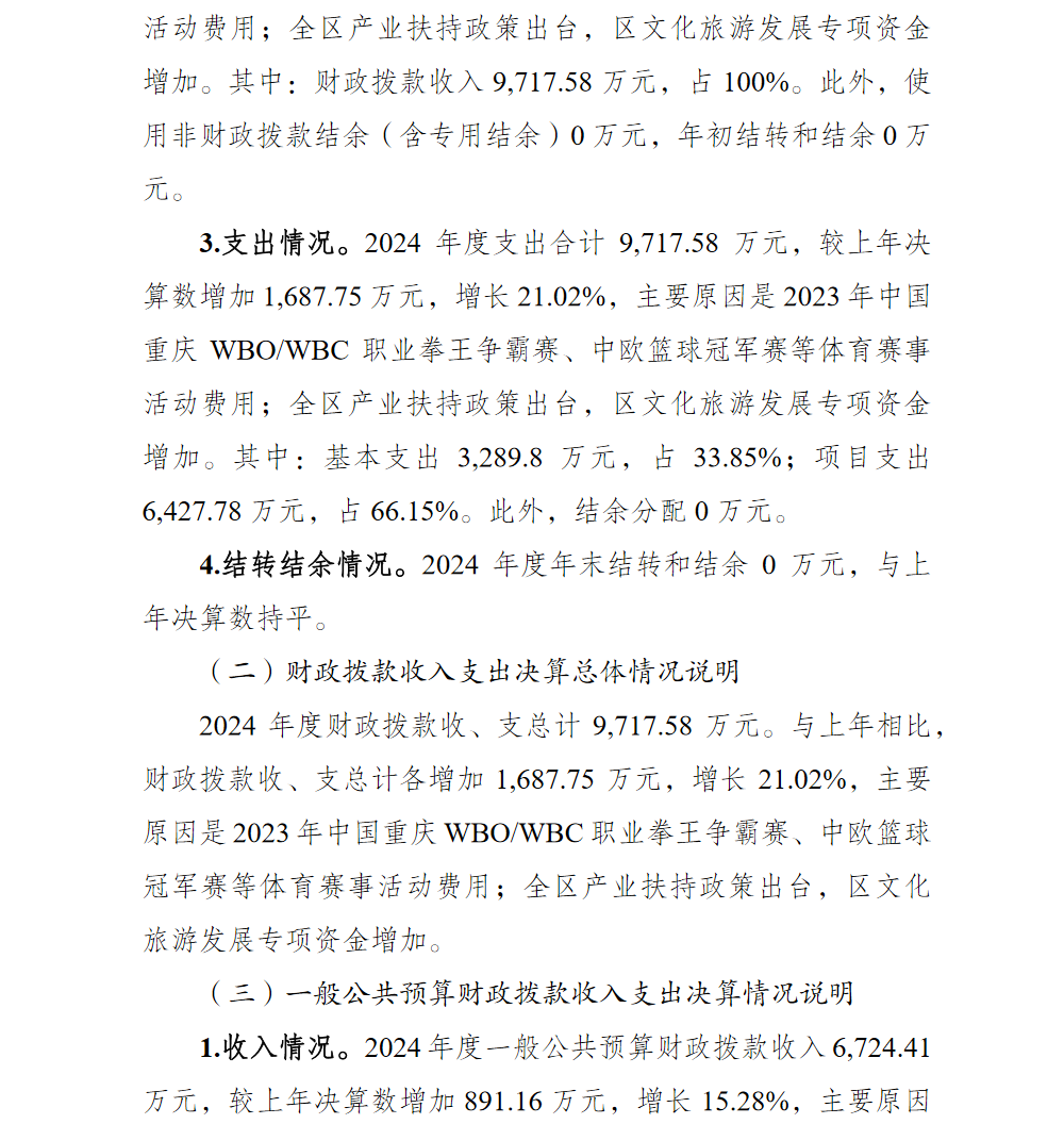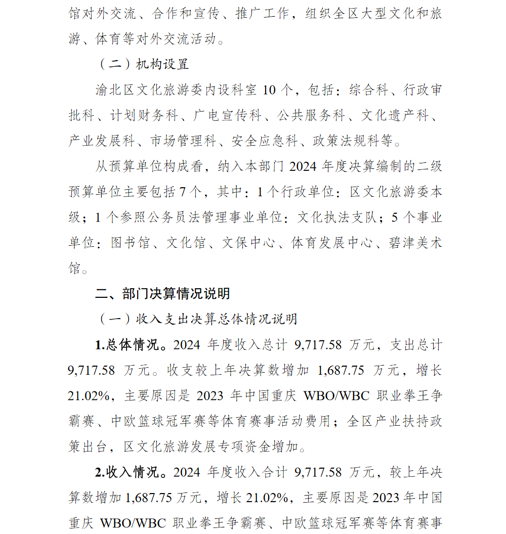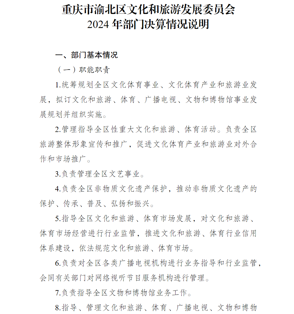 重庆市渝北区文化和旅游发展委员会2024年部门决算情况说明