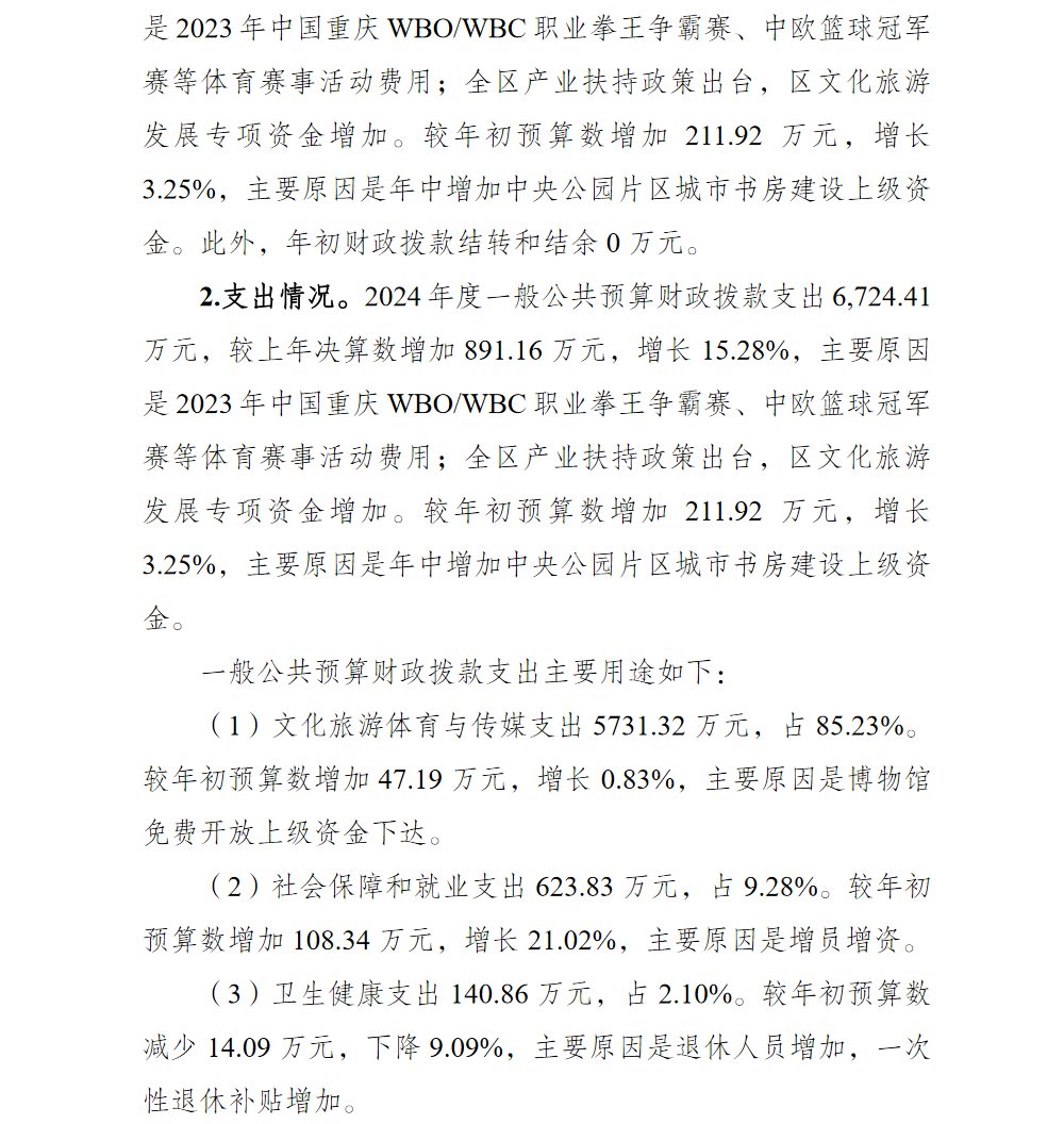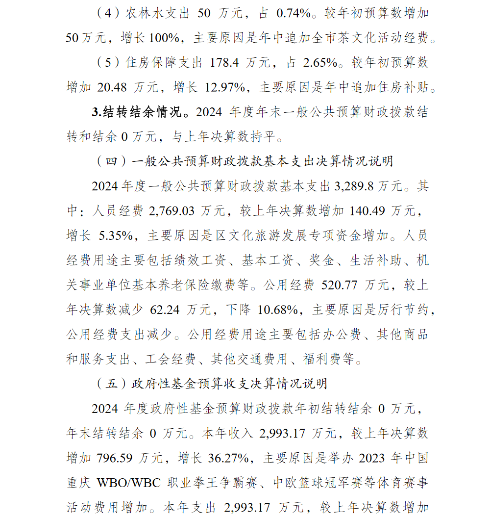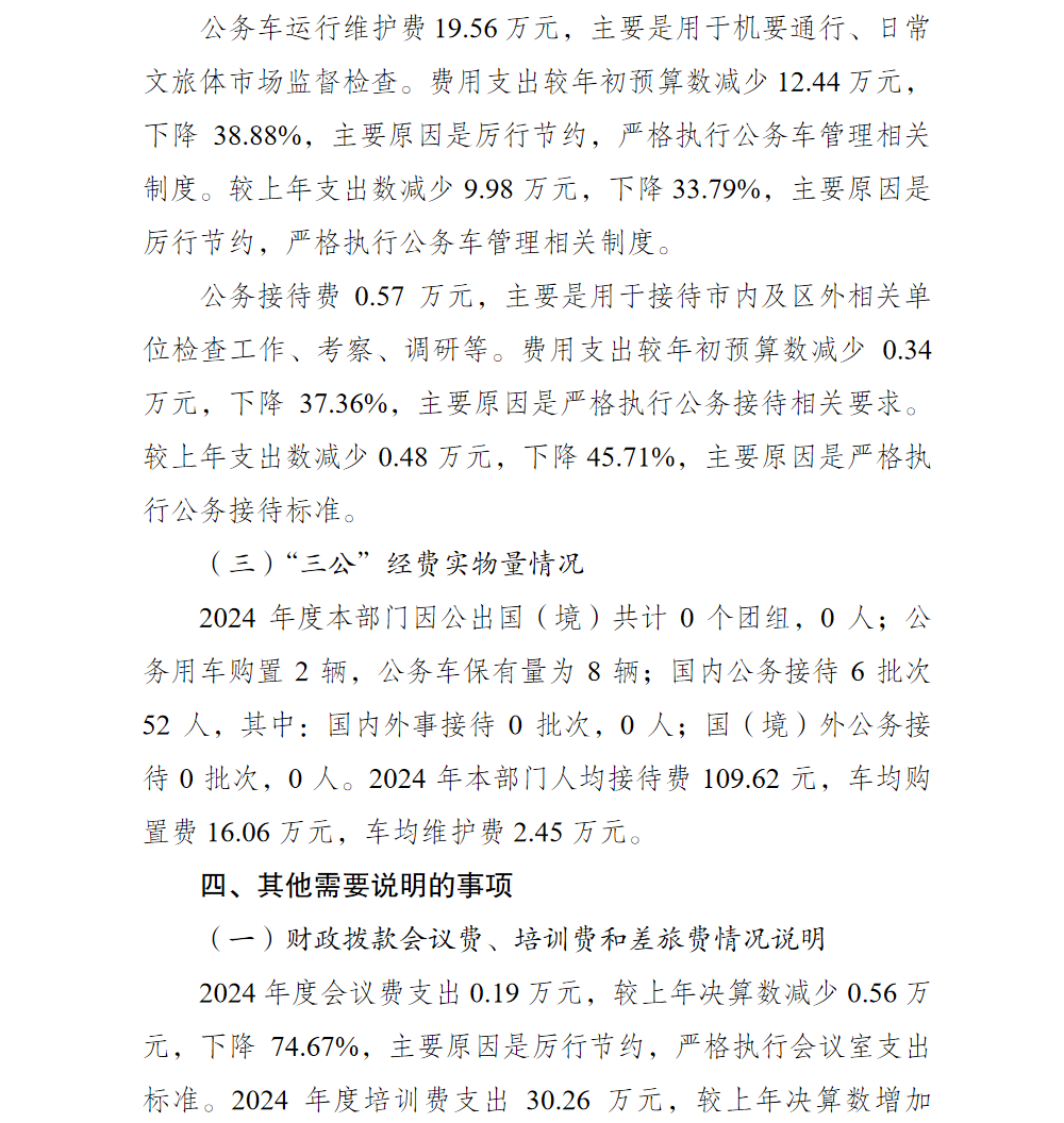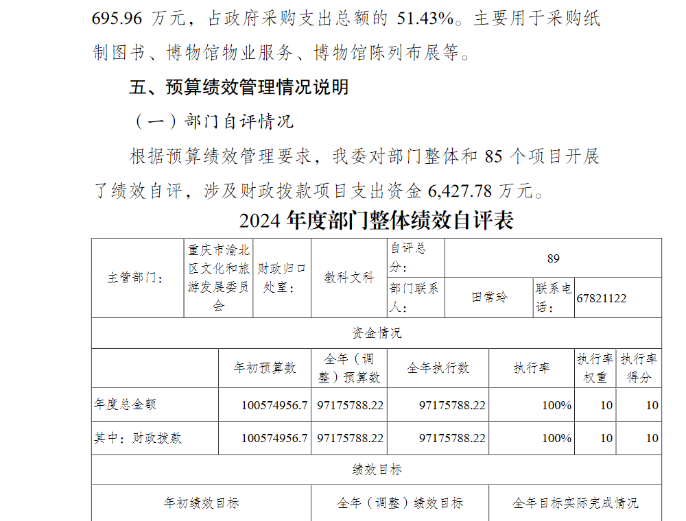 重庆市渝北区文化和旅游发展委员会2024年部门决算情况说明