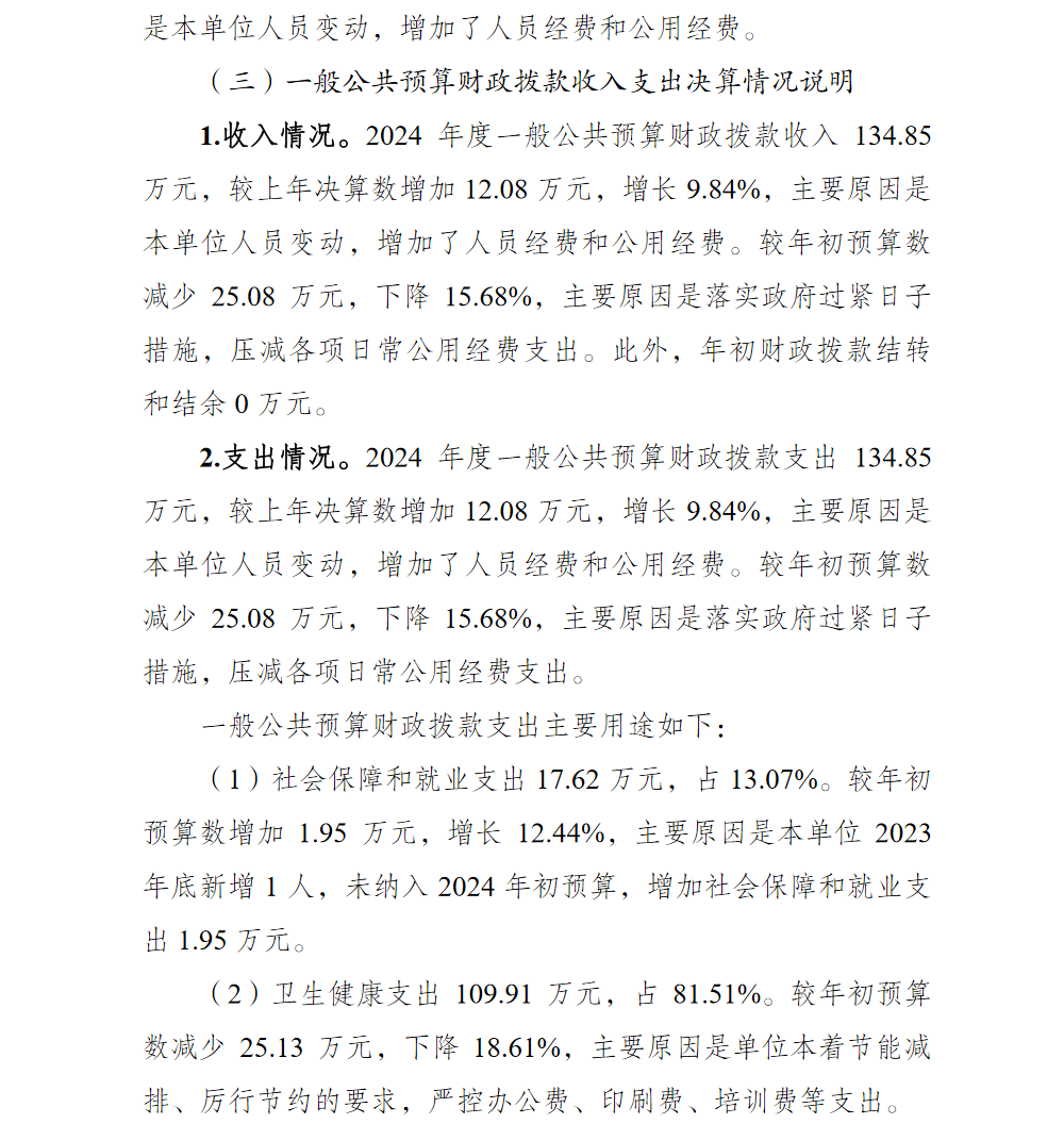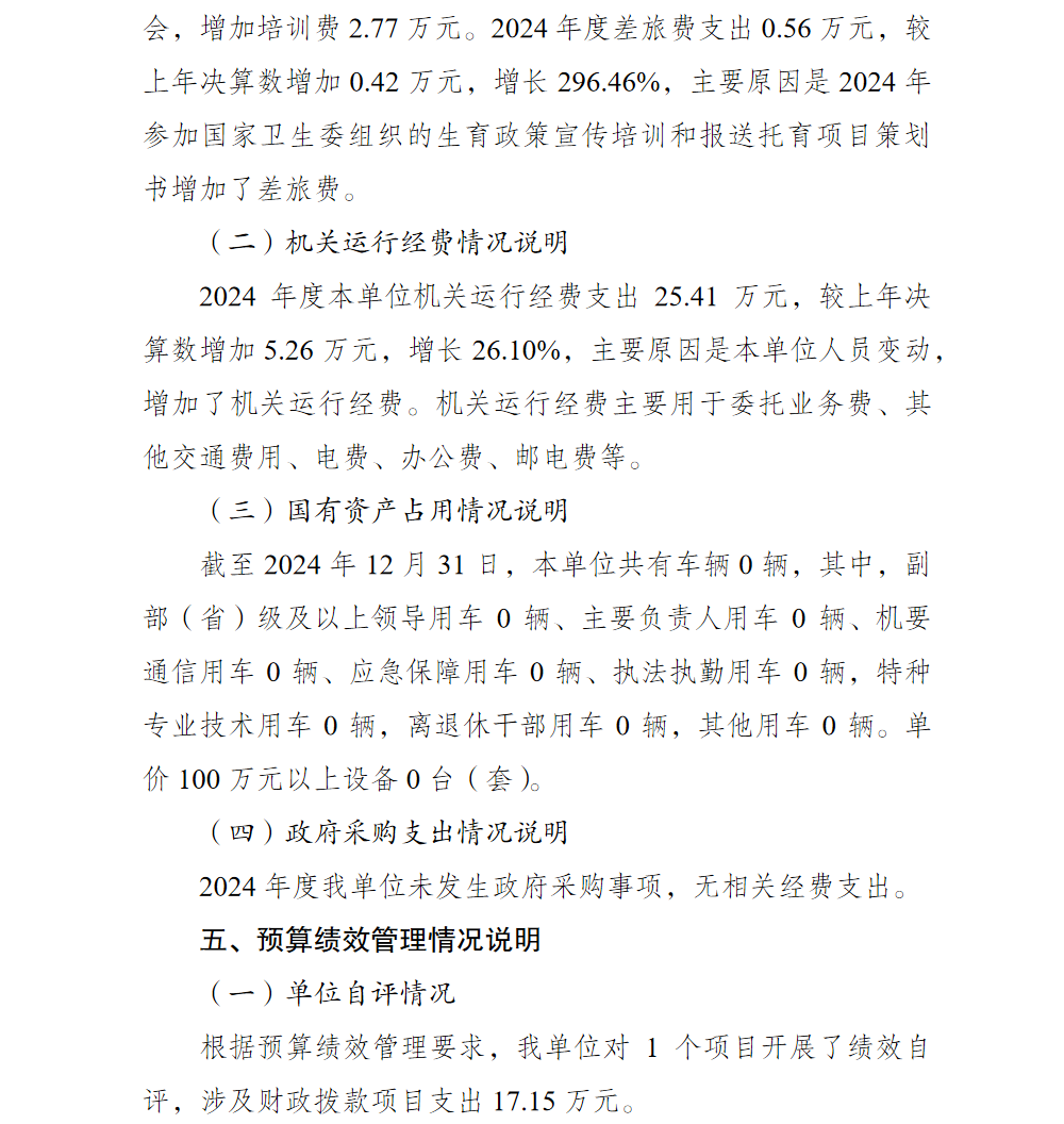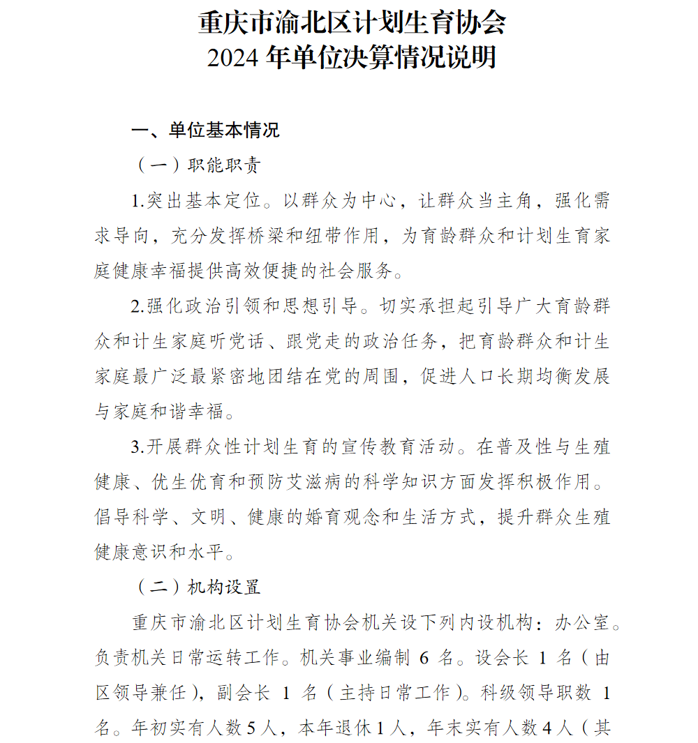 重庆市渝北区计划生育协会2024年单位决算情况说明