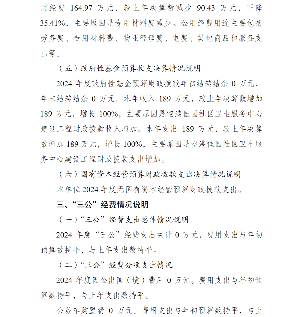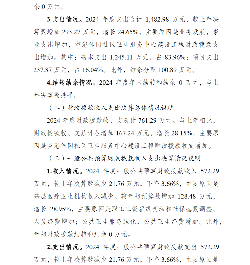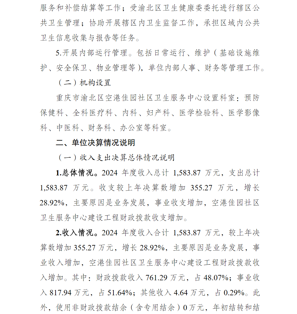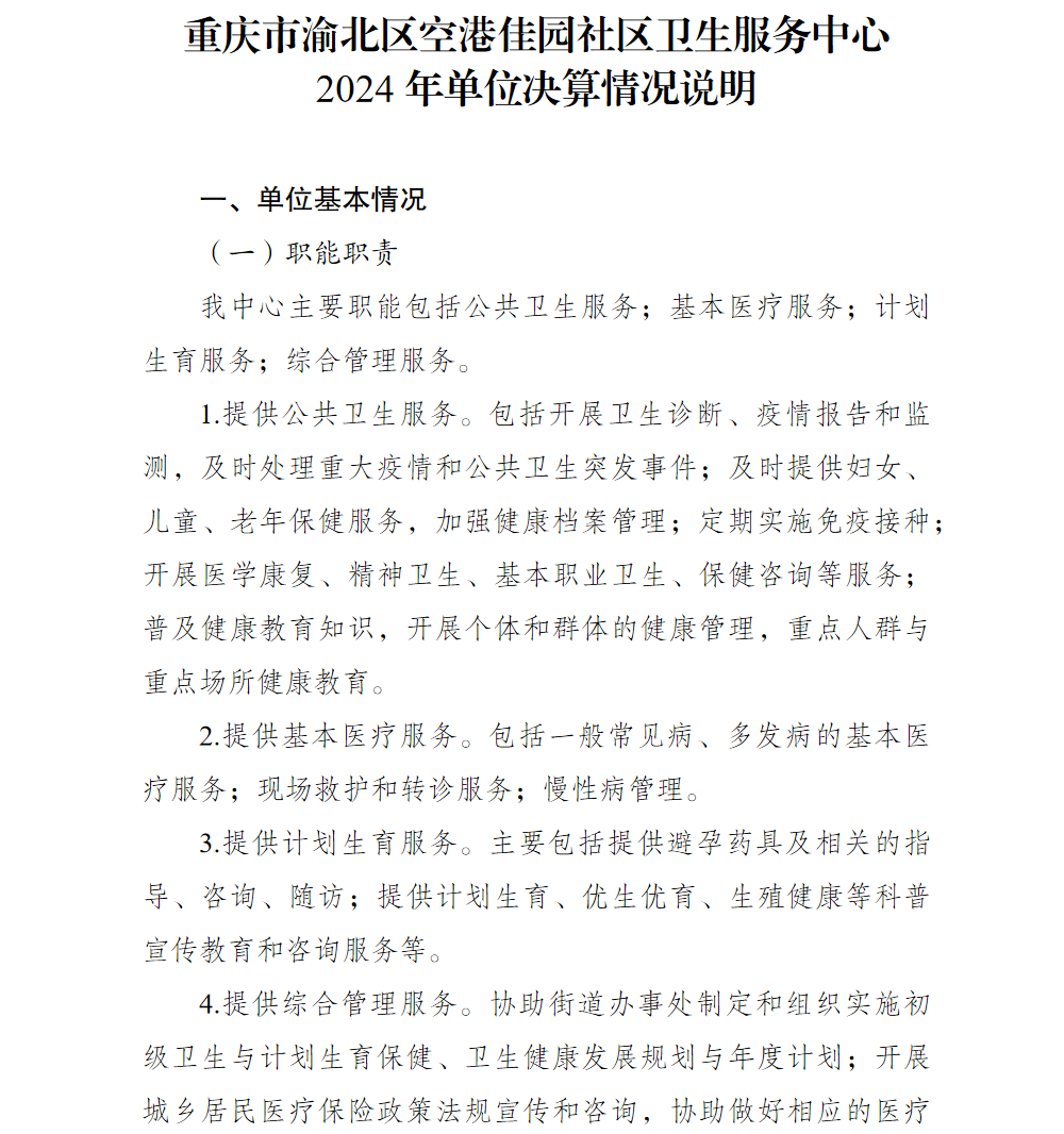 重庆市渝北区空港佳园社区卫生服务中心2024年单位决算情况说明