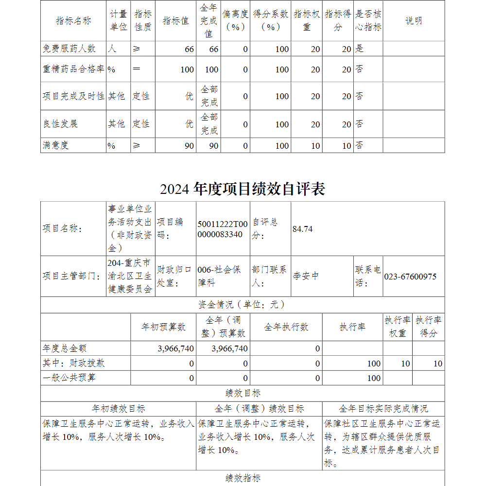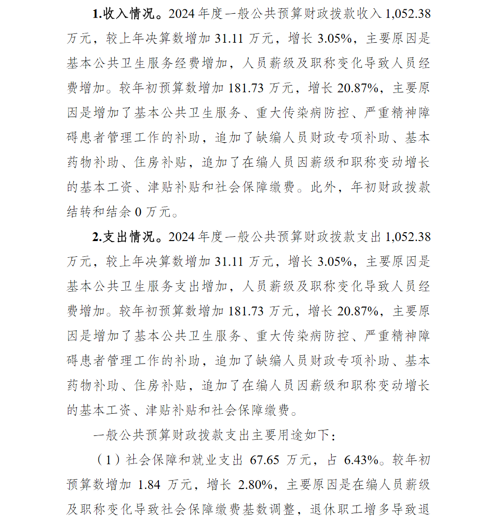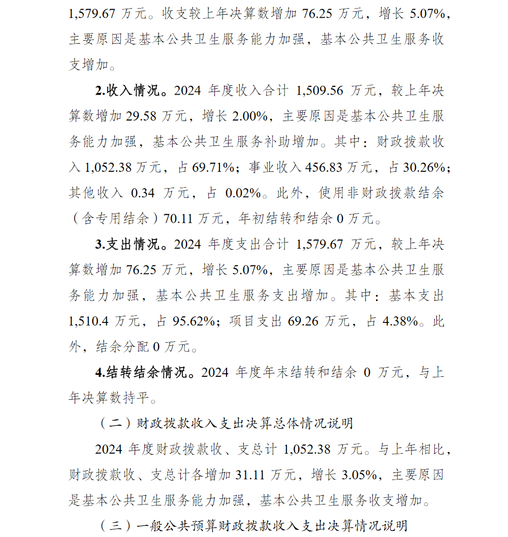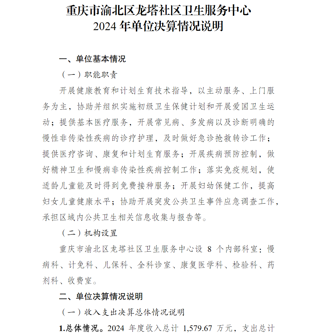 重庆市渝北区龙塔社区卫生服务中心2024年单位决算情况说明