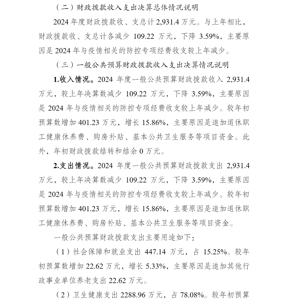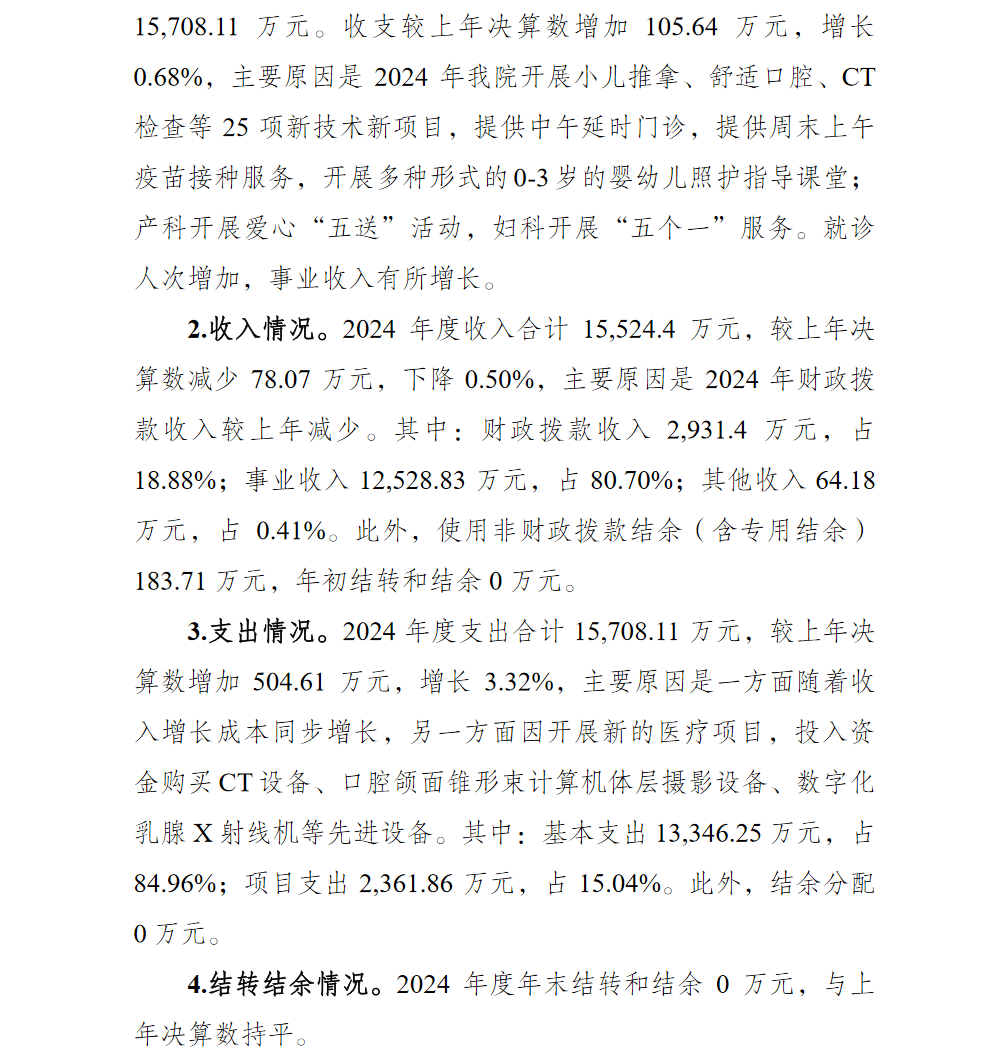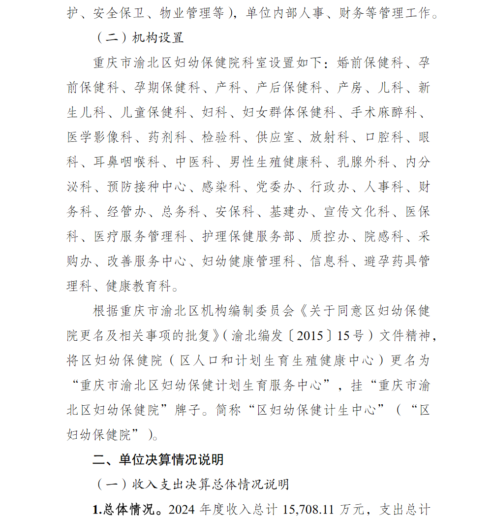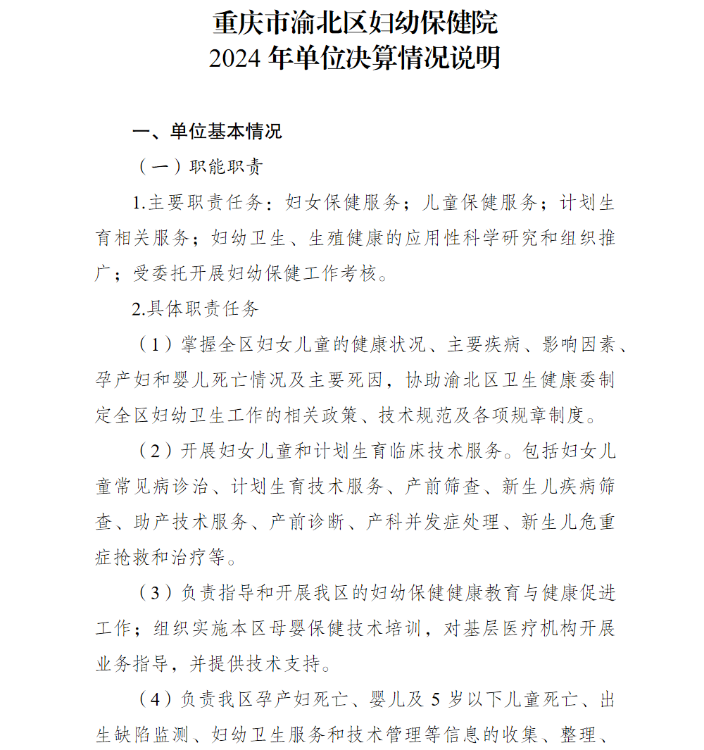 重庆市渝北区妇幼保健院2024年单位决算情况说明