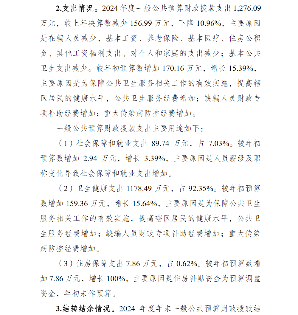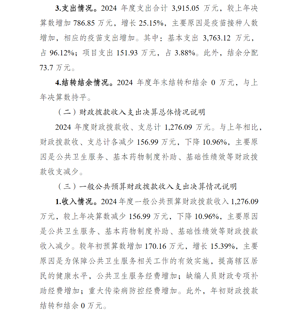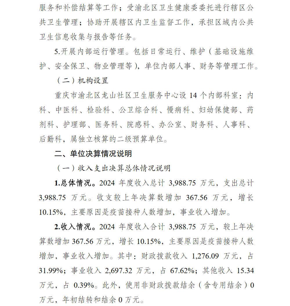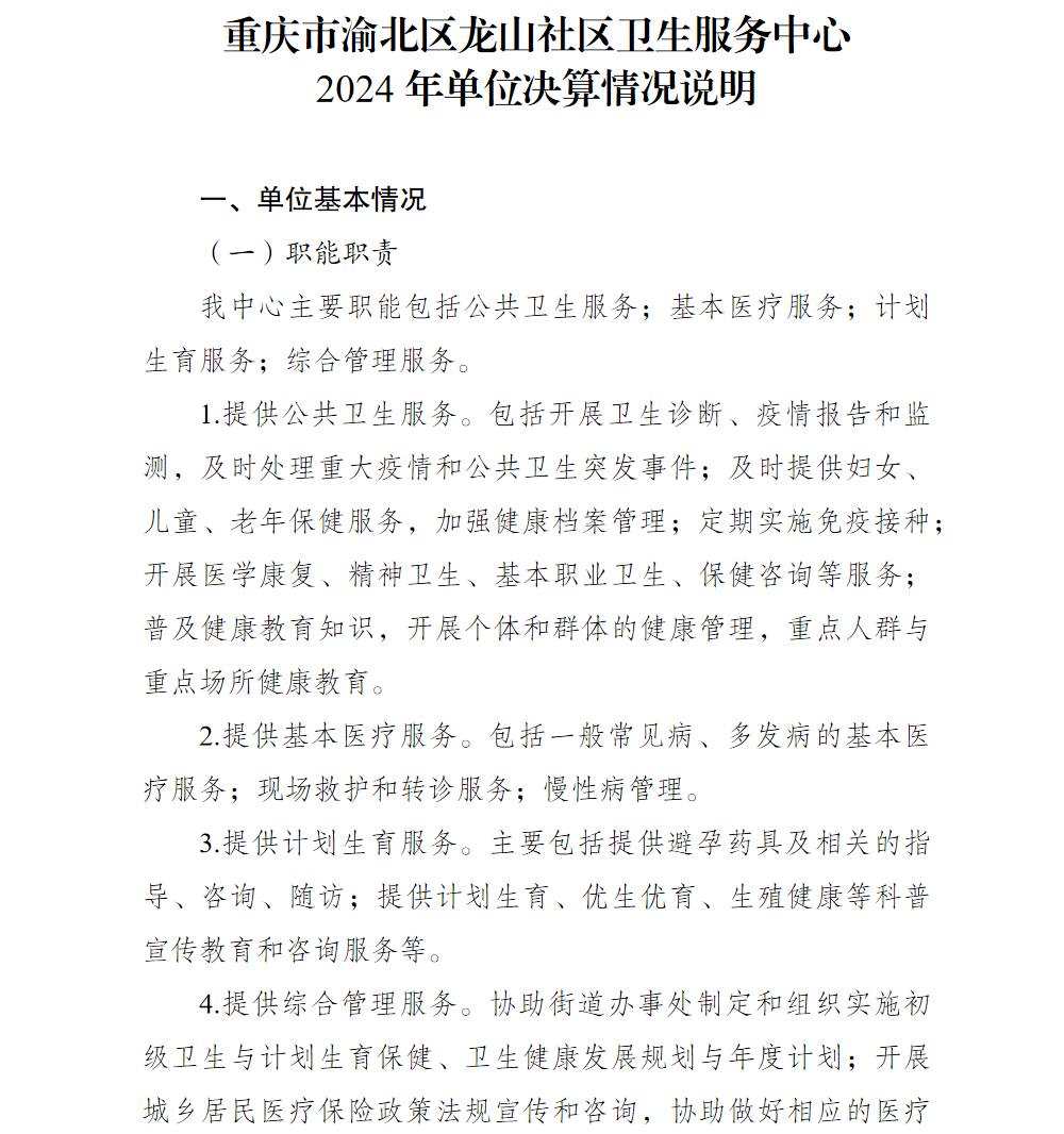 重庆市渝北区龙山社区卫生服务中心2024年单位决算情况说明